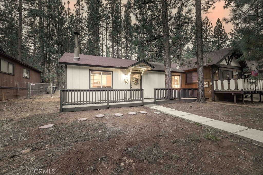 Located in one of Moonridge’s most sought-after areas, this charming Big Bear cabin offers the ideal mountain escape with true walkability and the forest as your backdrop. From here, it's just a short 5-minute walk to the National Forest, Moonridge Coffee, Dank Donuts, the Big Bear Alpine Zoo, and the golf course. In the winter months, stroll to the shuttle stops and ride up to the ski slopes. Dining, recreation, and year-round activities are all close by, giving this property an impressive walk and drive score and strong appeal for both rental use and personal enjoyment. Set on a level 5,000 sq ft lot with so much potential, this 2-bedroom, 1-bath single-story cabin offers efficient, comfortable space. Inside, the living room centers around a freestanding wood stove with a stone hearth, creating a warm mountain atmosphere. Natural light fills the space, and the open dining area connects easily to the kitchen for practical everyday living. The kitchen features a gas range, microwave, dishwasher, and refrigerator, custom tile backsplash, along with ample cabinetry and counter space. Both bedrooms are comfortably sized and privately positioned, and the full bath is clean and functional. Outside is where this property really shines. The fully usable, level and fenced backyard offers a spacious paver patio with seating area and fire pit, perfect for entertaining, relaxing after a day on the slopes, or enjoying summer evenings under the pines. Mature trees surround the property, creating a peaceful forest-like setting while still being in the heart of Moonridge. Whether you’re searching for a weekend escape, a full-time mountain home, or an investment in one of Big Bear Lake’s most desirable neighborhoods, this Moonridge cabin checks the boxes. Location, walkability, usability, and value all come together here.