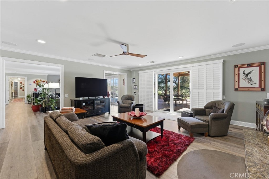 Embrace this Rare Opportunity! Imagine beginning every day in an extraordinary & beautifully appointed home ... when this stunning home sits along the 9th Fairway of the Redlands Country Club golf course, it is PRICELESS! This remodeled, single-story home is designed for sophisticated indoor-outdoor living. Stepping into the welcoming entry, your eyes will be drawn to the gracious living spaces, the alluring patio space, and the golf-course views beyond. The heart of the home is the handsome, remodeled chef’s kitchen that opens seamlessly to a spacious family room. The home's floor plan is designed for exceptional flow and easy entertaining. A magnificent patio pavilion provides ample summer shade and adds style to your lifestyle. Its built-in BBQ has both a grill and a smoker; sure to please your grill master! The sparkling pool and spa are seductive, and the stately oak trees are the anchor of this outdoor oasis! The remodeled primary suite showcases a large, customized bath, walk-in closet and serene private space. Three additional rooms provide versatile options for bedrooms or convenient office space. A large guest bath, a separate laundry room, and a guest powder room complete the floor plan. Other perks include: EV Charging capability, leased Solar System, Epoxied Garage Floor. Sought-after school district. Cottage Shutters throughout. Newer Windows and roof. Enjoy easy access to the RCC driving range! With just ~40 homes backing up to the golf course, this is a truly limited chance to secure a premier location in Redlands.