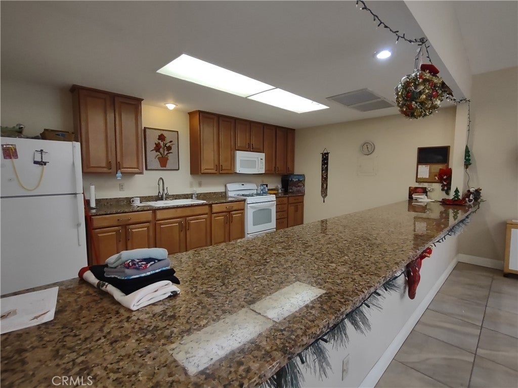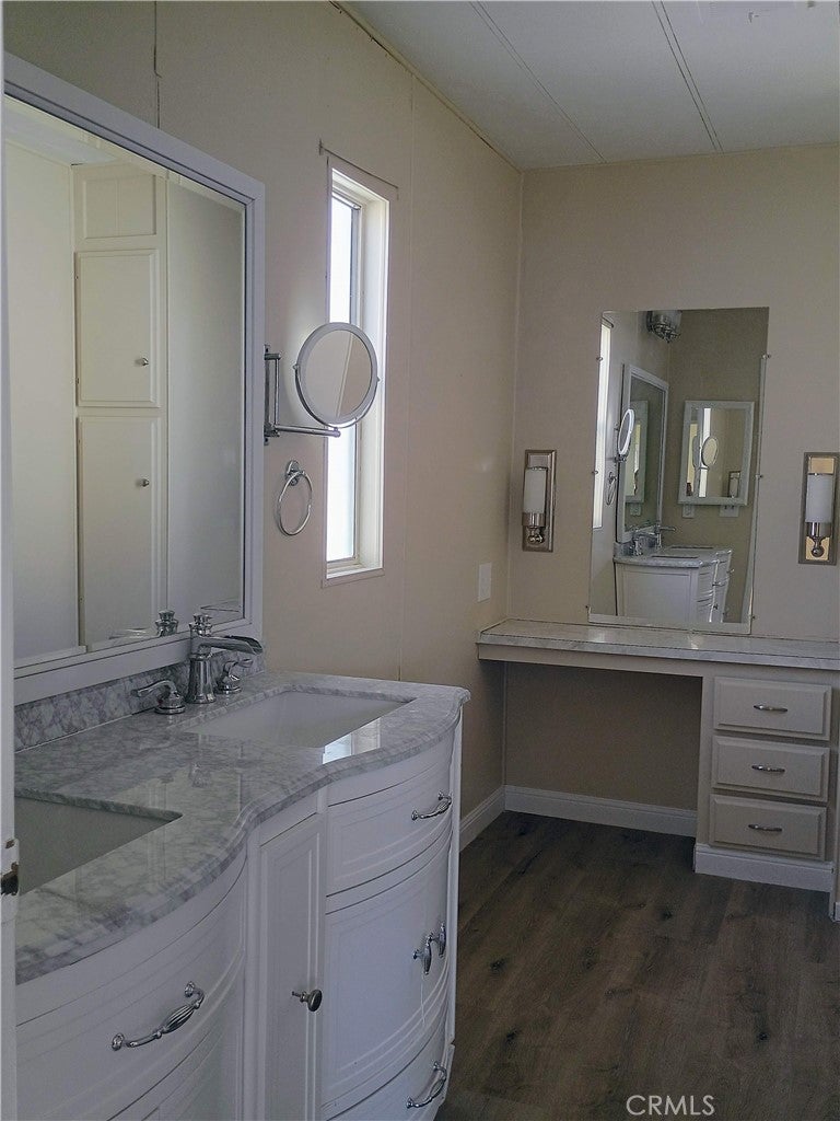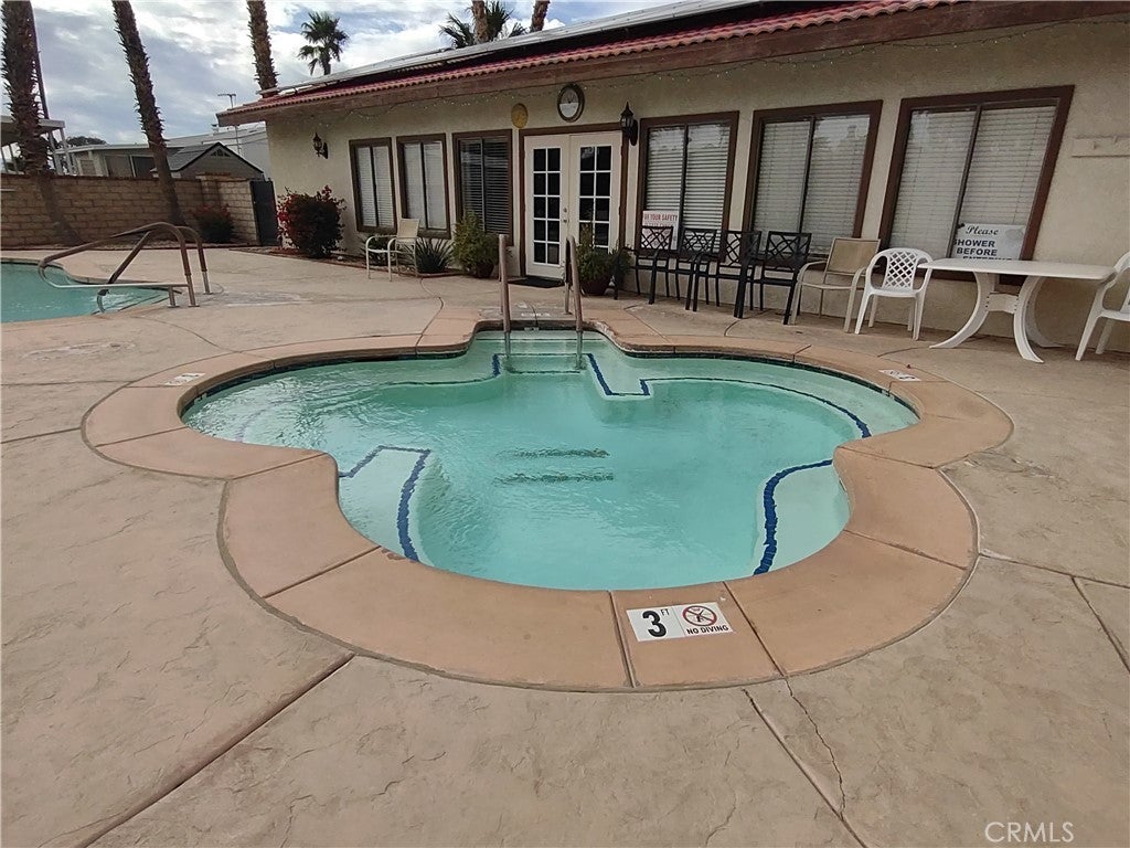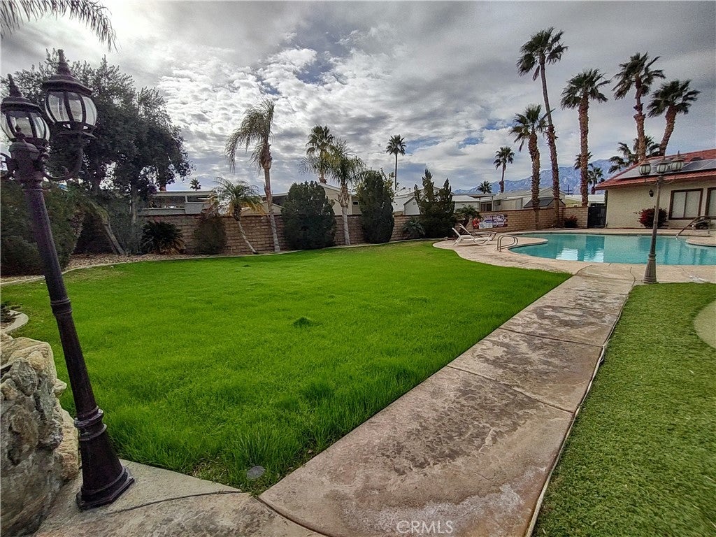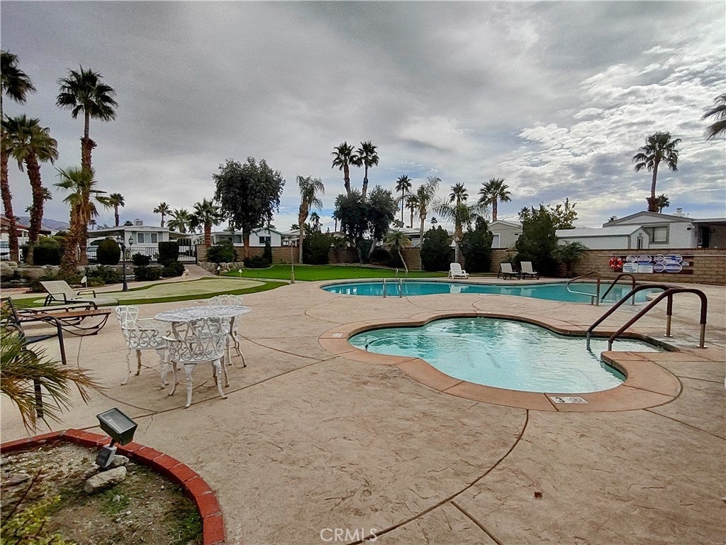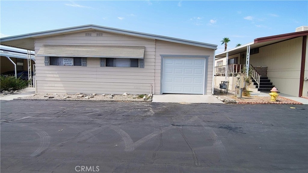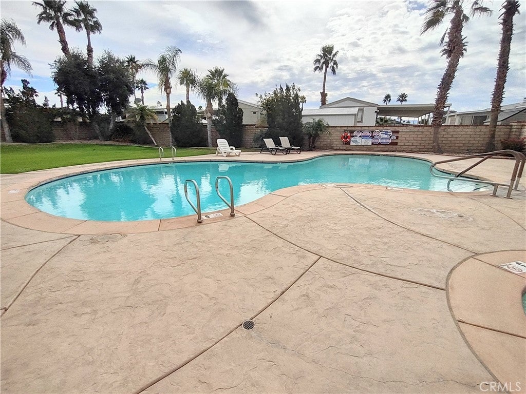 Bring me an offer! Beautiful updated home in a 55+ Mineral Water Pool & Spa Community w/ low space rent! Beautifully updated home in Corkill Palms Mobile Home Park! This move-in-ready property features a new central A/C, new flooring, fresh paint, and an updated kitchen with new countertops, lighting, cooktop, wall oven, and refrigerator. Spacious living room with dining area and built-in hutch, plus a bonus room with sliding doors to a covered porch. Both bathrooms have updated vanities and lighting and a walk-in tile shower in the primary bathroom suite. Large guest bedroom with 2 closets, and a roomy primary suite with mirrored closet doors and a Master cool. Separate laundry room with hookups and cabinets, plus a partially enclosed garage & shed. Enjoy low space rent and resort-style amenities, including a clubhouse, billiards room, library, and the famous hot mineral water pool and spa in Desert Hot Springs. Don’t miss out!