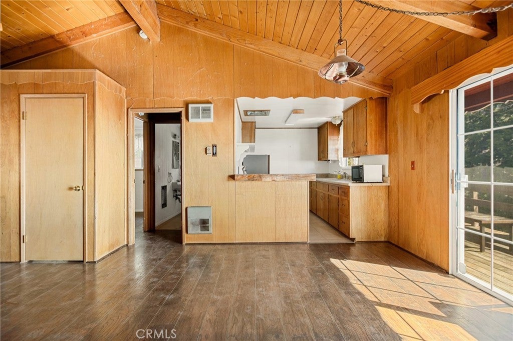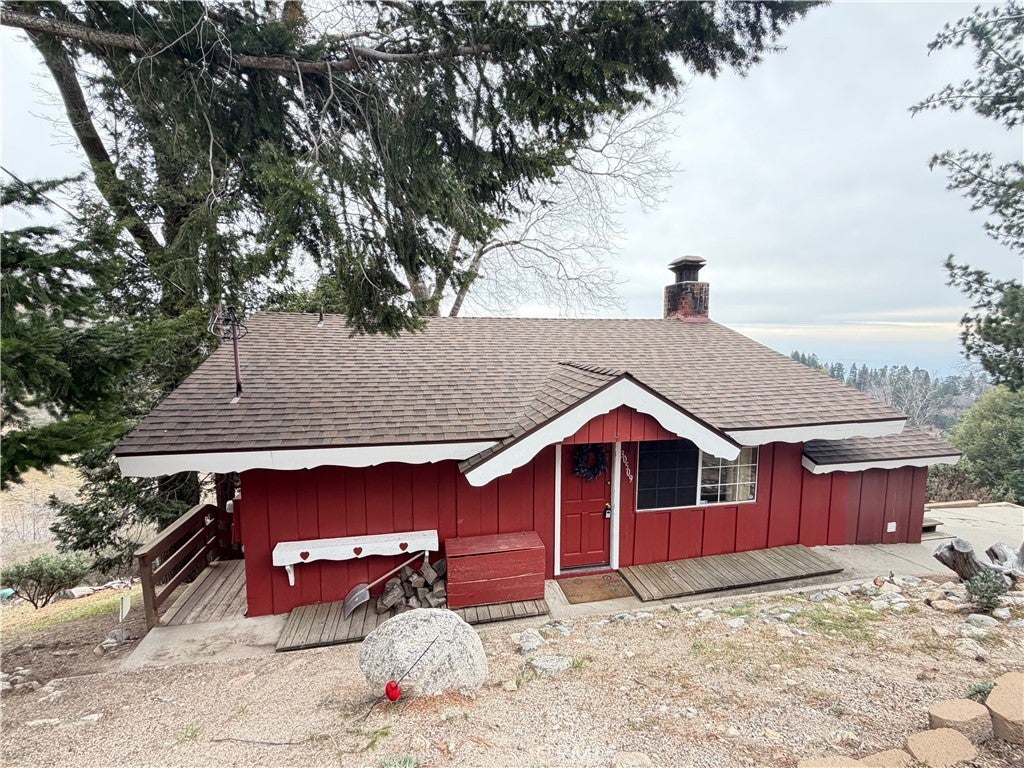 Mini Chalet with Spectacular Views! This charming single-story one-bedroom, one-bath cabin offers breathtaking city light and canyon views from nearly every angle. The living room features vaulted knotty pine ceilings and a cozy wood-burning fireplace, creating a warm mountain-chalet feel. The kitchen is perfectly positioned to take in the views, while the living room opens to a spacious back deck—ideal for relaxing and enjoying the scenery day or night. Additional highlights include a laundry room with extra storage, level entry, and a driveway with convenient off-street parking. Set on just under half an acre, this charming cabin sits high on the mountain, surrounded by nature and a sense of quiet retreat.Located just minutes from local ski resorts and hiking trails, this affordable mini chalet is perfect for full-time living or a weekend getaway surrounded by nature.