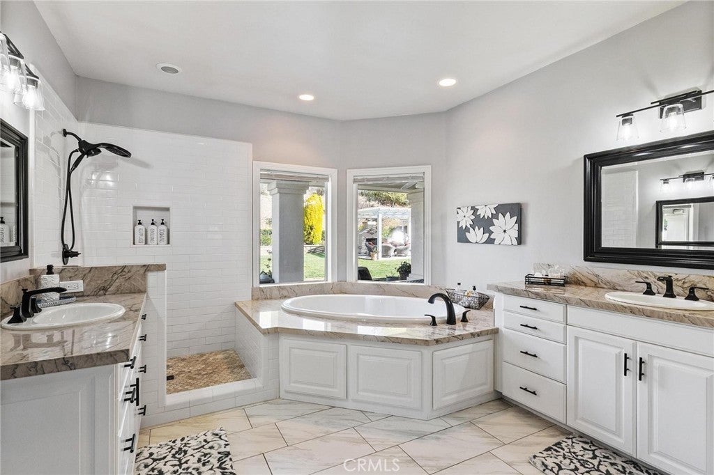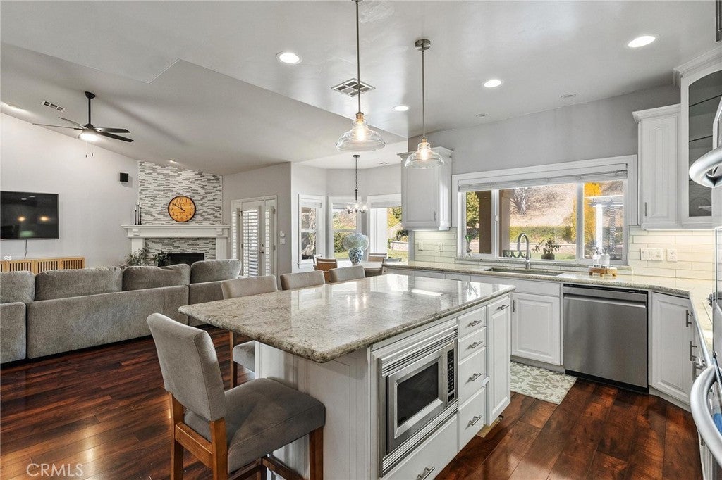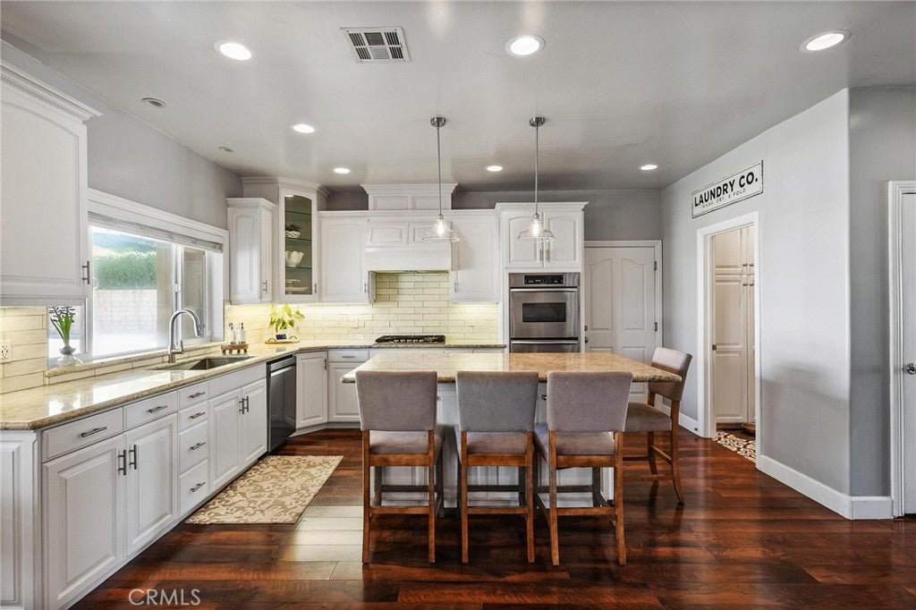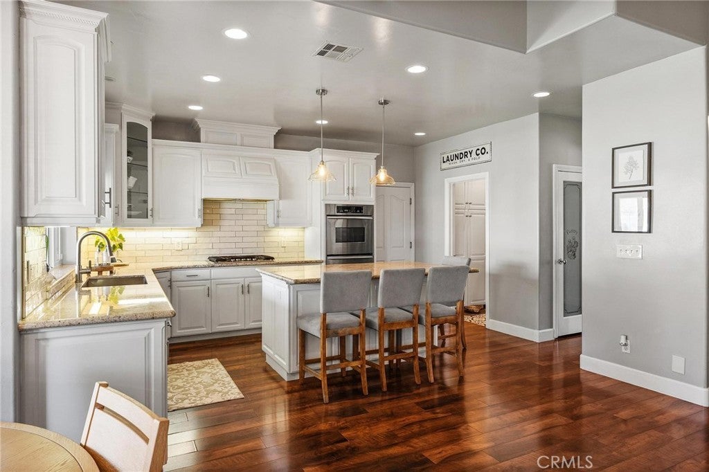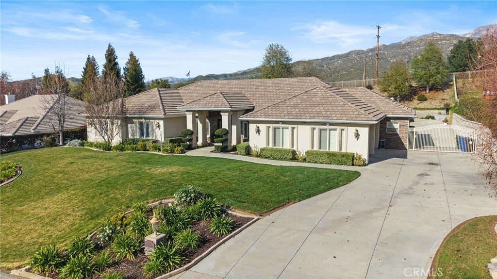 Nestled in the highly desirable Hidden Meadows neighborhood of Yucaipa, this stunning custom single-story residence offers space, quality, and thoughtful design throughout. Situated on over half an acre, the property features 4 bedrooms, 2 full bathrooms and 2 half bathrooms (One half bath located in the garage), and approximately 2,819 square feet of living space. The spacious floor plan includes a formal living room, formal dining room, and an expansive family room ideal for both everyday living and entertaining. The large kitchen is appointed with a center island, stainless steel appliances, custom white cabinetry, recessed lighting, and a picture window looking out to the backyard. The primary suite offers a private retreat complete with a fireplace and seating area. The upgraded primary bathroom features dual vanities, a soaking tub, and a large walk-in shower with windows providing natural light and backyard views. Interior finishes include custom tile work, laminate wood flooring, large baseboards, and window shutters. Outdoor amenities include a full-length covered patio across the rear of the home, a detached patio area with fireplace, an additional detached gazebo, mature landscaping, block walls, and wrought-iron fencing. Car enthusiasts and hobbyists will appreciate the oversized garage offering approximately 1,440 square feet of space, providing exceptional parking, workshop potential, and storage capacity. Plus the RV parking behind the wrought iron gate! A rare opportunity to own a spacious custom home on a large lot in one of Yucaipa’s most sought-after communities. Don't wait, this one isn't expected to last long!
