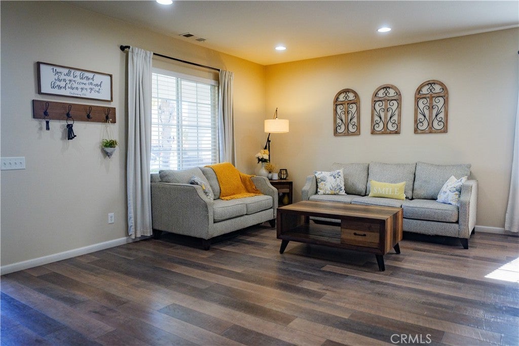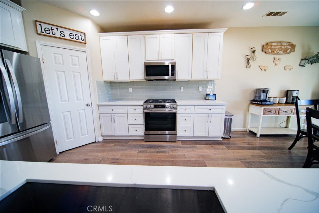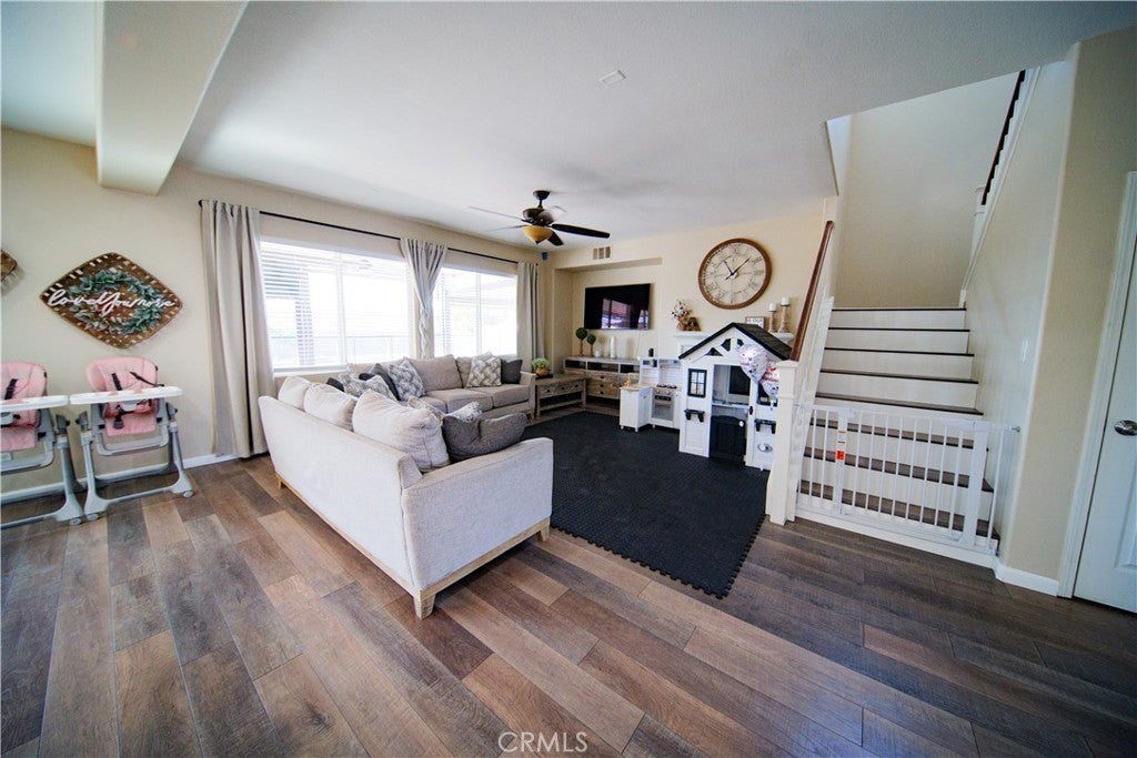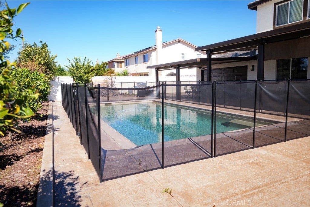 Beautiful Upgraded POOL Home in a Highly Desirable San Jacinto Neighborhood This spacious and well-maintained home, built in 2006, offers 6 bedrooms, 3 full bathrooms, and an inviting open floor plan perfect for modern living. The upgraded kitchen features white shaker cabinets, quartz countertops, under-cabinet lighting, laminate flooring, and recessed lights—designed for both style and functionality. The light-filled family room includes a cozy fireplace and large windows that bring in abundant natural light. The primary suite offers dual sinks, a separate tub and shower, and an oversized walk-in closet. Additional upgrades throughout the home add to its comfort and appeal. Fresh front landscaping enhances the curb appeal, and the massive 4-car pull-through tandem garage provides exceptional parking and storage options. This home truly has it all—space, upgrades, and a fantastic location. Solar Panels are leased, buyer to assume lease.