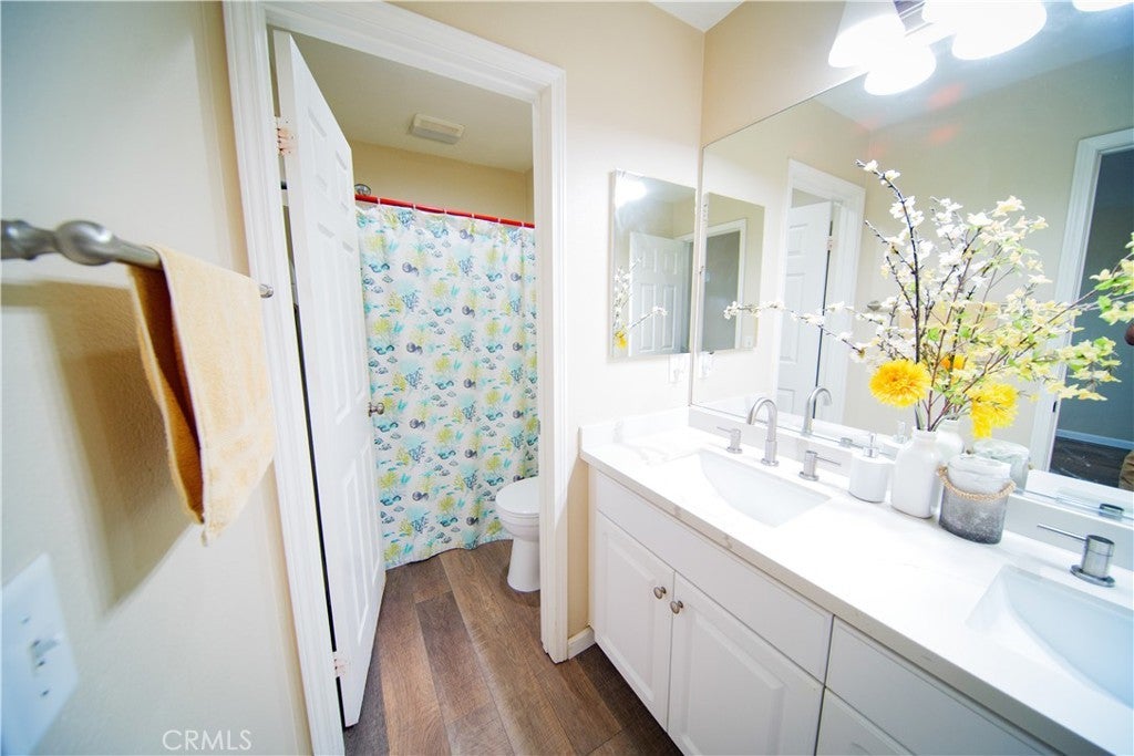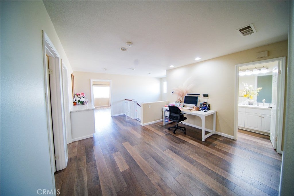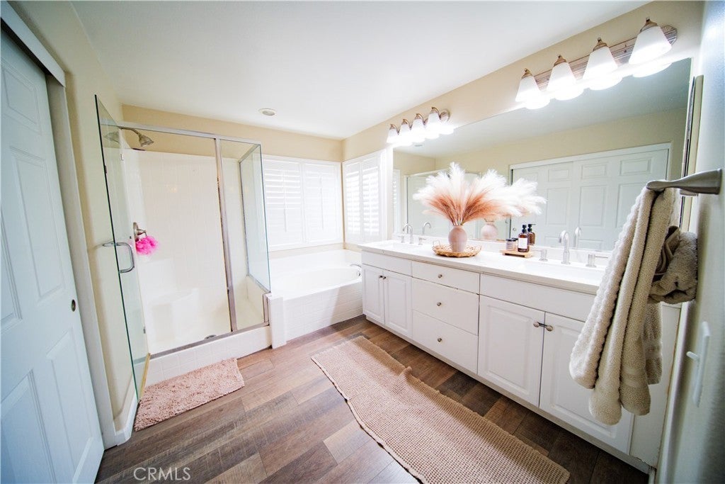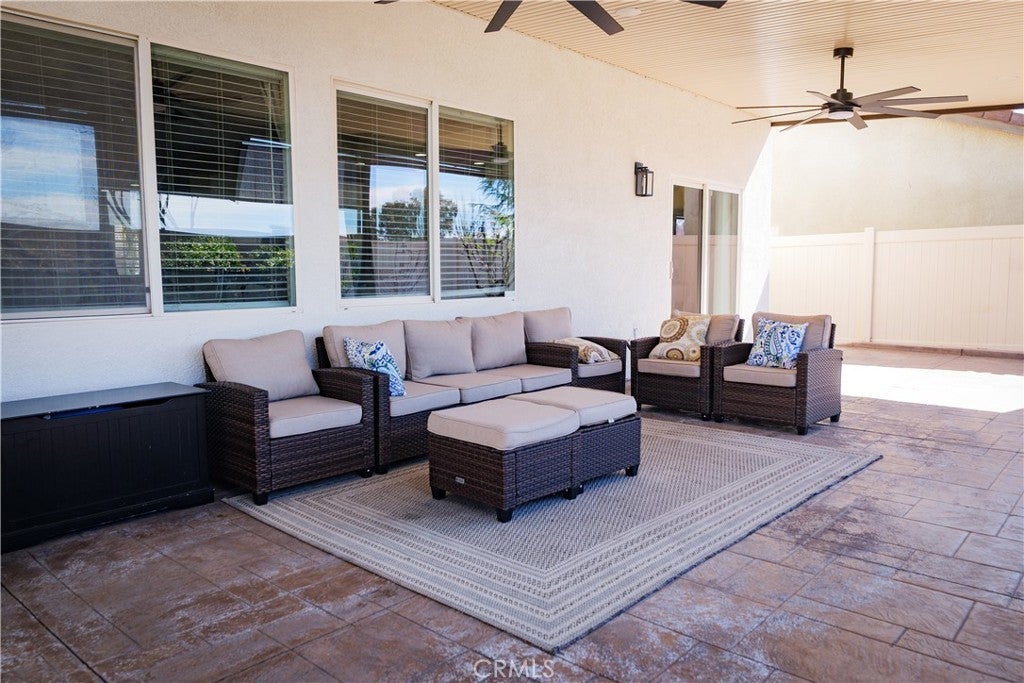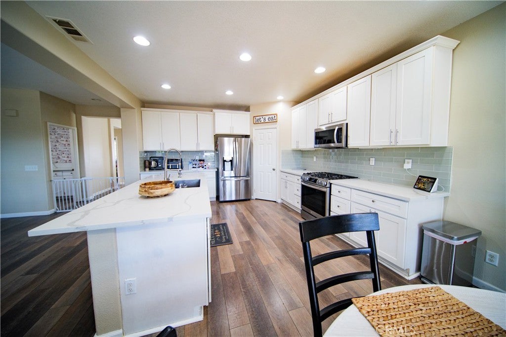 Beautiful Upgraded POOL Home in a Highly Desirable San Jacinto Neighborhood This spacious and well-maintained home, built in 2006, offers 6 bedrooms, 3 full bathrooms, and an inviting open floor plan perfect for modern living. The upgraded kitchen features white shaker cabinets, quartz countertops, under-cabinet lighting, laminate flooring, and recessed lights—designed for both style and functionality. The light-filled family room includes a cozy fireplace and large windows that bring in abundant natural light. The primary suite offers dual sinks, a separate tub and shower, and an oversized walk-in closet. Additional upgrades throughout the home add to its comfort and appeal. Fresh front landscaping enhances the curb appeal, and the massive 4-car pull-through tandem garage provides exceptional parking and storage options. This home truly has it all—space, upgrades, and a fantastic location. Solar Panels are leased, buyer to assume lease.