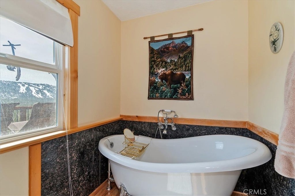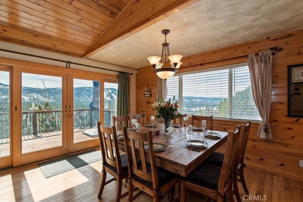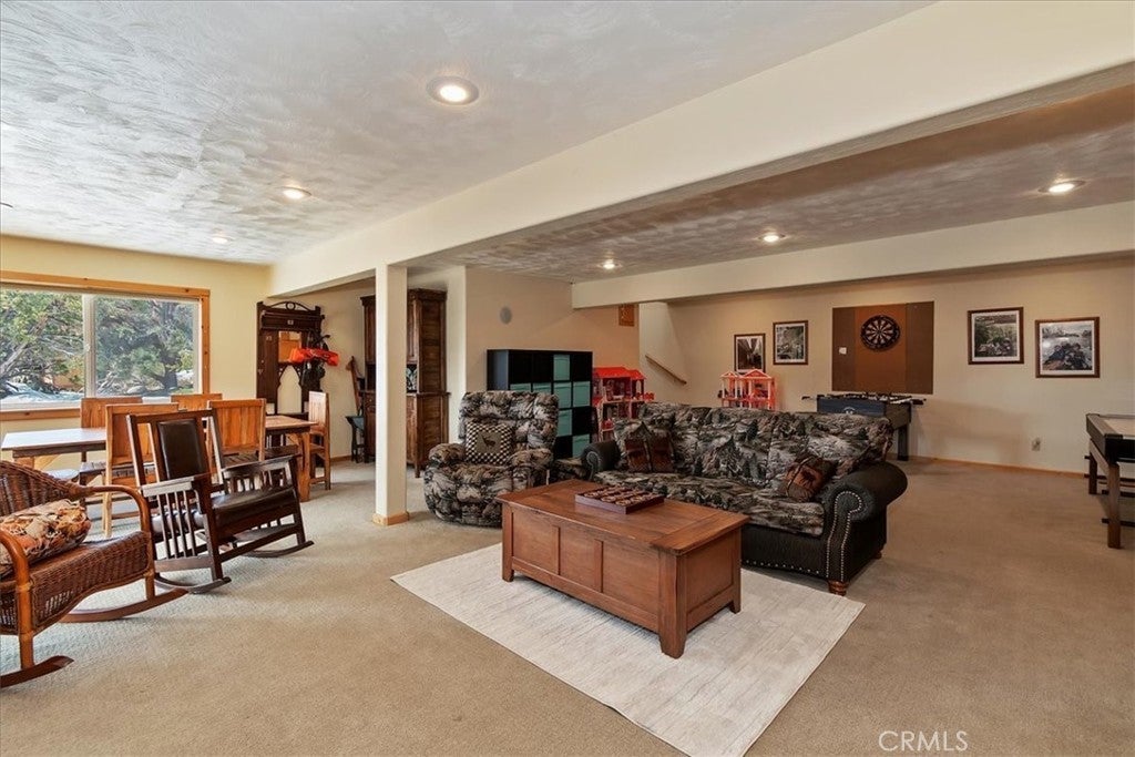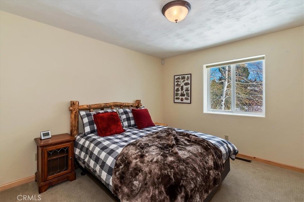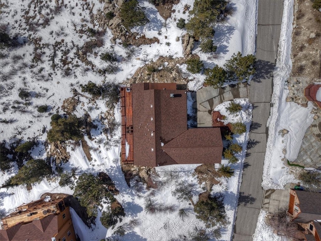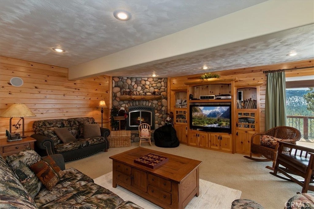 Perched at the top of prestigious Castle Glen on Pegasus Way, this luxury retreat captures breathtaking ski slope views of both Bear Mountain and Snow Summit. Designed with a reverse floor plan to maximize the scenery, the home features vaulted tongue-and-groove ceilings and expansive upper and lower decks overlooking unbuildable forest with a peek of the lake. Offering 5 bedrooms plus an additional office and 4 full bathrooms, the layout is ideal for hosting and privacy alike. The main level includes 3 bedrooms and 2 baths, while the lower level offers 2 bedrooms, an office, and 2 baths. Two spacious primary suites feature walk-in closets and direct deck access. Each level is complete with its own living room, fireplace, and laundry room. Dual forced-air heaters and dual water heaters provide comfort and efficiency year-round. The kitchen is appointed with granite countertops and stainless-steel appliances. Turn-key and thoughtfully designed, this mountain estate also includes a way oversized two-car garage—perfect for vehicles, toys, and gear.