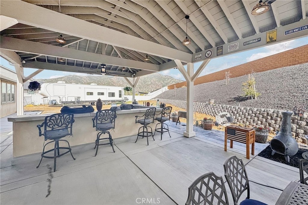 Welcome to 34676 Conadria Avenue, Yucaipa, CA 92399, located in the exclusive gated community of Mountain Gate by CrestWood Communities. Recently built in 2022 and truly better than new, this stunning single-story home offers 4 bedrooms, 3.5 bathrooms, and 2,814 square feet of beautifully upgraded living space, situated on a premium 32,119 square foot, end of a cul-de-sac lot with exceptional privacy and gorgeous mountain views! The interior is spacious with an open concept layout designed for modern living and effortless entertaining. Luxury vinyl plank flooring flows throughout the main living areas, complementing the light and bright interior. The huge great room includes a stacked stone accent wall and a built-in entertainment center. The gourmet kitchen features quartz countertops, a large island with breakfast bar seating and pendant lighting, stainless steel LG Signature appliances, white cabinetry, and a large walk-in pantry. The oversized primary suite is a private retreat, featuring generous space, a spa-inspired bathroom, and ample closet storage. There are 3 secondary bedrooms that are each thoughtfully positioned, offering comfort, privacy, and flexibility for guests, or multigenerational living! Enjoy the entertainer’s dream back with custom 40' x 20' covered patio creating an incredible outdoor living space, complete with a built-in outdoor bar - perfect for year round gatherings. The expansive lot offers endless possibilities, enhanced by a retaining wall, gated RV parking, the gutters in the back of the house and the patio cover are tied into the drains that lead to the street, and the gutters in the front of the house drain to ground cover. There is also an attached 3-car garage, and a leased solar panel system for energy efficiency! This home is in turn-key condition with modern finishes throughout. Enjoy secure gated living while being just minutes from shopping, dining, and freeway access. This is a rare opportunity to own a nearly new, highly upgraded home on an oversized private lot in one of Yucaipa’s most desirable communities!