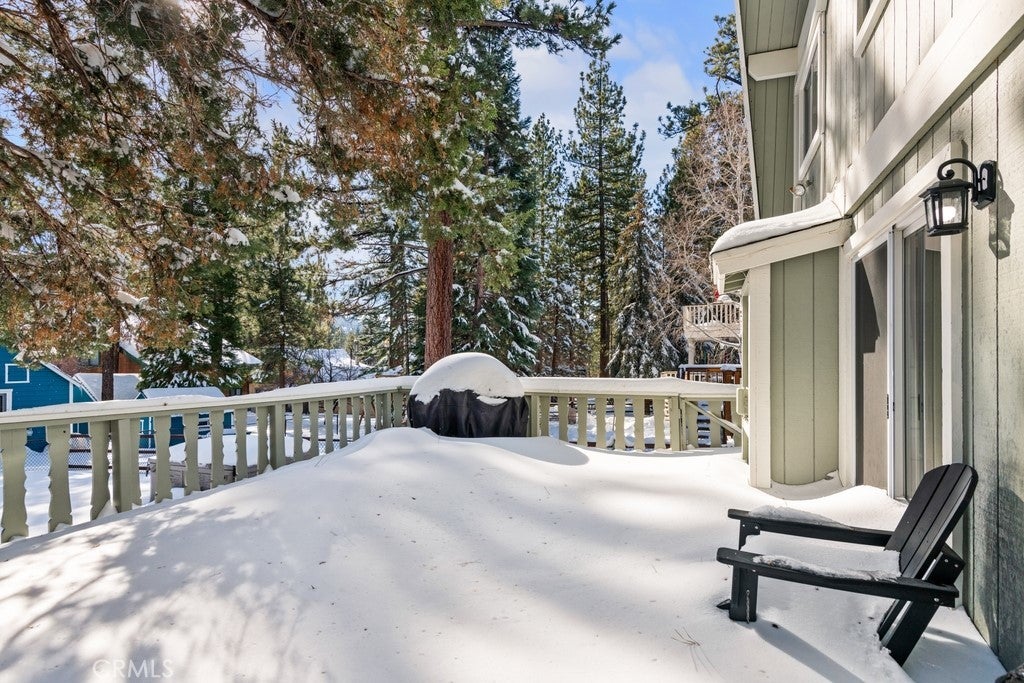 Beautifully upgraded and ideally located in the heart of Big Bear, this charming 2-bedroom, 2-bath mountain retreat offers the perfect blend of style, comfort, and convenience. Situated on a completely fenced corner lot with fantastic curb appeal, this home features a spacious wrap-around deck—ideal for relaxing, entertaining, and enjoying the fresh mountain air. Inside, you’ll love the newly upgraded flooring, fresh interior paint, and remodeled kitchen and bathrooms that give the home a modern, move-in-ready feel. Thoughtful updates throughout create a bright and welcoming atmosphere. Located in desirable Lower Moonridge, you’re just minutes from the Big Bear Alpine Zoo, golf course, and Bear Mountain Ski Resort, with convenient access to Bear Mountain shuttles. Plus, enjoy walking distance to local restaurants and shops—making it easy to experience the best of Big Bear year-round. An oversized 2-car garage provides ample parking and extra storage for all your mountain gear. Whether you’re looking for a full-time home, weekend getaway, or investment opportunity, this property checks all the boxes.