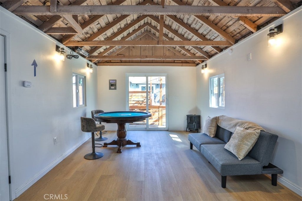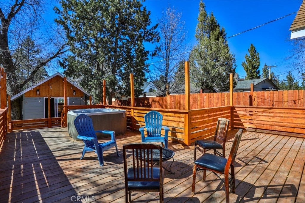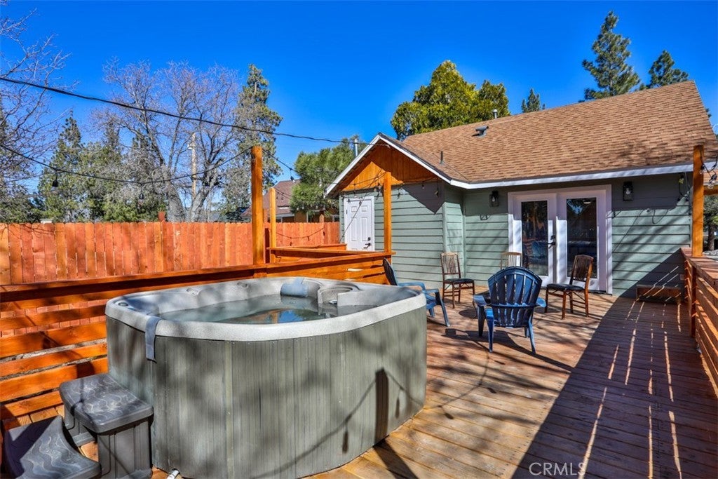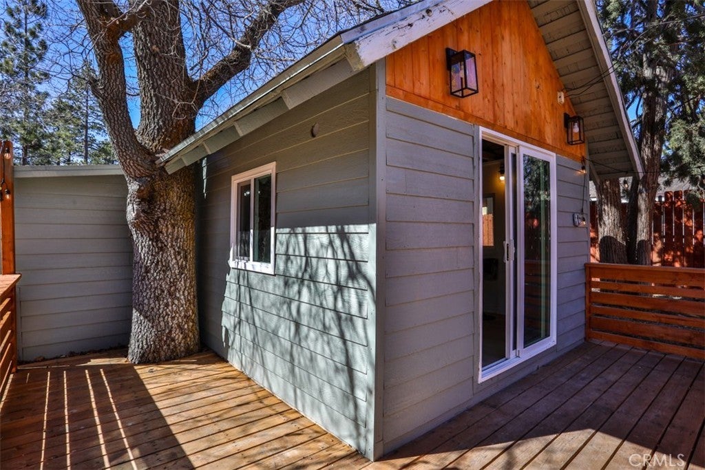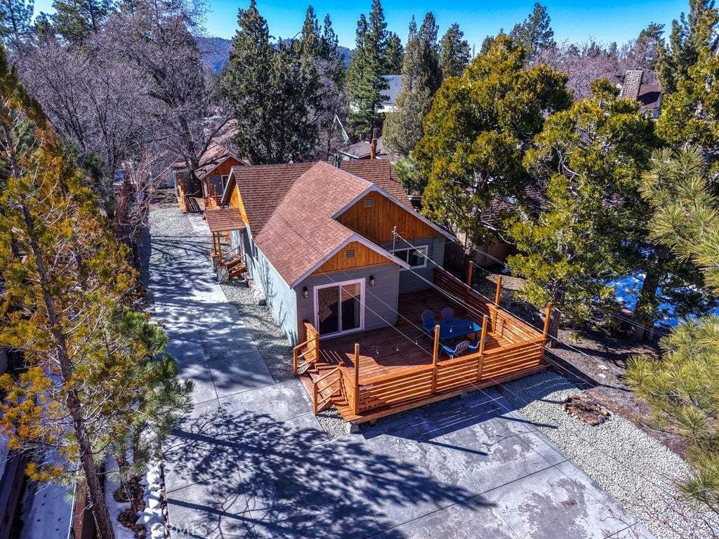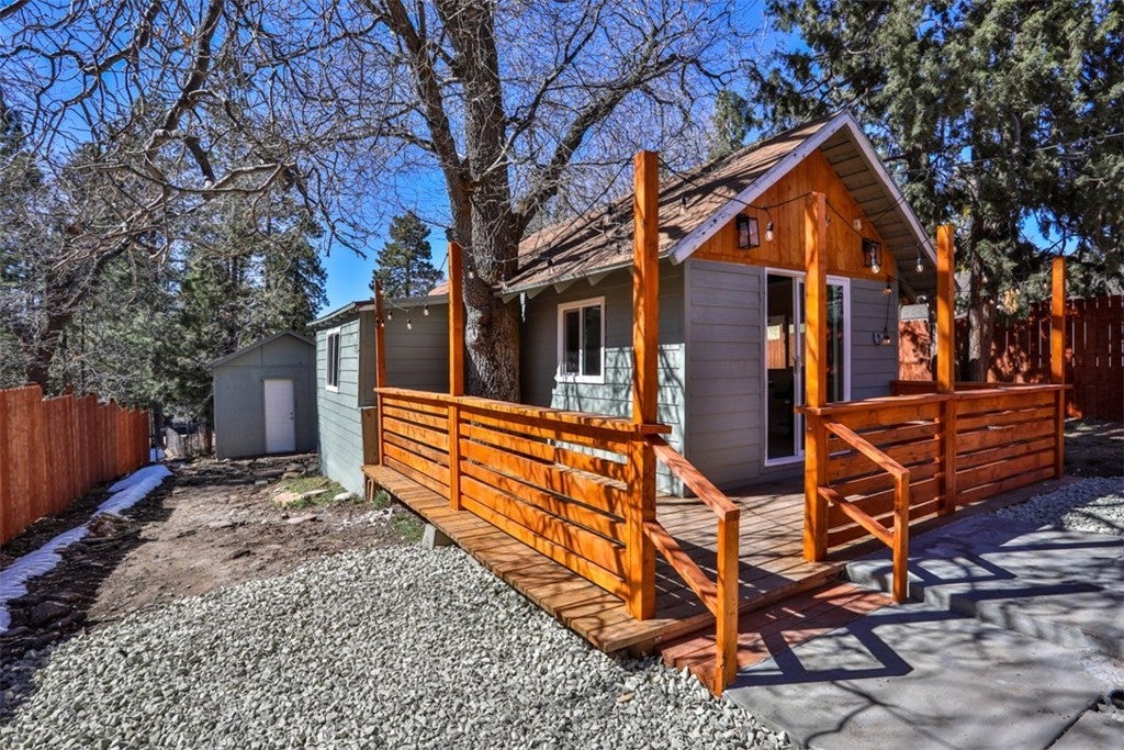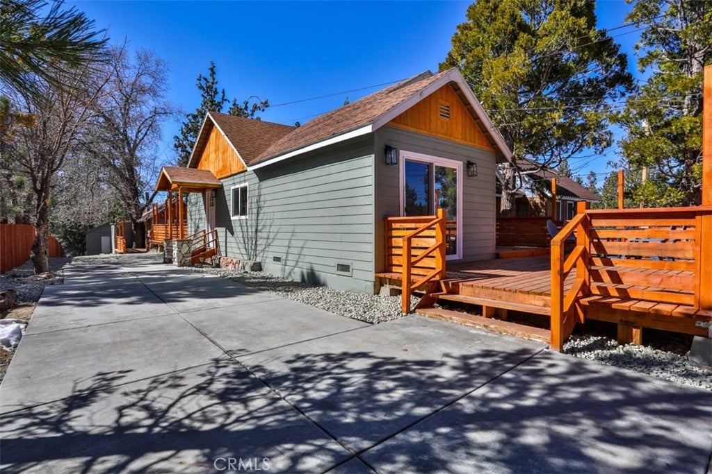 ***MASSIVE Price Drop***See Our 360 Degree Virtual Tour***Nestled in one of the highly sought-after areas of Big Bear, California, this charming single-story vacation property offers a rare opportunity for multigenerational living, rental income, or the perfect mountain retreat. Designed as a two-unit property "ADU" and approved for Short Term Rental, it combines comfort, style, and versatility in a setting that captures the essence of Big Bear living. As you approach the home, you are welcomed by a massive custom driveway providing parking for up to ten vehicles—ideal for hosting family and guests. The driveway leads to an expansive custom front patio, perfect for relaxing and enjoying the fresh mountain air. The primary front unit features a spacious two-bedroom, one-and-a-half-bath layout with a light and bright interior, fresh paint, quartz countertops, and custom cabinetry. The property has been extensively updated with new plumbing, electrical, fixtures, recessed lighting, ceiling fans, and upgraded switches and outlets throughout. A modern fireplace provides warmth and ambiance without the need for traditional logs. The bathrooms are beautifully upgraded, including a full bath and convenient powder room. The primary bedroom offers a sliding glass door that opens to the front patio, while the family room features French doors leading to a spacious rear deck complete with a relaxing jacuzzi and ample room for entertaining. A shared laundry room sits just off the deck for convenience. The rear unit offers a studio-style layout with a separate sleeping area, quartz countertops, custom cabinetry, new fixtures, and a fully upgraded bathroom. At the back of the lot, a large storage shed provides the perfect place for seasonal gear such as skis, snowboards, and lake toys. With room to personalize and approved for Airbnb use, this property is an excellent opportunity for both personal enjoyment and rental income. Conveniently located near shopping, dining, Big Bear City, Big Bear Lake, and local ski resorts, this is the ideal mountain getaway. Don’t miss the opportunity to own this versatile Big Bear retreat. Don’t miss the chance to own this versatile Big Bear retreat—where relaxation, recreation, and opportunity await. This amazing unit is completely renovated, from top to bottom, windows, exterior and interior and doors! Its even staged and all of the appliances seen stay as does the furniture and spa.