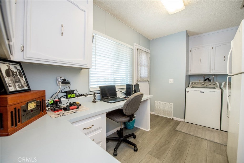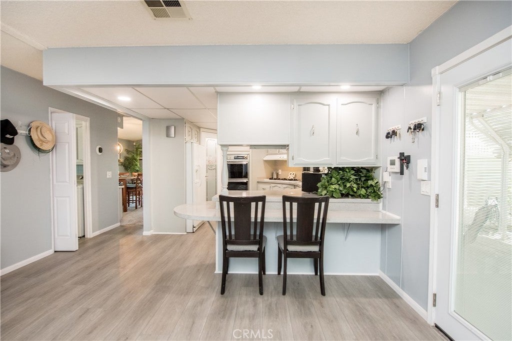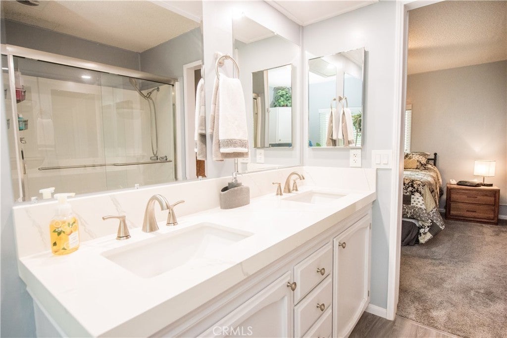 This home is Move-In ready in the desirable Villa Magnolia 55+ community. This one with so many upgrades. Remodeled home in 2022, Bathrooms, new flooring, shower, cabinets, sinks, shower glass enclosures and baseboards throughout Plus a new roof in 2022, plus it has a Super Earthquake bracing system. Laundry room and use of office with an additional refrigerator. 2 car concrete driveway with a 3rd parking behind the home fenced in for a golf cart for your use. Ground level for easy access,Double French doors for easy access and for entertainment. New energy savings dual pane vinyl windows newly installed Water heater in 2022. Interior painted inside and out. 2023 Carrier AC, plus LG power dishwasher is all for the taking. Be ready for this turn key home! Many things to list Property are immaculate and a must see. Close to shopping, hospitals, schools, centrally located to freeway and major streets.