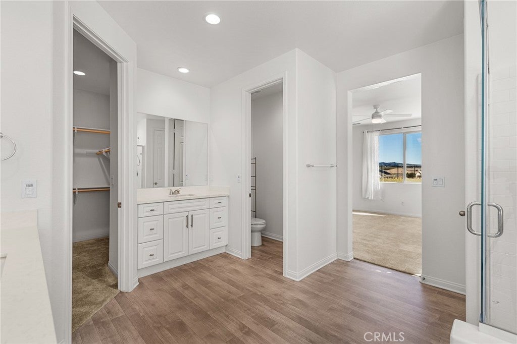 Sitting on an impressive 18,295 sq ft lot at the top of the development, this ~3,000 sq ft, 4 bed/ 3 bath, single-story, turnkey home is the crown jewel of the Summerwind Trails association! With only 1 immediate neighbor and a GORGEOUS, unobstructed, mountain view over the rest of the association, this property is fit for royalty! It possesses all the features one would expect in a home of this caliber. The gorgeous kitchen, adorned with beautiful white granite countertops perfectly complimenting the ample raised-panel cabinetry, includes endless storage and prep space with its scullery and LENGTHY walk-in pantry. The large formal dining room with a sliding glass door leading to a secluded covered patio is perfect for gatherings with friends & family. The two front bedrooms, BOTH with walk-in closets, share a corner-entry Jack & Jill bathroom providing both privacy and convenience. The primary en suite bedroom includes his and hers vanities, a shower and large soaking tub, and boasts an incredible 16 ft long 110+ sq ft walk in closet! Additional amenities and nice-to-haves include central heat & air, watr softening system, double pane windows, recessed lighting, stainless steel appliances, ceiling fans, tankless water heater, tile roof, owned solar, landscape lighting, turf front yard, quartz counters, reclaimed water service for landscaping, built-in storage, office space, room for RV parking, and so much more! Those buyers for which average just won't do, this is the home for you! Start packing and schedule a tour today!