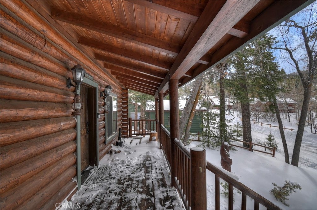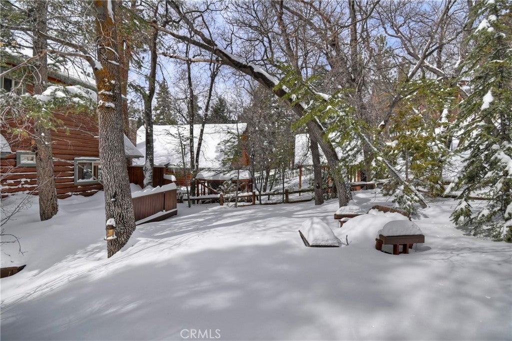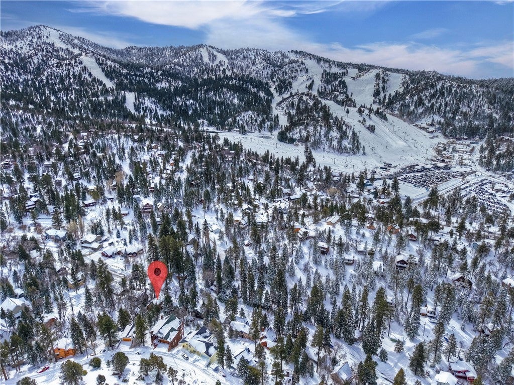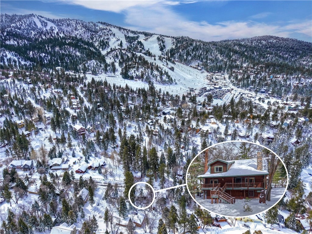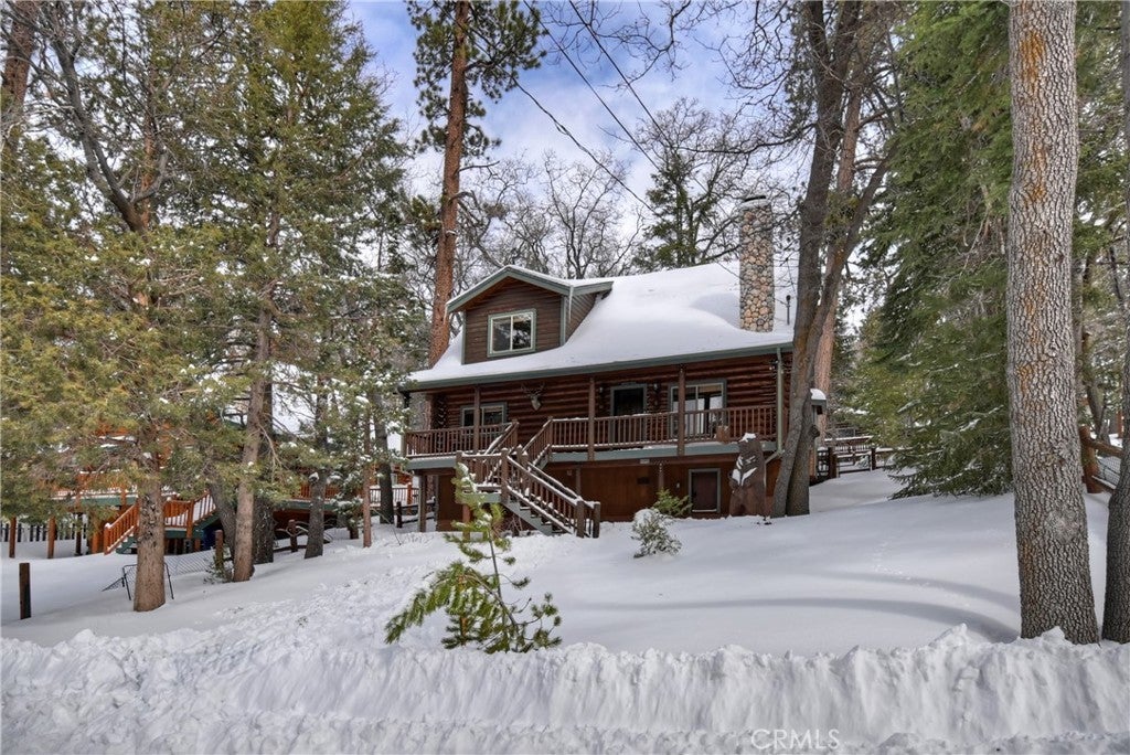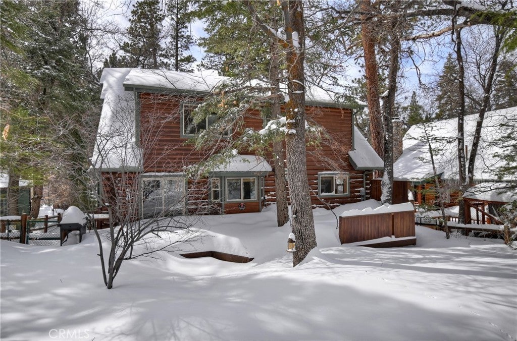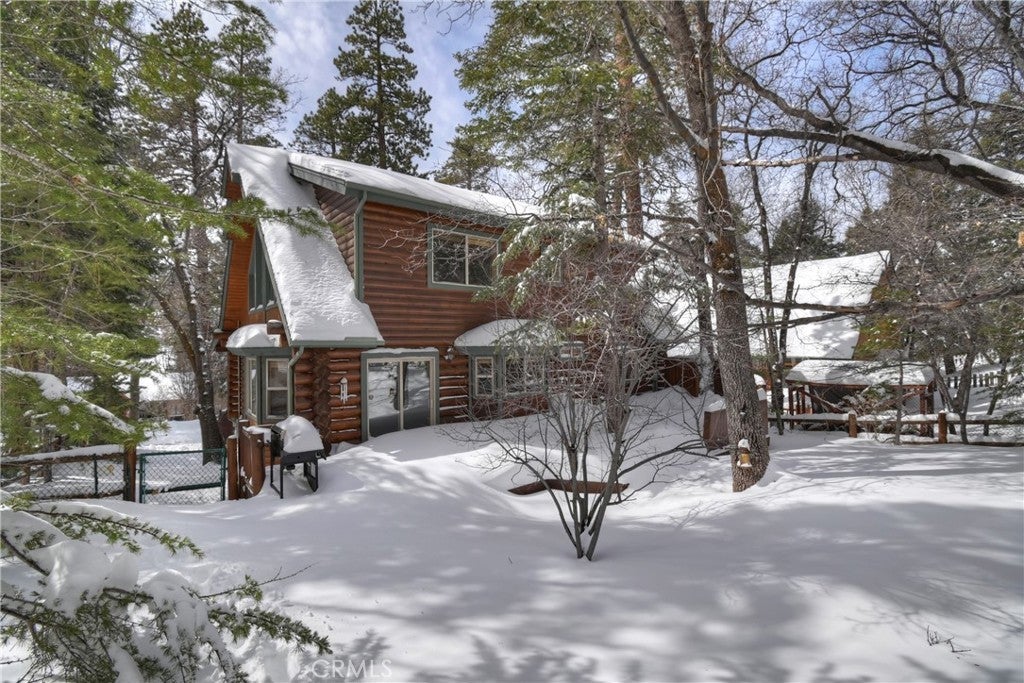 This is the true log cabin in the mountains you have been waiting for ~ Located in Moonridge and just a few minute drive to Bear Mountain ski slopes ~ Imagine yourself relaxing on your front deck taking in the sounds of nature and your peek-a-boo views of the ski slopes ~ As you enter you will fall in love with the soaring tongue and ceilings and the floor to ceiling river rock wood burning fireplace ~ Hardwood floors flow throughout the cabin ~ The main level gives you the open kitchen, dining area, living room, 2 bedrooms and a full bathroom ~ Upstairs is your large loft with pool table and the master bedroom with its own en suite bathroom and vaulted ceiling ~ The backyard is where the magic happens ~ You have your own private hot tub sunken in the deck, a paver walkway to a bridge taking you over the built in waterfall to a sitting area ~ Your own private park for relaxing and letting the stressors of everyday life just melt off your shoulders ~ This is your opportunity to finally have the quintessential cabin in the woods you have always dreamed of!