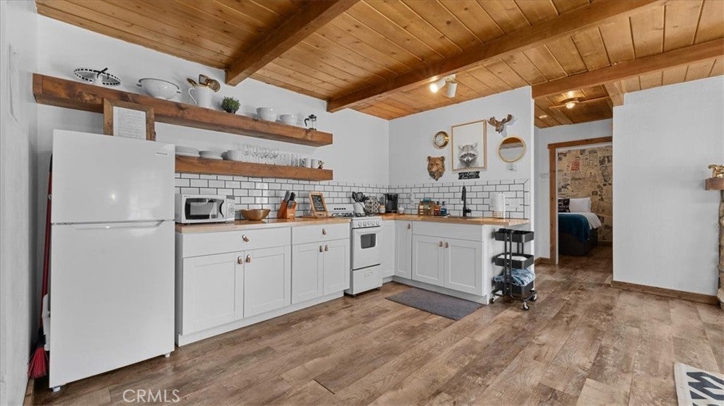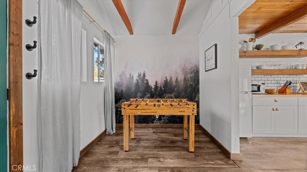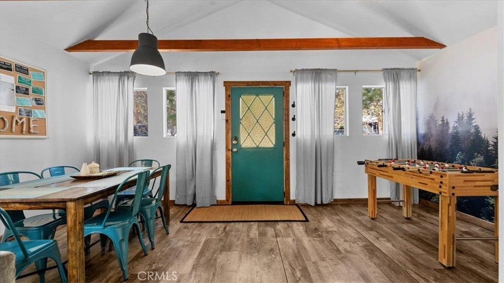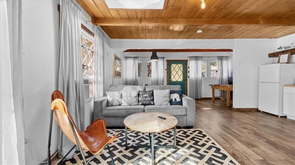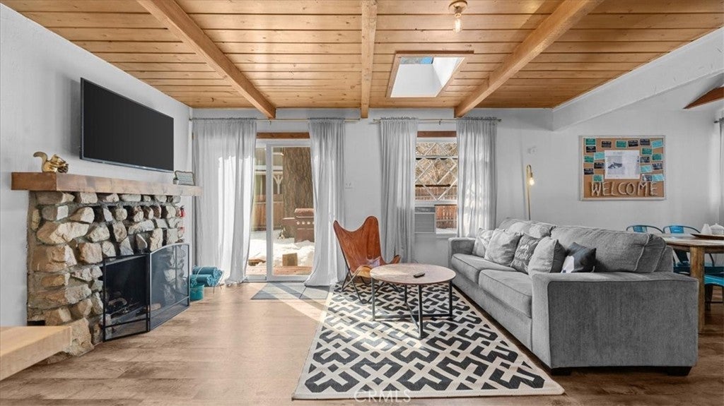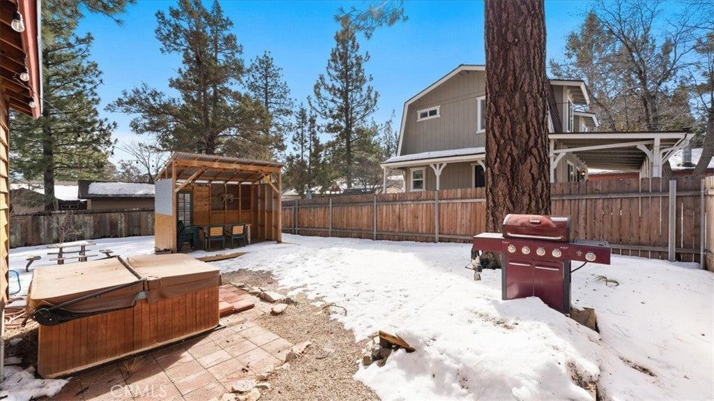 Turn the key and start earning or start relaxing. The perfect blend of mountain charm, modern comfort, and turnkey investment opportunity. Currently operating as a successful short-term rental, this fully furnished cabin is ready for its next chapter, whether that’s your personal vacation escape, primary mountain home, or income-producing property. Step inside and feel instantly at home with warm wood-beamed ceilings, abundant natural light, and a welcoming open-concept living space centered around a beautiful stone fireplace. The thoughtfully designed interior features updated flooring, a bright kitchen with open shelving and subway tile backsplash, and comfortable gathering areas perfect for relaxing after a day on the lake or slopes. This property is being offered fully furnished, including all appliances, beds with built-in storage, dining table, couches, rugs, décor, foosball table, and more, making it truly move-in or rental ready from day one. Outside, enjoy the spacious backyard complete with a newer covered gazebo ideal for outdoor dining and entertaining, a private spa for year-round enjoyment, mature trees, and a storage closet connected to the home for added convenience. Ideally located close to Big Bear High School and nearby parks, just 10 minutes to the lake and only 15 minutes to The Village, this home offers easy access to everything Big Bear has to offer while still providing a peaceful neighborhood setting. Whether you're looking to create lifelong mountain memories or continue generating rental income, this charming cabin delivers comfort, character, and opportunity all in one.