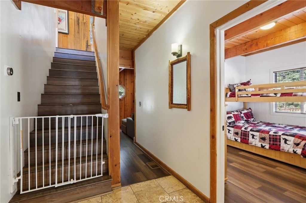 Moonridge mountain chalet with ski slope views! Nestled in the highly sought-after Moonridge neighborhood of Big Bear Lake, this log-sided mountain home is priced right and ready for its next adventure. Featuring 3 bedrooms, 3 baths, and 1,740 square feet, it offers the perfect blend of space, comfort, and classic alpine charm—ideal for entertaining or simply relaxing and unwinding. As you step inside, you’re welcomed by a convenient foyer area—perfect for dropping skis after a day on the slopes or hiking boots after exploring the trails. The spacious bedrooms provide room for everyone to spread out, while the versatile bonus room can easily serve as a home office, game room, or cozy reading nook. Step outside to soak in the hot tub while enjoying direct ski slope views and stargazing under the crisp mountain sky. Upstairs, the inviting living room features a cozy fireplace setting and access to an additional deck—perfect for sipping your morning coffee or an evening cocktail as you take in the views. With warm wood accents throughout and that true cabin-in-the-mountains feel, this Moonridge retreat captures everything you love about mountain living—whether as a full-time home, weekend escape, or investment opportunity.