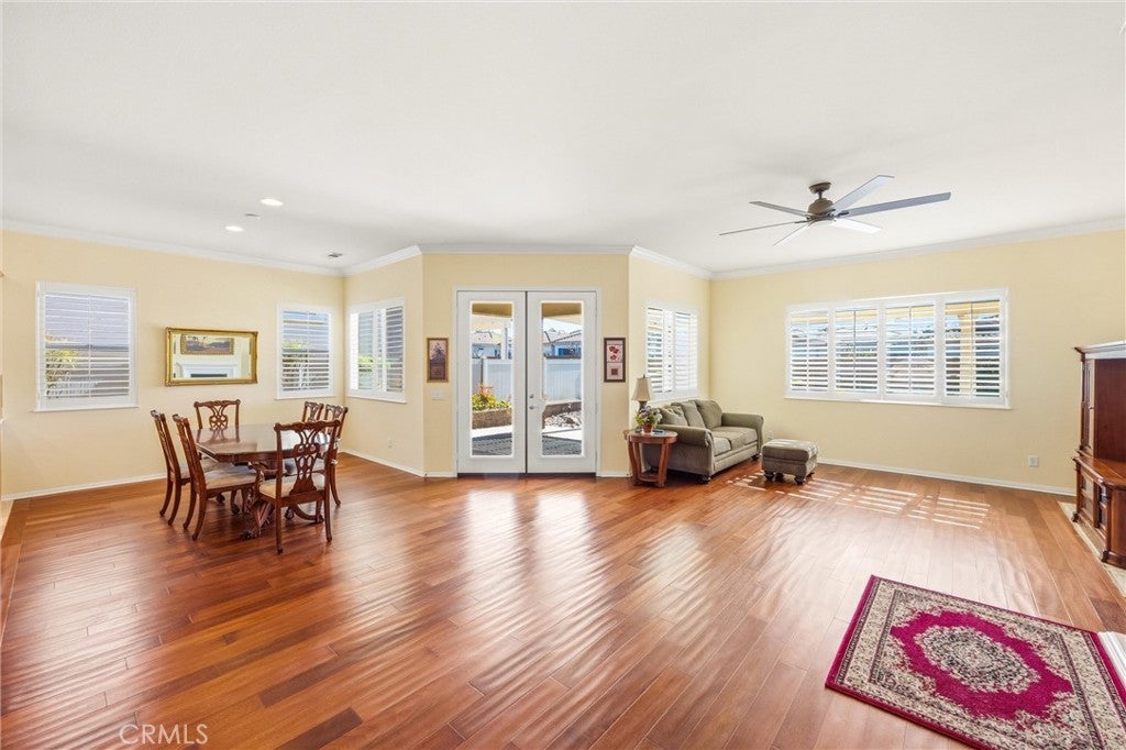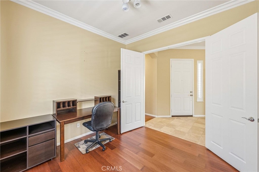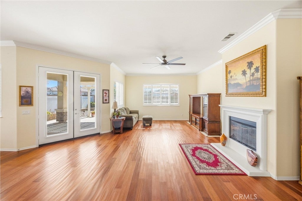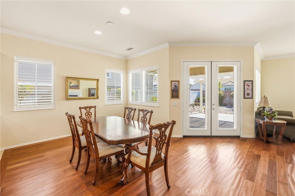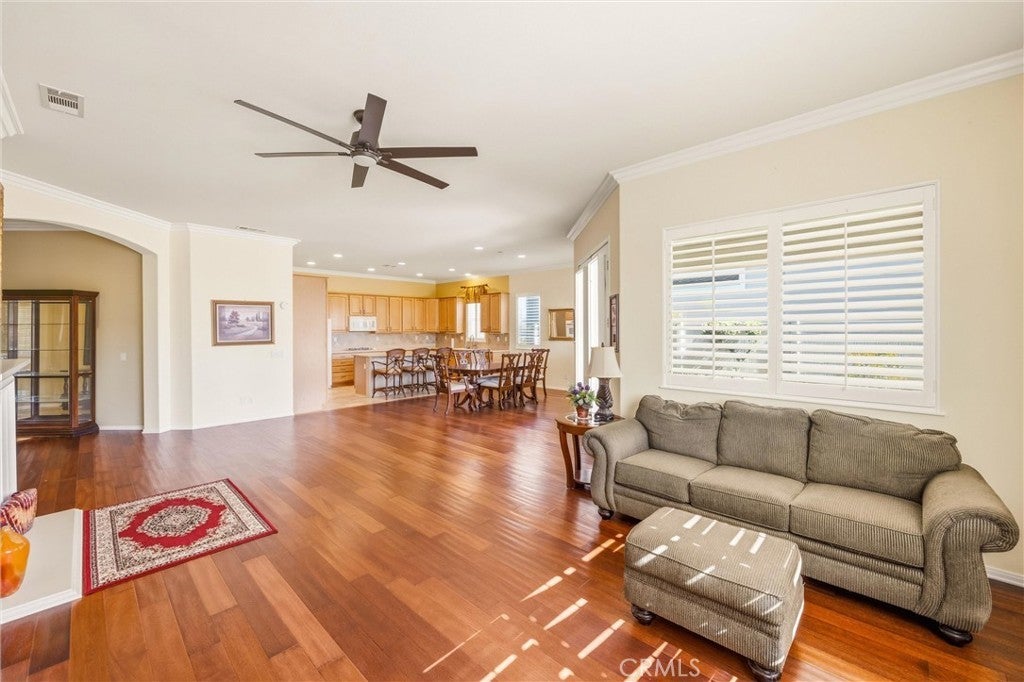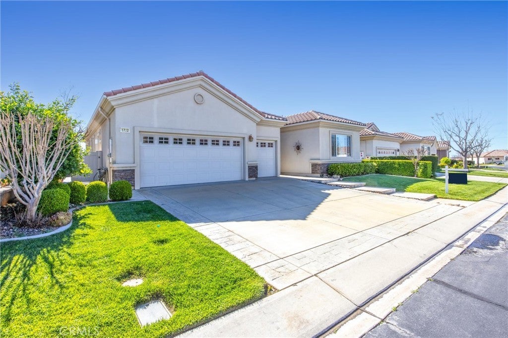 Welcome to 1732 Brittney! A Del Webb home and Solera's largest model at 2,127 Sq ft. The 'EMERALD’ features 2 Bedroom's, 3 Baths + Den/Office . It includes TWO Primary Bedrooms with En Suite Bathrooms & Walk-in Closets; each located on opposite ends of the home with privacy in mind. The Kitchen is well thought out, with a large Island/Breakfast Bar with ample storage, cabinetry & counter space. With BEAUTIFUL upgraded wood flooring and crown molding throughout, it is an Entertainers delight. Family and friends alike will appreciate the open floor plan, where people can gather and mingle, flowing seamlessly into the back yard, enjoying the peaceful fountain, covered patio and rock garden. The AC unit was replaced and it still has a 5 year warranty left on it. A new heating unit was installed in 11/24. Solera offers a Clubhouse, Library, Meeting & Banquet Rooms, Pool, Spa, Indoor Gym, Indoor Track, Tennis Courts, Billiards, , Bocce Ball, Classes & Clubs, Group Trips and 24-hour Security. Basic Spectrum Cable and Internet are included with your HOA. The Solera 55+ Community is surrounded by a picturesque mountain backdrop, and is Freeway close, I-10/60. Just a short distance to wonderful shopping, Cabazon Outlets, Casino Morongo; Golf at Oak Valley Greens; Palm Springs and Desert; Medical facilities close by, including Loma Linda University Medical Center, with medical services in Beaumont. Furniture available, inquire with Agent.