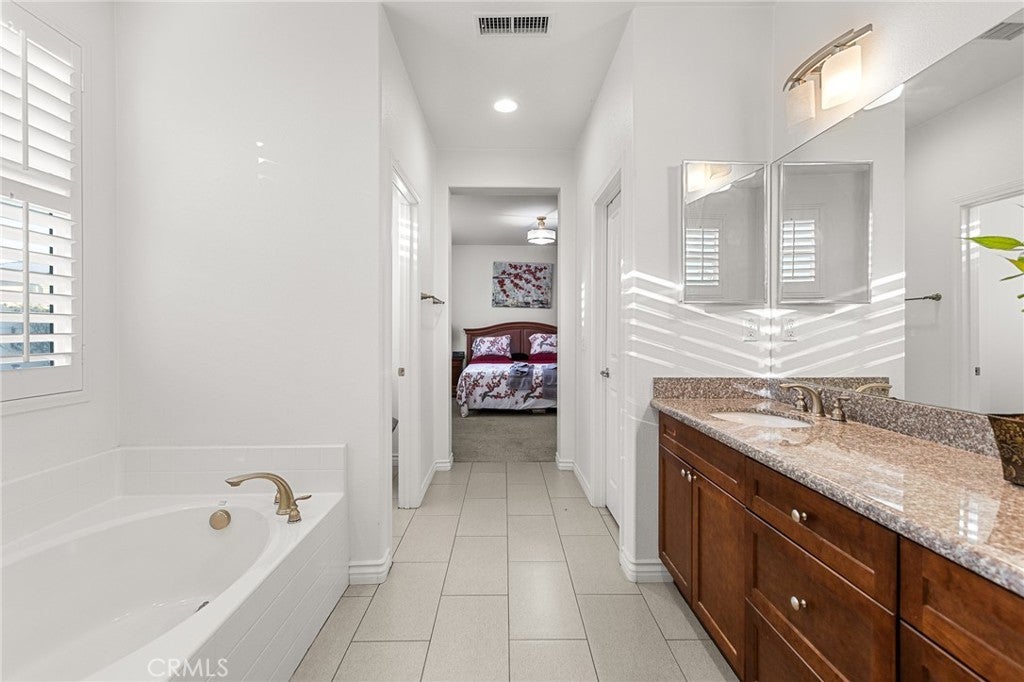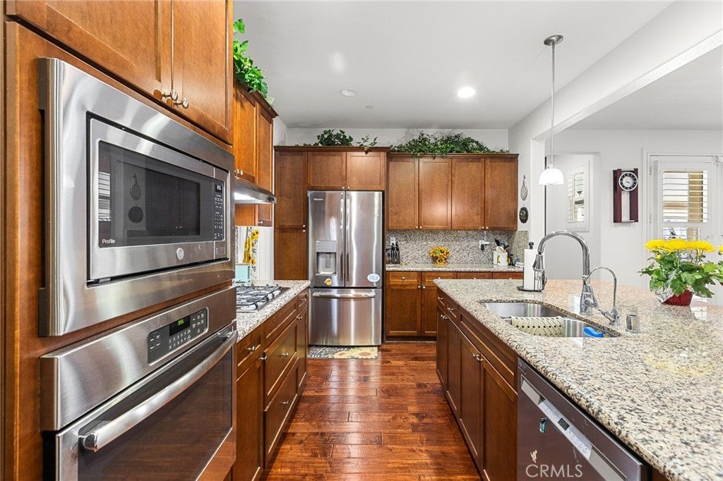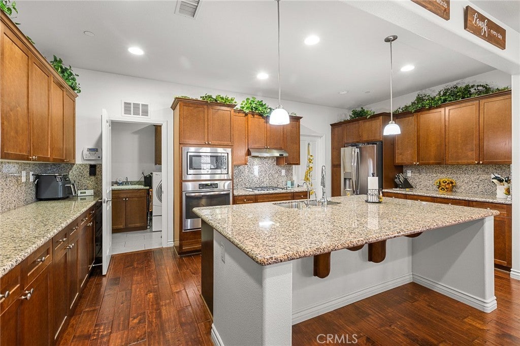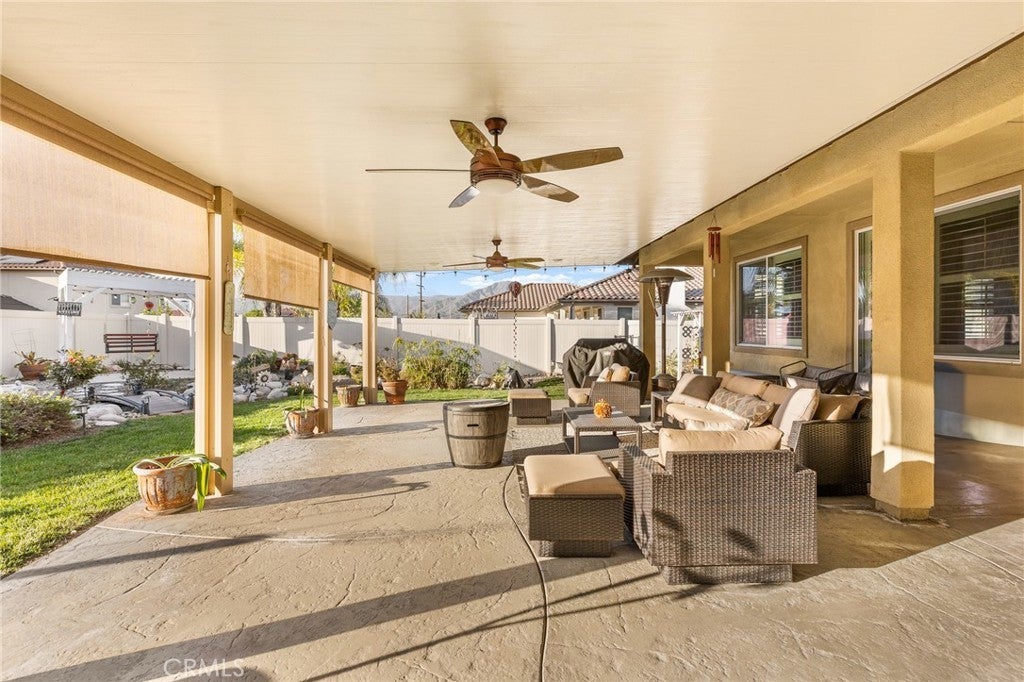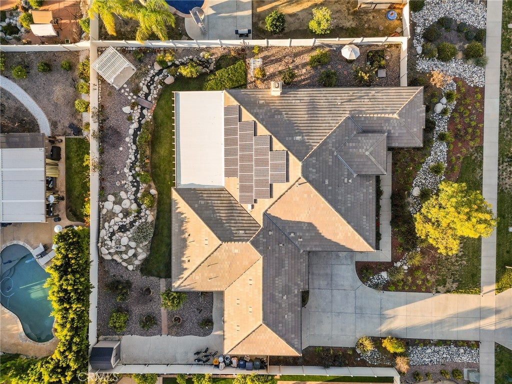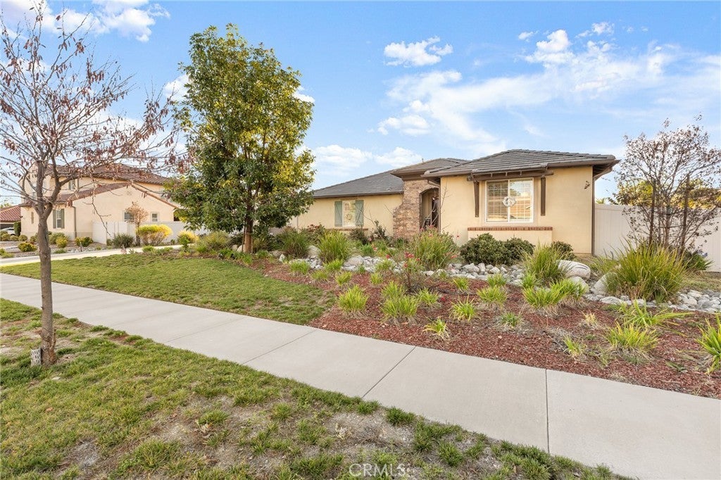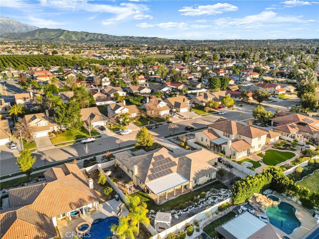 Welcome to this beautifully appointed custom single-story home offering 4 bedrooms and 3.5 bathrooms on a spacious 1/3-acre lot in a well Established neighborhood of Redlands. Designed with both comfort and style in mind, this residence showcases tasteful modern finishes and warm neutral tones throughout. Step inside to find rich hardwood flooring, plantation shutters on every window, a whole-home water softener system, and an energy-efficient 24-panel PAID solar system. The open-concept layout is ideal for entertaining, centered around a grand kitchen featuring abundant prep space, generous cabinetry, and a walk-in pantry. The thoughtfully designed split-bedroom floor plan offers privacy and flexibility for family living, while an additional family room/flex space on the north end of the home provides the perfect area for a media room, office, or playroom. Outdoors, unwind in the serene backyard oasis complete with an alumawood patio cover, stamped concrete, Vinyl fencing with custom iron gates and a charming river-rock stream feature spanning the length of the yard. Both side yards are fully irrigated and home to thriving fruit groves including avocado, apple, grapefruit, tangerine, plum, guava, dragon fruit, Chinese apple, blood orange, cherimoya, and longan — all producing. Additional highlights include a 3-car garage, convenient indoor laundry room and water softener system. Modern comfort, energy efficiency, and resort-style outdoor living — all on one level with No HOA or Mello Roos! Don't Miss this one!