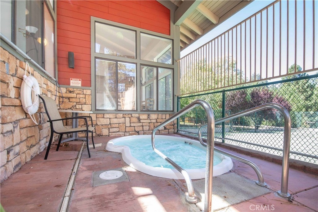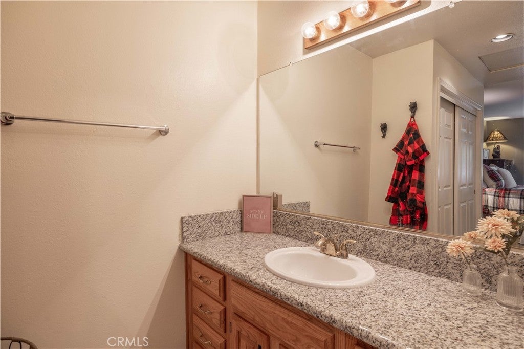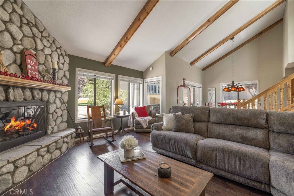 Walk-to-Slope & Golf Course View End-Unit at Bear Meadows. Rare end-unit condo located directly across from Bear Mountain Ski Resort and overlooking the 2nd tee of Bear Mountain Golf Course. This 2BR/2.5BA mountain retreat features vaulted ceilings, a cozy rock fireplace, and a granite-clad kitchen. Both bedrooms are en-suite for maximum privacy. Enjoy a covered deck with golf course views, an attached garage for gear, and a rare extended driveway. Premium HOA includes a clubhouse, spa, tennis, and fitness center. Perfect as a high-potential short-term rental or private getaway. Furnishings negotiable!