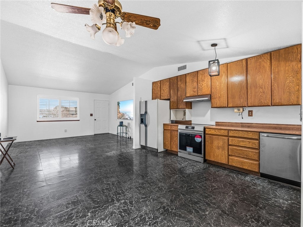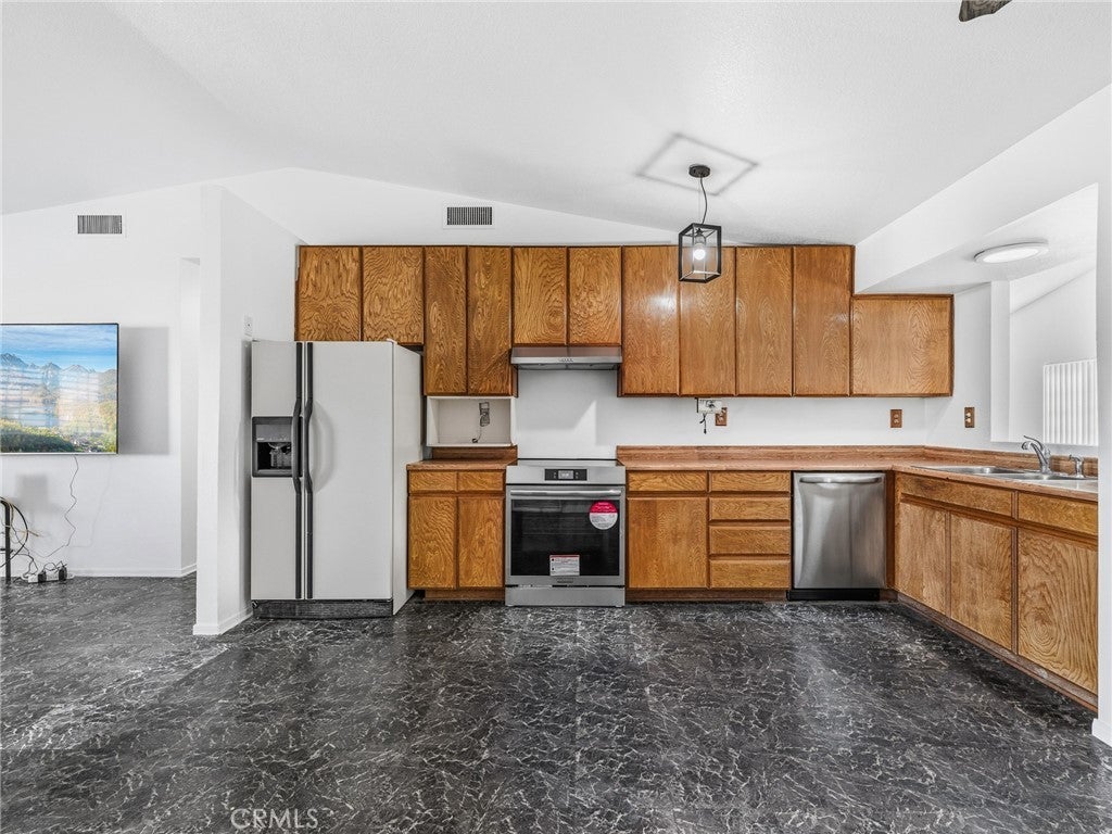 Endless Possibilities on a Fully Gated Hesperia Property! Welcome to this versatile 3-bedroom, 2-bath home with a 2-car garage located on a large nearly ½-acre lot. The home features an open floor plan that creates a comfortable flow between the living, dining, and kitchen areas. The kitchen has been refreshed with a brand-new stove and dishwasher, and the interior boasts new paint, giving the home a clean and updated feel. Enjoy additional living space in the enclosed porch. The exterior offers incredible functionality with fully fenced and automatic gate access, a 2-car garage, and an additional gated 4-6 car carport with automatic gate, providing plenty of room for vehicles, toys, work trucks, or storage. For added peace of mind, the home is equipped with a Flo by Moen smart water detection system, helping monitor and protect the water in home. With its spacious lot, flexible layout, and extensive parking, this property offers both comfort and practicality in a great High Desert location.