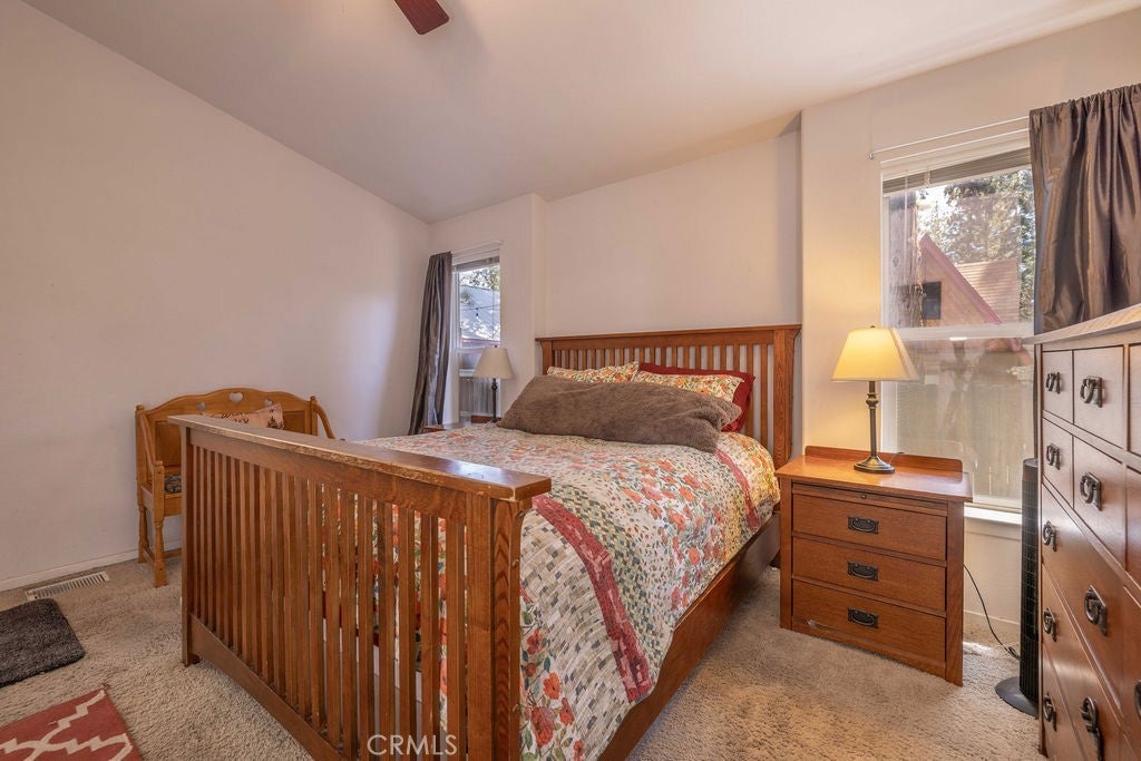 This bright, clean and cozy Big Bear City home has all the creature comforts one would want in a full-time home, mountain getaway, or rental investment! The kitchen features a breakfast bar in the island, lots of prep space, and a cozy dining alcove. In the living room, a warm and inviting fireplace welcomes you to shake off the mountain chill, and vaulted ceilings and dual pane windows through, plus ceiling fans in every bedroom, provides an escape from the summer heat. The fully fenced backyard gives a safe space for pets or kids, and the privacy screened deck provides an intimate space for entertaining or soaking in the hot tub. This neighborhood is unique in that it receives mail and Amazon delivery, as well as trash pick up at this address, compared to many Big Bear Lake neighborhoods that do not receive these convenient services. Located a couple block from national forest hiking trails, and just a short drive to the convention center, sledding area, lake, slopes, and Village, this tastefully furnished home is currently operated as a vacation rental and is turn-key ready to start producing income and making memories!