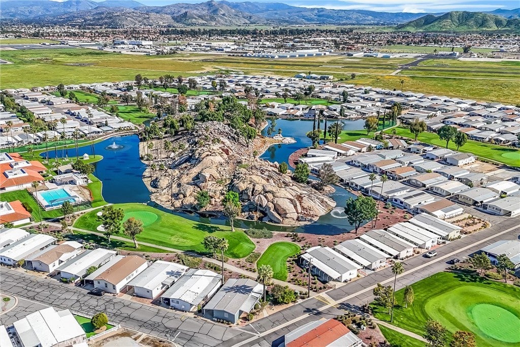 Welcome to The Lakes at Hemet West, one of Southern California's most beautiful 55+ manufactured home gated communities. This charming 2 bedroom, 2 bathroom home is a move-in ready residence featuring a newer roof, stainless steel appliances, butcher block kitchen countertops, kitchen tile flooring, and wood flooring throughout the rest of the home. Enjoy beautiful lake views from nearly every room and relax on the wrap-around porch overlooking the peaceful surroundings. This home offers plenty of comfortable living spaces including a living room, separate family room, dining room, a convenient indoor laundry room, and plenty of natural light. Residents of The Lakes at Hemet West enjoy resort-style amenities including a 9-hole par three executive golf course, putting greens, heated Jr. Olympic pool and jacuzzi, pickleball and bocce ball courts, shuffleboard, horseshoes, private dog park, covered barbeque area overlooking the water and so much more! This clean, turn-key home is the perfect opportunity to enjoy resort-style living in a peaceful lakeside setting. Schedule your showing today!