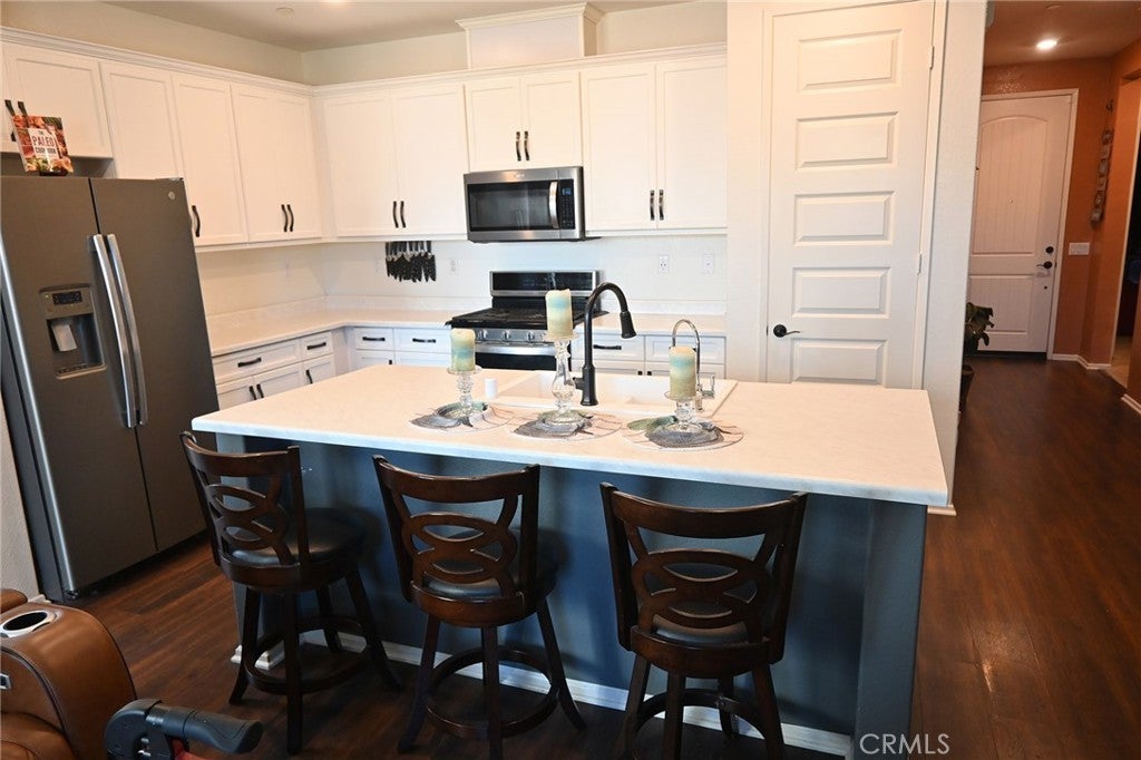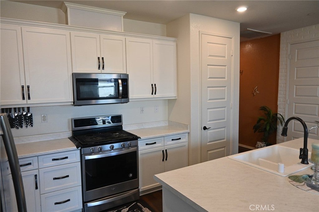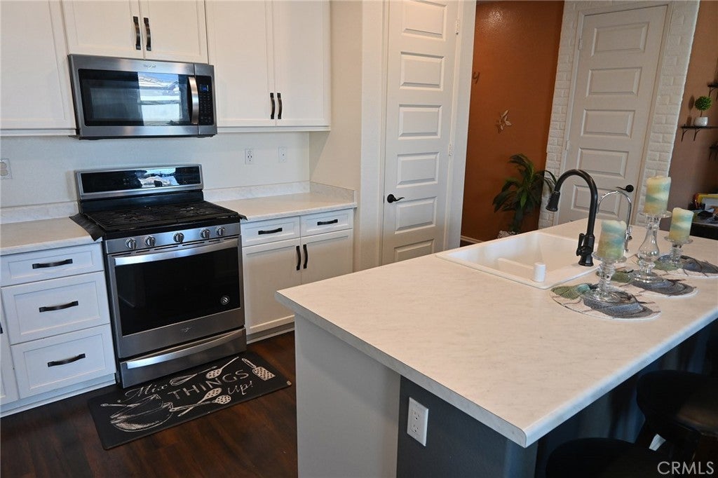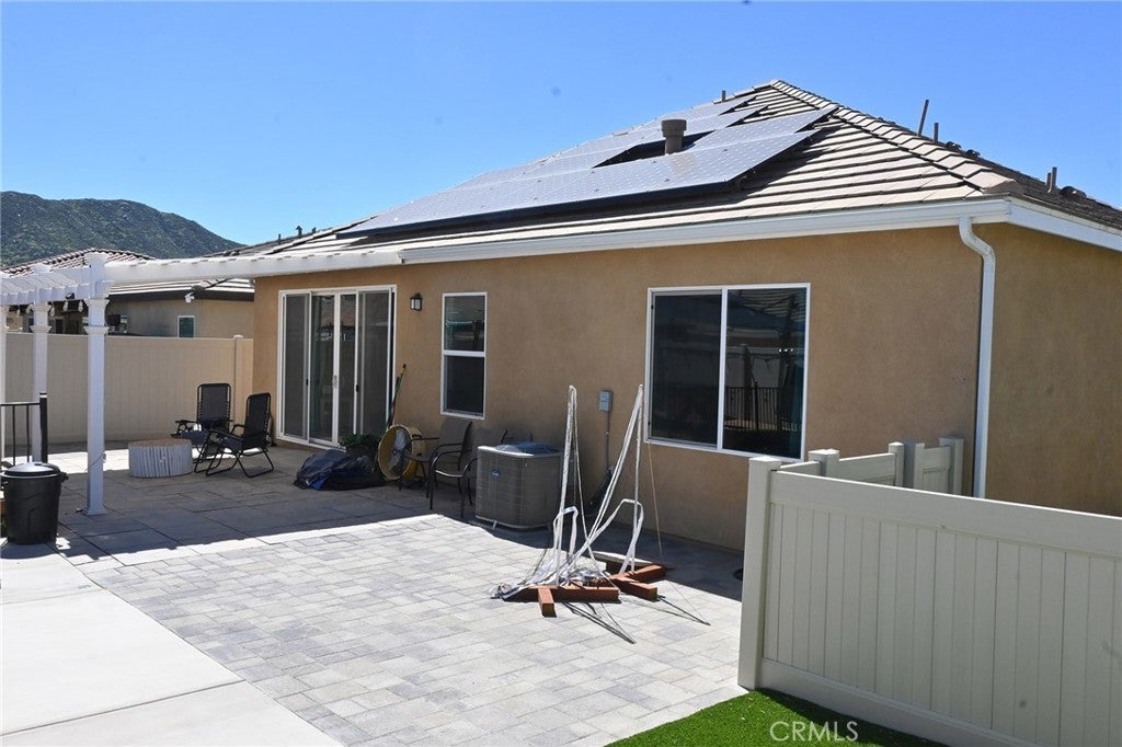 Wonderful, beautifully maintained and upgraded single story home built in 2019 located in a beautiful Winchester neighborhood. This 3-bedroom, 2-bathroom residence offers an open and functional floor plan that in which the great room flows into a modern kitchen featuring white cabinetry, high-definition laminate countertops, stainless steel appliances, and a large center island—ideal for everyday living and entertaining. The private primary suite includes a walk-in closet and an on-suite bath. Additional bedrooms provide flexibility for guests. Enjoy a 7.1 home theater system with Klipsch speakers. Energy efficient features include a 21kW solar system that produces approximately 32kw and central HVAC. Additionally, there is a home backup generator by Generac that will supply power when there is an area power outage. The property also offers an attached two car garage with an EV outlet and low maintenance landscaping with artificial turf front and back yards. Quad sliding doors open to the backyard, creating seamless indoor-outdoor living with a built-in deck and fire pit, perfect for outdoor entertaining. Solar panels with an assumable lease. This marvelous home is move in ready and a fantastic opportunity. Located near schools, parks, shopping, commuter routes, and a short drive to Temecula wine country or Diamond Valley Lake.