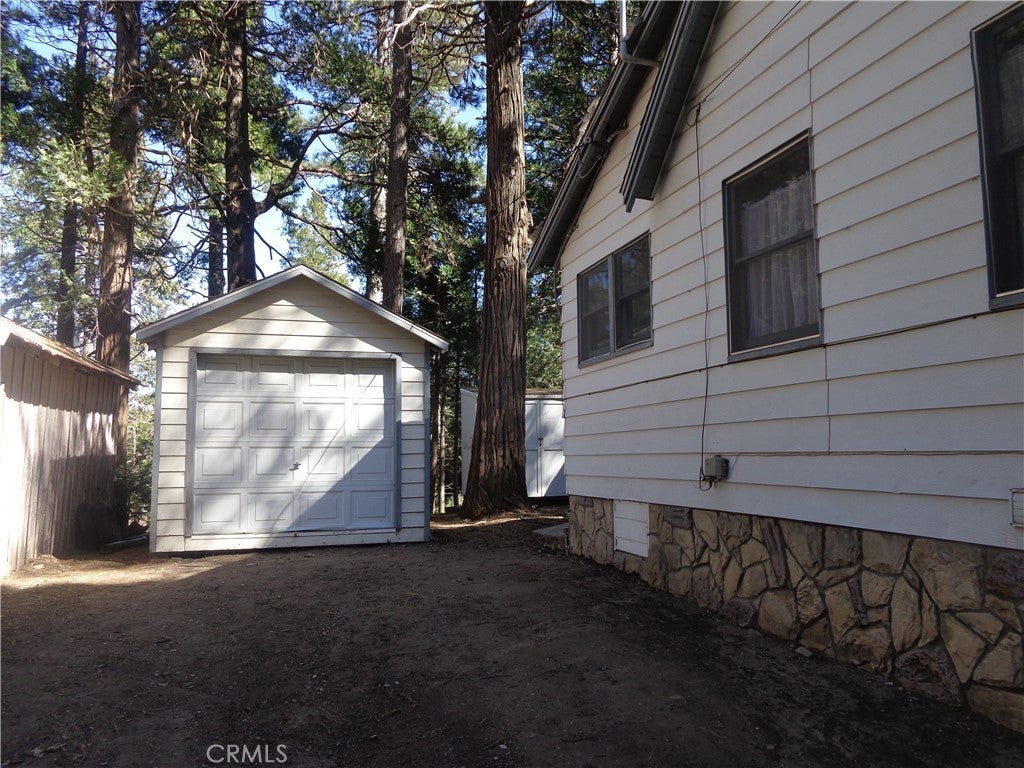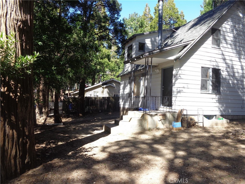 Rare opportunity to find 2 on a lot at this price. Main house has 3 bedrooms and 2 bathrooms. One bedroom and bath on the main level and two bedrooms and one bath on second level. There is no closet in one of the upstairs bedrooms but it does have a ductless unit. Washer/dryer hookups are between the two bedrooms. In the living room you will find a free standing woodburning fireplace and also a ductless unit. From the living room you have direcct access to a basement area that is set up for a work space or hobby room. Between the living room and kitchen is a dining room with built in cabinets. A convenient layout kitchen has good counter space, gas oven, refrigerator and microwave. The back door to the yard is off the kitchen. The ADU has had some upgrades with new flooring and bathoom. There is a drop down stair access to a storage space. No steps into this ADU and includes a storage shed outside. The yard has plenty of free space for you to create seating areas or play areas. There are no decks on either house. Main house has small porch that is covered. Plenty of area for parking in the driveway and in front of the main house. Convenient access to Hwy 18 and close to Top Town and Lake Gregory. Property sits up off the street and is very gently sloped with lots of flat areas to use. Check this out today. Photos of interior to come.