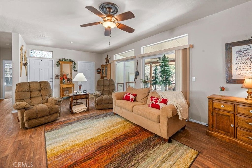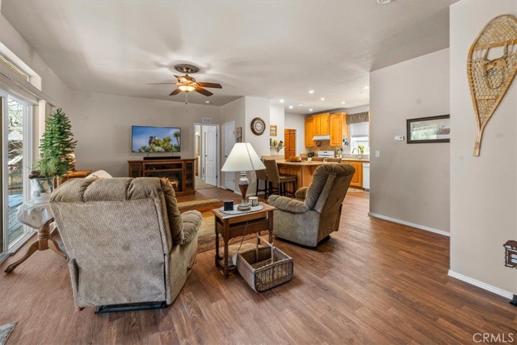 Manufactured home on a permanent foundation — not located in a trailer park! Enjoy modern mountain living on a quiet street in Sugarloaf. Built in 2014 with a custom floor plan, this well-maintained modified manufactured home offers 3 bedrooms, 2 bathrooms, and approximately 1,350 sq ft of comfortable living space on a spacious 7,000 sq ft lot. Located on a pet-friendly street with minimal traffic and mostly full-time residents, the neighborhood offers a peaceful setting with very few short-term rentals. Inside, you’ll find an open floor plan with high ceilings, recessed lighting, and a bright great room layout where the gorgeous kitchen flows seamlessly into the dining and living areas—perfect for entertaining or relaxing after a day in the mountains. The large breakfast bar is ideal for casual meals or morning coffee. The home comes fully furnished and includes appliances, making it truly move-in ready. The property is also equipped with a compliant fire suppression system. Additional features include extended eaves, a covered front entry to help keep snow off during winter months, and an attached garage. The home has never been used as a rental and has been lovingly maintained in excellent condition. Step out to the backyard patio with easy yard access and enjoy the convenience of National Forest access just at the end of the street—perfect for hiking, biking, and outdoor adventures. Located just about 5 miles from Big Bear Lake, you’re a short drive from the Village, two ski resorts, the golf course, Alpine Pedal Path, boating, fishing, hiking, live music, dining, and year-round mountain activities. Big Bear is Southern California’s four-season resort destination—and you can call it home.
