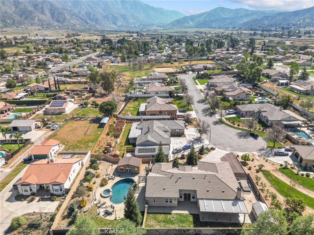 Located on a quiet cul-de-sac in desirable Shaefer Ranch, this EXCEPTIONAL SINGLE-STORY RESORT-STYLE POOL HOME sits on an expansive 20,022 sq ft fully landscaped lot with mountain views and abundant parking. The spacious 3,110 sq ft floor plan features 10 foot ceilings, 4 oversized bedrooms, 3 full baths, a private office that can easily serve as a 5th bedroom and a multi functional formal dining room. A floor-to-ceiling stone fireplace serves as a focal point in the great room that flows nicely into the inviting eat-in kitchen complete with center island and bar seating, stainless appliances, pantry, ample storage and french doors that open to the backyard. A second living/family room with fireplace also has french doors to the backyard. The generous primary suite welcomes you through double doors and offers a relaxing and restful space with a jetted soaking tub, separate shower, dual vanities and a walk-in closet. An EXQUISITE BACKYARD RETREAT awaits you featuring a stunning pebble finished heated pool with baja step and spacious 10-12 person spa with a tranquil cascading waterfall. The grounds are thoughtfully designed with a separate 384 sq ft pool house for added convenience, a custom fire pit and ambient lighting that highlights the landscape after sunset. A charming gazebo offers a shaded shelter while mature, easy care landscaping create a resort-style outdoor oasis ~ Ideal for year-round enjoyment. The property is fully fenced with block walls on all sides, gated and cross-fenced. Additional great-to-have features include massive, iron gated 18x45' RV parking, a large 10x20' shed on concrete pad, a 15x37' covered patio plus additional open patio space, a three-car garage and driveway that accommodates up to ten vehicles. No HOA. This is the home you have been waiting for! Click on the video icon to take a 3-D tour of this great home!