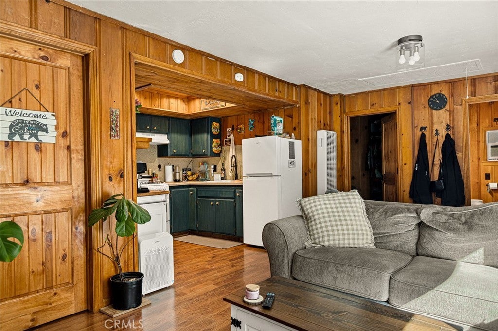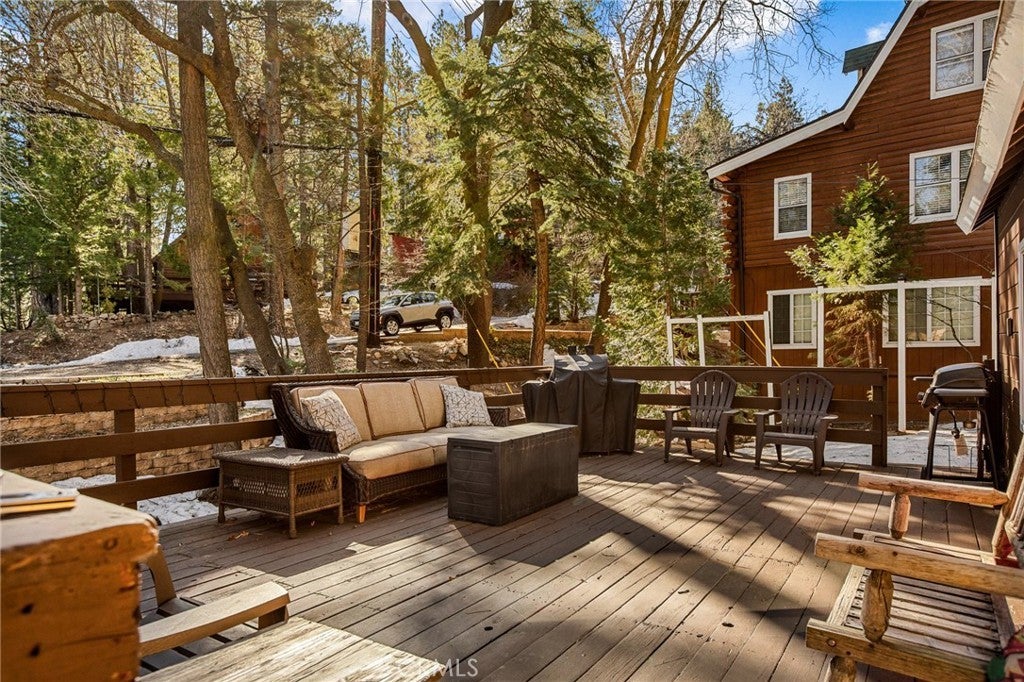 MOTIVATED SELLER - MUST MOVE!! COME FALL IN LOVE AND MAKE AN OFFER. Seller is offering buyer concessions Check out this adorable mountain cabin where modern comfort meets rustic charm. This single-level home features 2 bedrooms and 1.5 bathrooms. Enjoy the newly painted large deck perfect for entertaining or just relaxing in the fresh mountain air. Inside, beautiful knotty pine tongue-and-groove paneling throughout creates that classic “in the woods” cabin feel. The open-concept living and dining area showcases a beautiful antique wood burning stove. The charming kitchen sits just off the living and dining area and features a farmhouse sink, adding to the home’s cozy character. Additional conveniences include a stackable washer and dryer and pull-down ladder access to a standing-room attic for extra storage. Outside, the 7,654 sq ft lot offers plenty of potential for gardening or even building a garage. The property also includes two storage sheds with electricity, perfect workshop potential and off-street parking for several vehicles. Recent upgrades include a newer water heater and vinyl windows. Located within walking distance to town with shopping and restaurants, and just minutes from hiking trails and the local ski resort, this home offers a great commuter location and is perfect for full-time living or a weekend mountain getaway. Tucked away in a private forest setting, this cabin is surrounded by towering pines and charming apple trees, creating a storybook mountain retreat with unmatched privacy and natural beauty.
