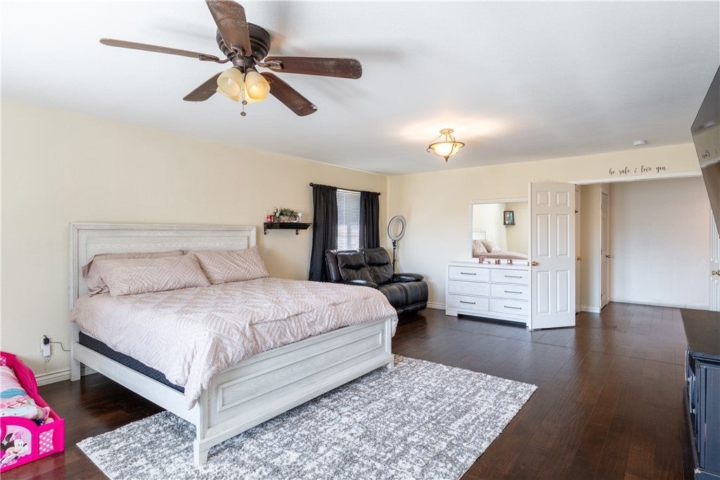 Spacious two-story home offering 5 bedrooms and 3 full bathrooms, including a bedroom and full bath on the main floor, ideal for guests or multi-generational living. Upstairs, the loft has been enclosed to create a versatile bonus room that can easily serve as a home office, gym, game room, or additional living space. The large kitchen features granite countertops, a center island and ample cabinetry, providing plenty of storage and workspace. The open-concept design connects the kitchen to the inviting family room, creating a comfortable space for everyday living and entertaining, while also accommodating a formal dining area if desired. Additional features include a 3-car garage and solar panels paired with two Tesla backup batteries, offering energy efficiency and added peace of mind. Enjoy a low-maintenance backyard with a covered patio, perfect for relaxing or hosting gatherings. Conveniently located near schools, shopping centers, and churches, this home offers both comfort and accessibility. No HOA and low property taxes add even more value to this wonderful home. Come see this beautiful property and envision your future home!!!