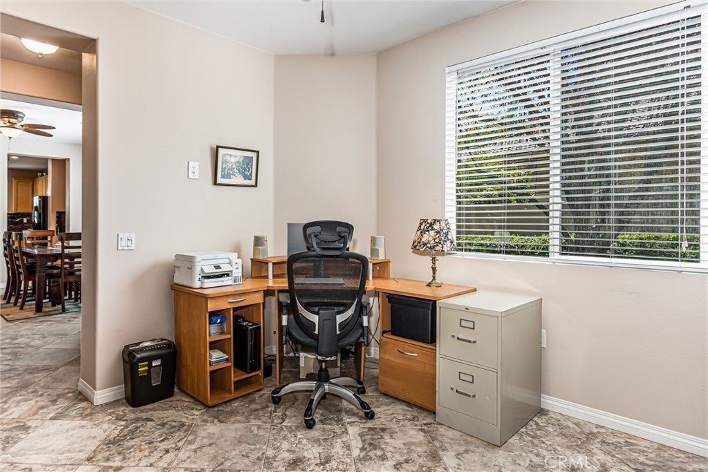 Resort-style living awaits in the prestigious K. Hovnanian Four Seasons at Beaumont, a premier gated 55+ community. This beautifully maintained home offers an open floor plan, granite kitchen counter with center island, private backyard with fruit trees and grapevines, and a large Alumawood patio with mountain and walking-path views. Living in Four Seasons means embracing an active and vibrant lifestyle. Residents enjoy a fitness center and spa, indoor and outdoor pools, tennis, pickleball, bocce ball, scenic walking trails, and a wide variety of social activities including cards, bridge, and canasta. Stop by the community bistro, enjoy a movie at the theater, or treat yourself at the on-site salon. All this and much more awaits you in this exceptional community. This well-appointed home features an open and inviting floor plan designed for comfort and easy living. Tile flooring throughout most of the home—except the bedrooms—offers both beauty and easy maintenance. Ceiling fans throughout help keep the home comfortable year-round. The spacious kitchen features beautiful granite countertops with a satin finish, an elegant backsplash, a large center island perfect for gathering, and abundant cabinet space. An additional office provides flexible space ideal for a home office, hobbies, or a cozy den. The light and airy primary bedroom offers a relaxing retreat, with an adjoining bath featuring an enlarged walk-in tile shower. Indoor laundry conveniently leads to the garage, which includes epoxy flooring and excellent storage including a ceiling rack. Enjoy low-maintenance living with front yard landscaping maintained by the HOA. The private backyard offers a large Alumawood patio, fruit trees, and grape vines, with views of the community walking path and surrounding mountains—perfect for relaxing or entertaining. This is more than a home — it’s an opportunity to enjoy the active, resort-style lifestyle that makes Four Seasons at Beaumont so special.