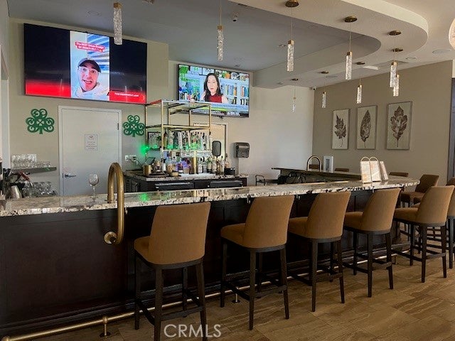 Breakfast Bar, Ceiling Fan(s), High Ceilings, Open Floorplan, Pantry, Recessed Lighting, All Bedrooms Down, Primary Suite, Coffered Ceiling(s), Solid Surface Counters