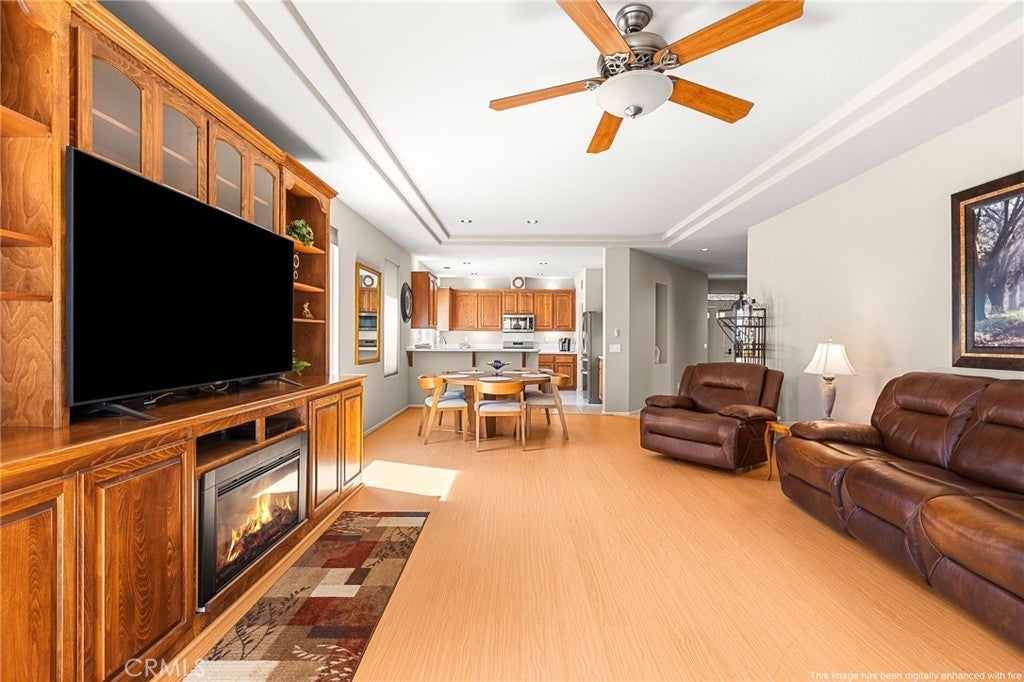 Beautifully Upgraded "Forsythia" in Sun Lakes, an Active 55+ Community. This Turnkey and highly desired model features 2 Spacious Bedrooms plus a Den/Office and 2 Bathrooms, Wide Hallways, Cofferred Ceiling in Great Room, Interior Individual Laundry Room with Large Pantry off of the Kitchen, Huge Walk-in Closet in Primary Bedroom, Sliders leading to Back Yard from Primary Bedroom and Great Room, Recessed Lighting, Oversized 2-Car Garage with Niche for Golf Cart! Upgrades include: Freshly Painted Inside and Out, Brand New Stainless Steel "Whirlpool" Appliances (5-Burner Gas Range, Refrigerator, Built-in Microwave and Dishwasher), Corian Kitchen Countertops, Wood Laminate and Ceramic Tiled Flooring thru-out, Upgraded Door Hardware thru-out, Built-in Entertainment Center w/ Fireplace in Great Room, Mirrored Wardrobe Doors, Newer Glass Tub Enclosure in Guest Bathroom, Brushed Nickel Faucets in both Bathrooms, Window Shades, Ceiling Fans (Great Room, Bedrooms and Den), Aluminum Patio Cover in Back Yard. Newer "LG" Washer and Dryer included. Sun Lakes Country Club is an Active 55+, 24-hour Guard-Gated Community with so much to offer.....Two Private 18-hole Golf Courses (Championship and Executive), Driving Range, Putting Greens, Pickleball Courts, Tennis Courts, Bocce, Table Tennis, 3 Clubhouses, 3 Pools/Spas with one indoors, 3 Gyms, 2 Restaurants, Full Bar with Newly Expanded and Remodeled Lounge, Veranda, Craft Room w/ Kiln, Ball Room, Libraries and over 70 Clubs to join for those interested. Live entertainment most Friday and Saturday nights. INTERNET AND CABLE TV INCLUDED WITH HOA DUES. Close to Freeway, Shopping, Restaurants, Hospitals and Casinos. Living here is truly like living in a Resort!!!
