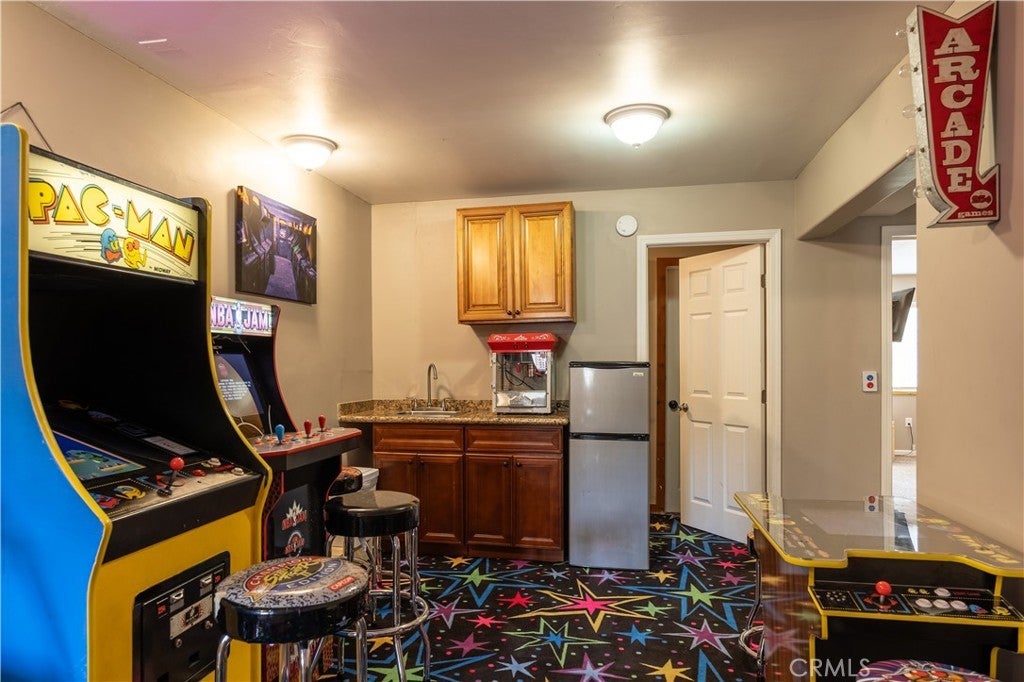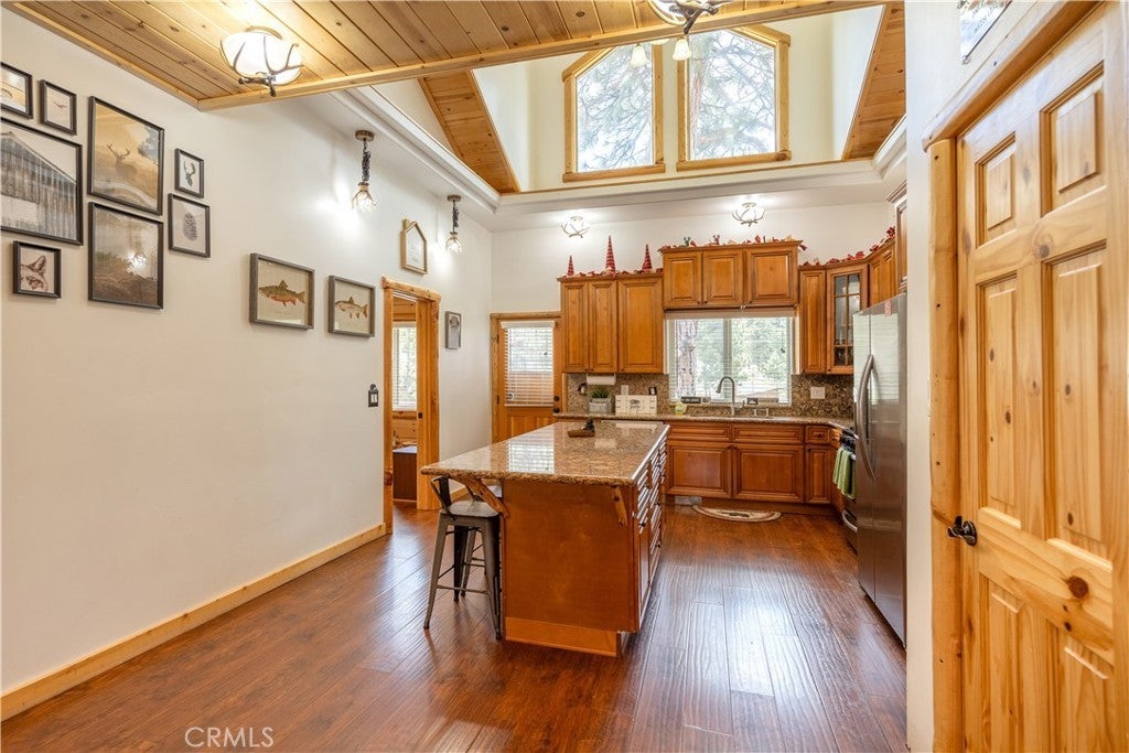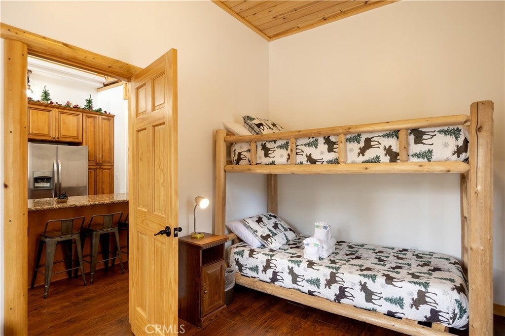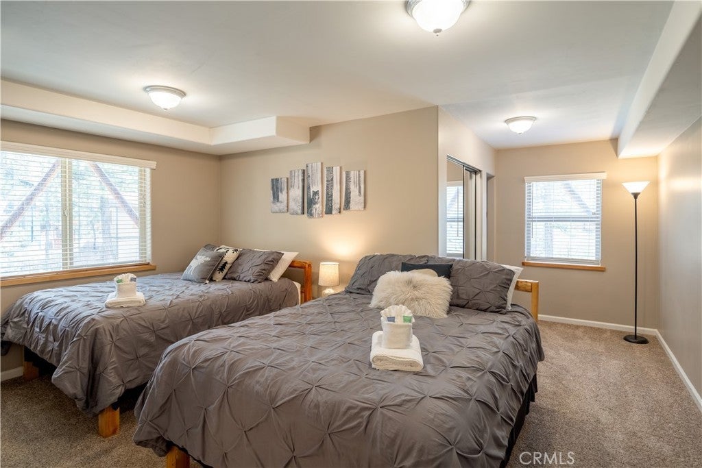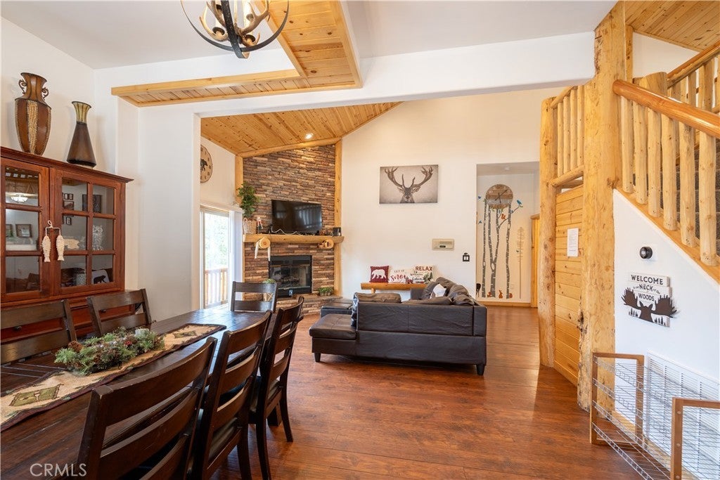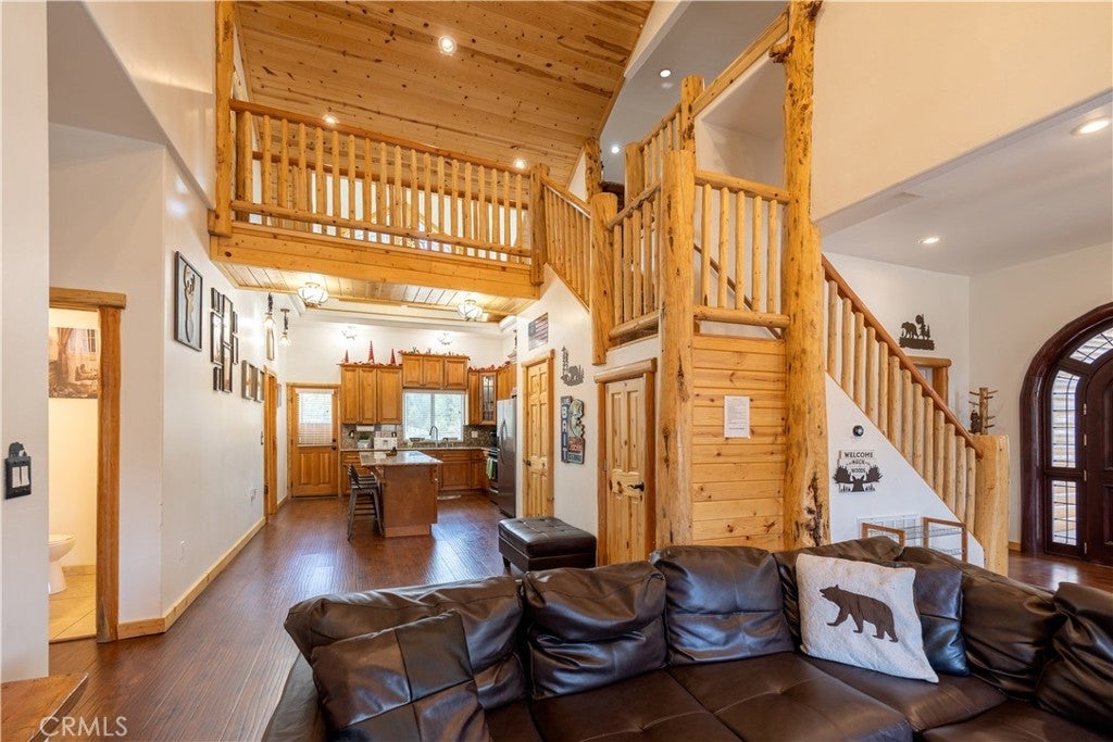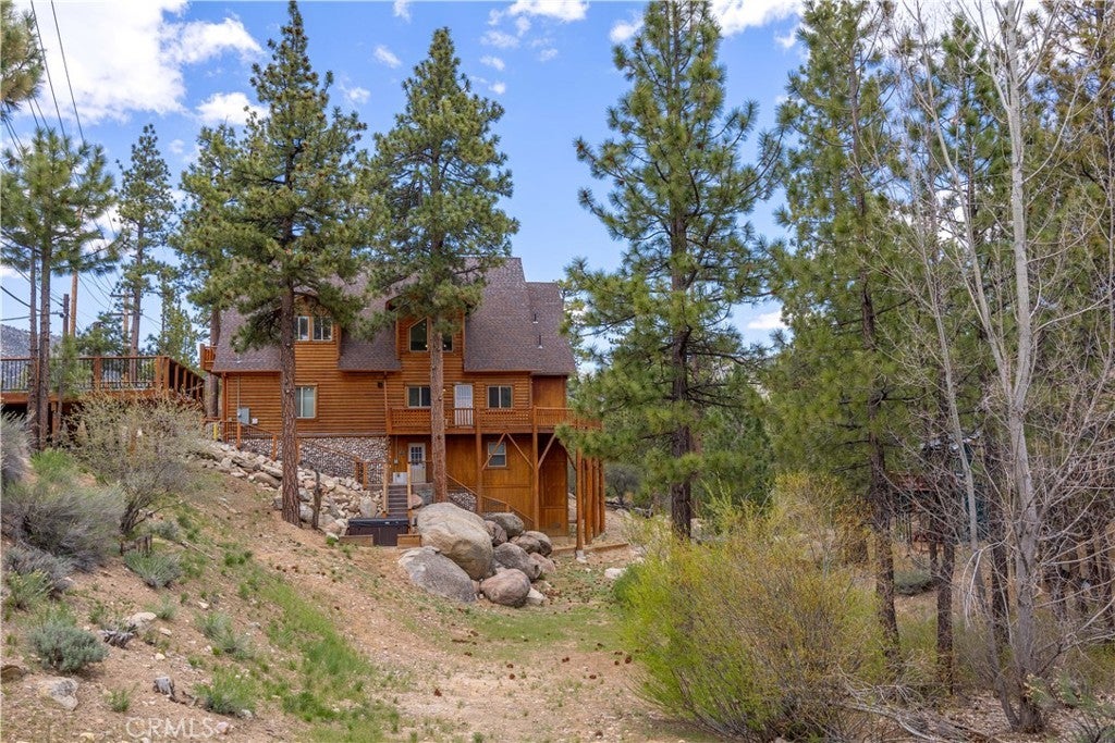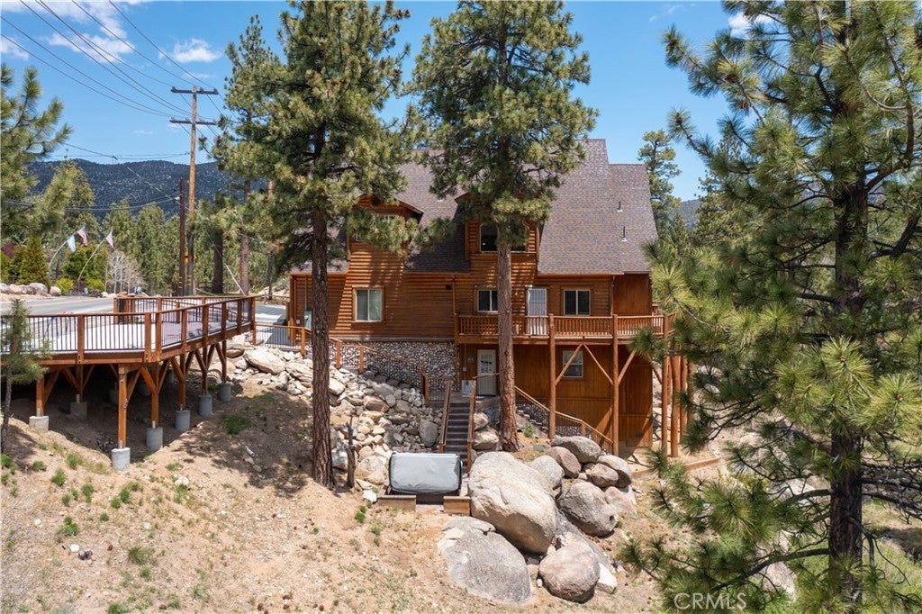 ***Amazing value, the neighboring lot is included in the sale for a future build or just additional yard space on a 10,000 sq ft lot for a combined lot total of 17,000+*** Escape to Five Bears Den, the ultimate mountain log cabin retreat in Big Bear! This impressive 6-bedroom cabin spans 3326 square feet, offering a perfect getaway for vacations, group gatherings, or corporate retreats. Spanning three levels, the cabin is designed for optimal privacy, with two bedrooms on each floor, ensuring a perfect balance between shared moments and personal space. The main family room features an amazing rock fireplace, brand new sofa and rug, access to the main bedroom, along with multiple adjacent balconies offering stunning 180-degree views. The upper level boasts a wet bar and seating area, two bedrooms, a full bathroom, a separate nest thermostat and each room thoughtfully curated to reflect the mountain setting. The main living level has plenty of room for large gatherings. The lower level is an oasis of fun, with a game room featuring full-sized arcade games, a wet bar and fridge, and even a large storage room. This floor also offers two bedrooms and a full bathroom. Outside, the spacious grounds provide ample space for walks and conversations, while the wraparound redwood decks offer the perfect setting for relaxation and family gatherings. Immerse yourself in the brand-new hot tub surrounded by boulders and enjoy the serene beauty of the surroundings. The cabin also has these new improvements: New dishwasher, New tankless water heater for hot water on demand, 12 Queen size beds, New hot tub, Each bedroom with Smart TV, New Sofa, 4 New Exterior coats of wood stain, New driveway concrete and additional parking platform, New fence and gate for 2nd lot car access.