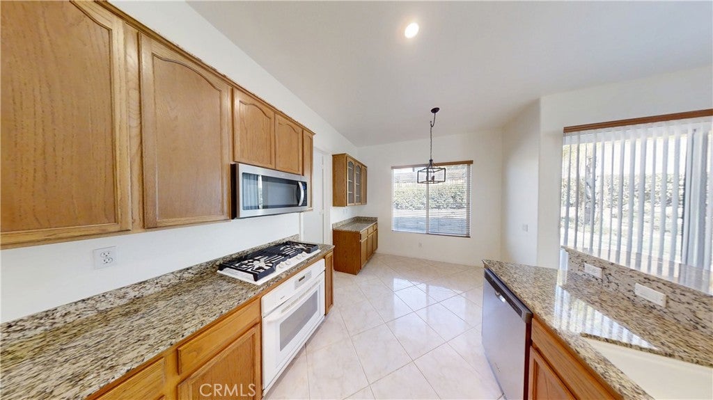 Welcome to this stunning 5-bedroom, 3-bathroom home located in the beautiful city of Yucaipa, CA. This property features a range of modern amenities that ensure a comfortable and convenient lifestyle. The kitchen is equipped with a dishwasher, microwave, and garbage disposal, along with a range for all your cooking needs. The stone countertops add a touch of elegance and durability. The home also features tile floors on the main level, adding to its sleek and clean design. As you move upstairs, you'll find plush carpeting in all bedrooms, providing a cozy and warm atmosphere. The home also comes with a central HVAC system, ensuring year-round comfort. For those chilly evenings, the fireplace will add warmth and a cozy ambiance. The property also includes W/D hookups for your laundry needs and an attached 2-car garage for secure parking or additional storage. This home is a perfect blend of style, comfort, and convenience.