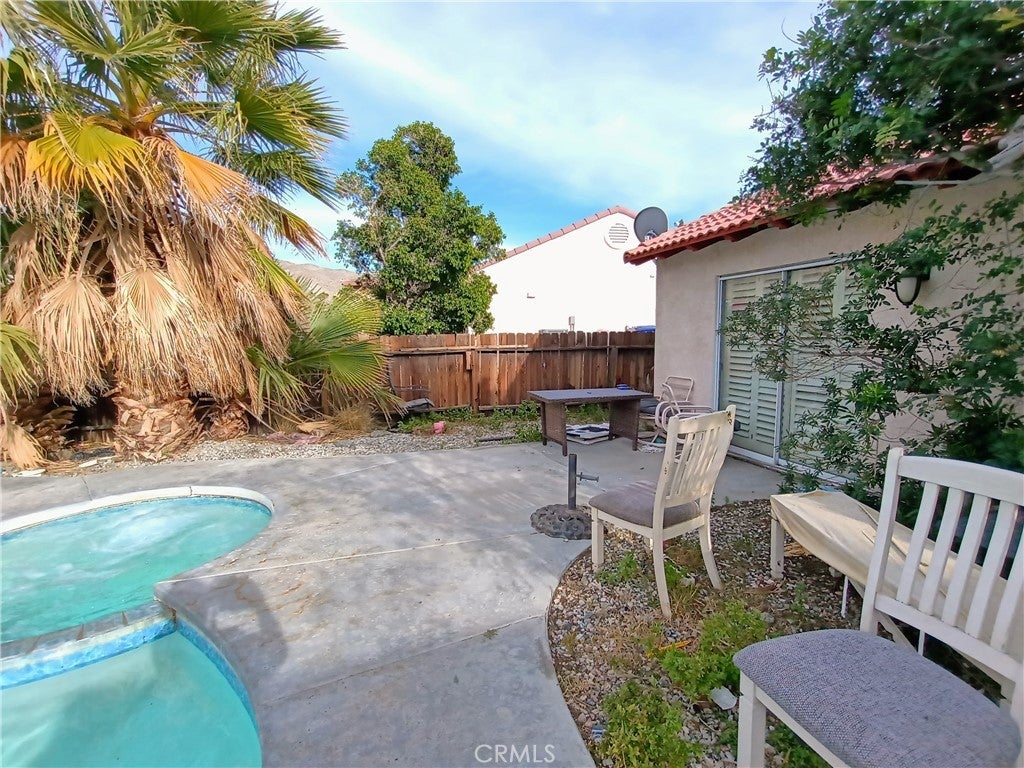 INVESTORS! 4 Pool & Spa Properties Available Great opportunity for investors looking to expand their portfolio. Beautiful 2BD w/ very lg den being used as a 3rd bd, home with pool, spa, and stunning mountain views in Desert Hot Springs. The U-shaped kitchen offers ample cabinetry and storage, while the primary suite features a walk-in shower and Jacuzzi tub. Spacious backyard with pool, spa, and an open roofed pergolas & plenty of room for entertaining. Pool equipment newer, AC 4 yr old. Features include tile and wood plank flooring, plantation shutters, ceiling fans, fireplace, large den, and an extra-large walk-in pantry/laundry room. Additional highlights include a 2-car garage with built-in cabinets and a convenient location near Mission Lakes Blvd. Currently rented through October 2026, making it an excellent income-producing investment. Seller would prefer to sell all 4 properties together if possible. Also available: 10111 Cactus Dr. and 66176 Desert View Rd, 65940 5th St, all in Desert Hot Springs. Subject to a 1031 exchange. Call for details.