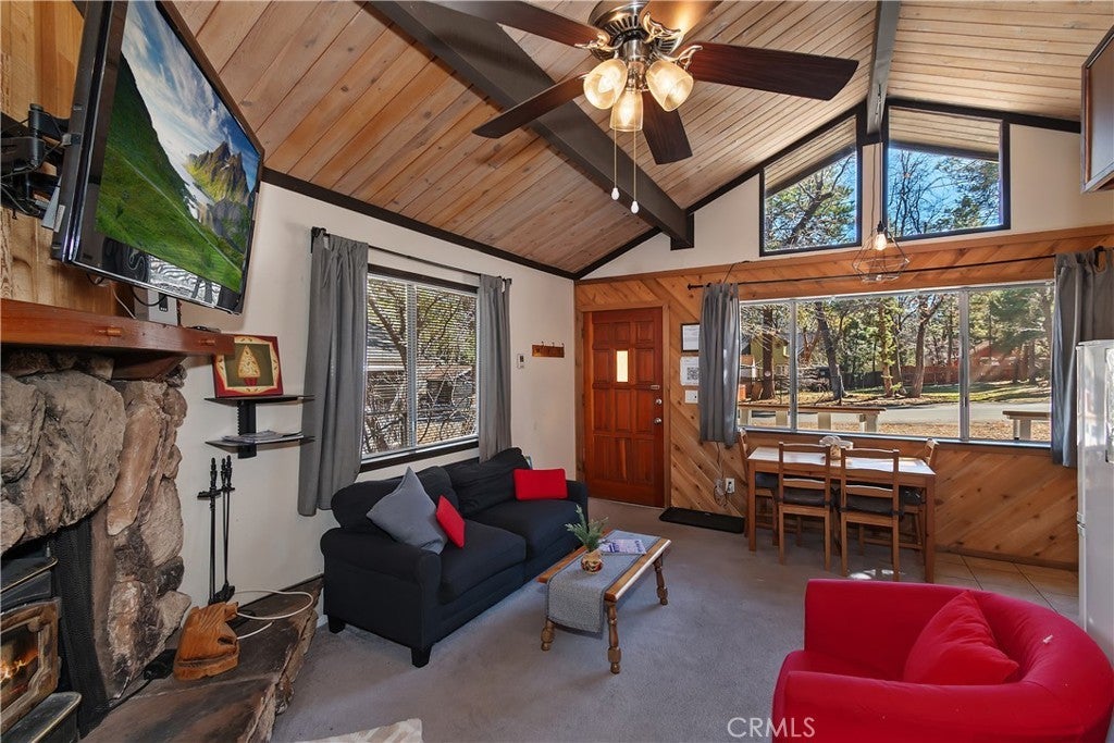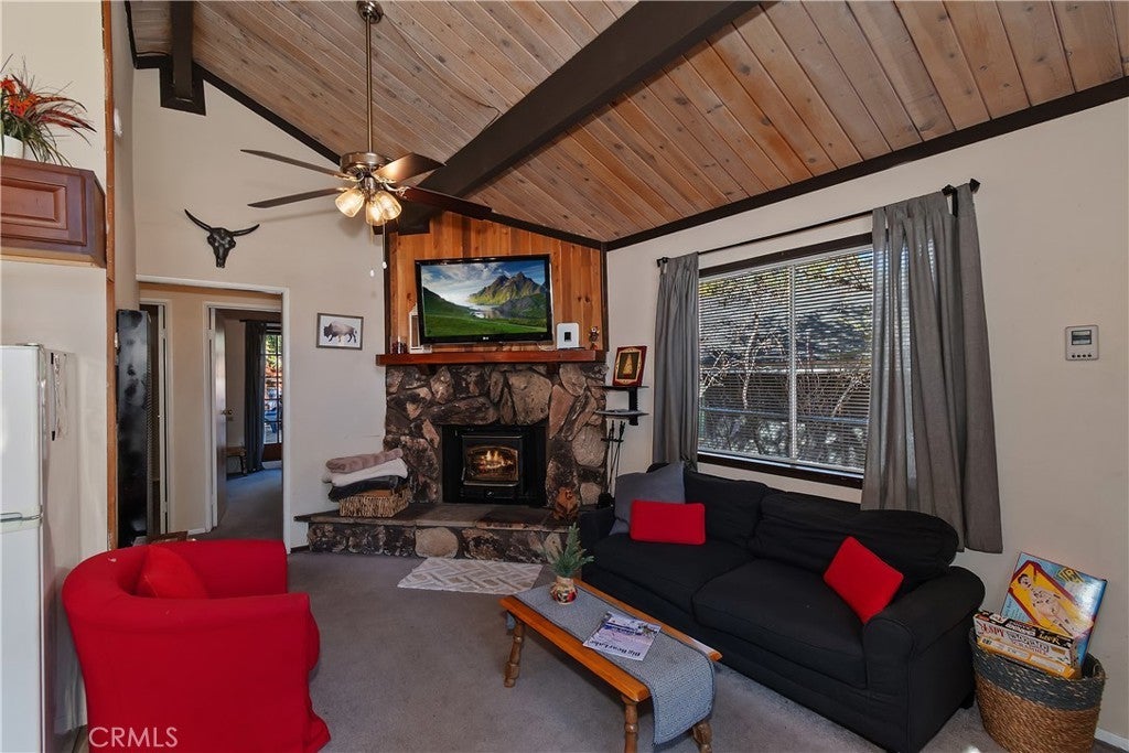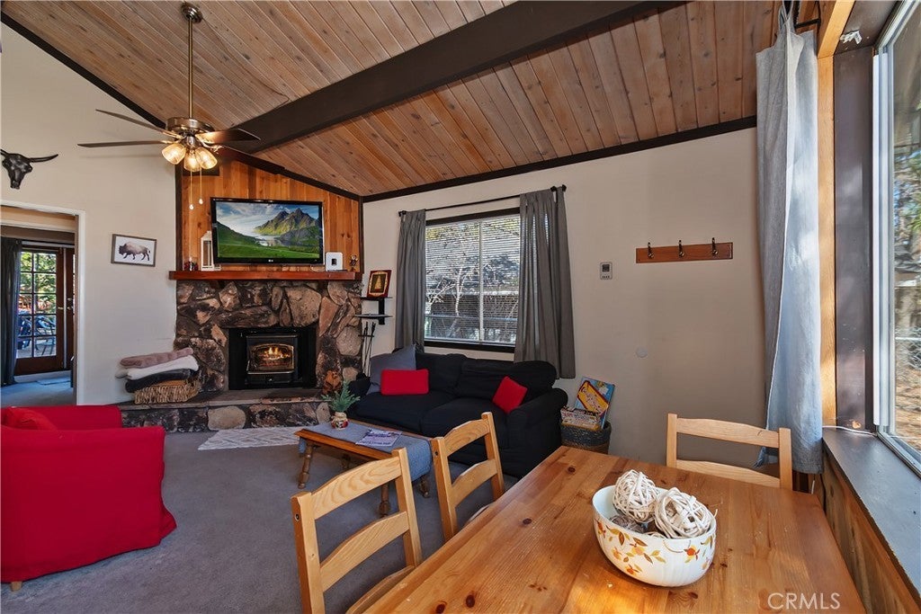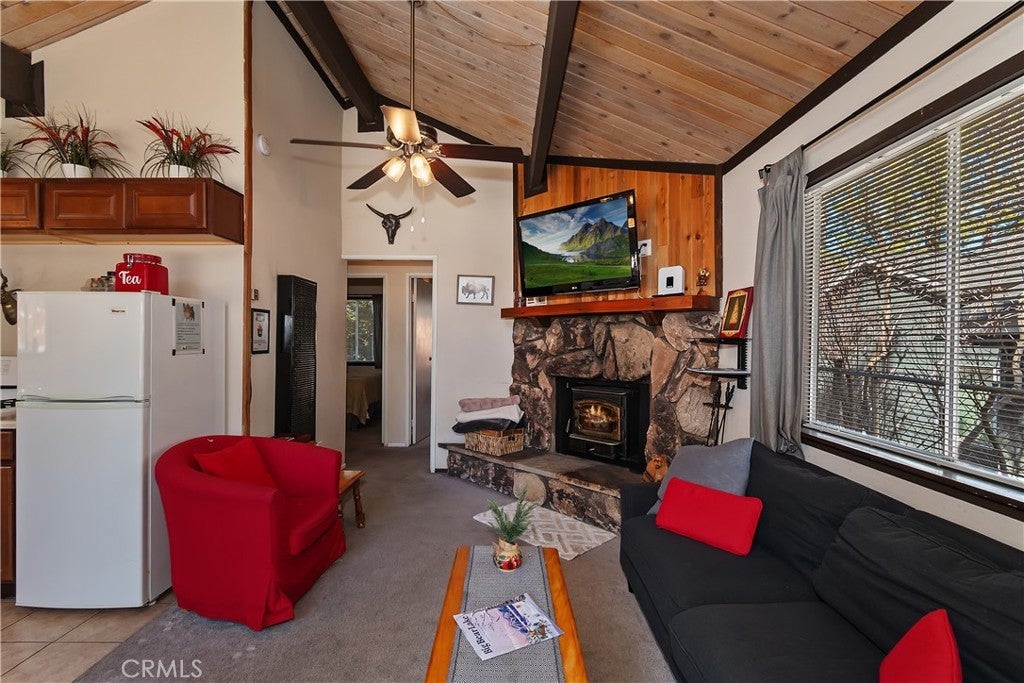 Welcome to this charming 2-bedroom, 1-bath mountain retreat nestled in the heart of Sugarloaf. Situated on a cozy 2,375 sq ft lot, this delightful home offers the perfect blend of comfort, charm, and convenience. Step inside to find a thoughtfully designed kitchen featuring tile flooring, beautiful cabinetry, and a convenient stackable washer and dryer. The inviting living room creates a warm and cozy atmosphere, perfect for relaxing after a day of adventure—whether you're enjoying your favorite show or warming up by the fireplace on chilly mountain evenings. Step outside and discover an outdoor space made for relaxation and entertaining. The expansive backyard features a large deck ideal for stargazing, hosting friends, or simply unwinding under the peaceful mountain sky. Whether it's morning coffee in the crisp alpine air or quiet evenings under the stars, this backyard retreat will quickly become a favorite. This home also comes fully furnished, making it move-in ready and easy to start enjoying right away. Conveniently located just 15 minutes from town for shopping, dining, and entertainment, and with quick access to Highway 38, getting in and out of the mountains is simple and convenient. Whether you're looking for a weekend getaway or a cozy full-time home, this adorable Sugarloaf gem offers the perfect opportunity to enjoy mountain living.