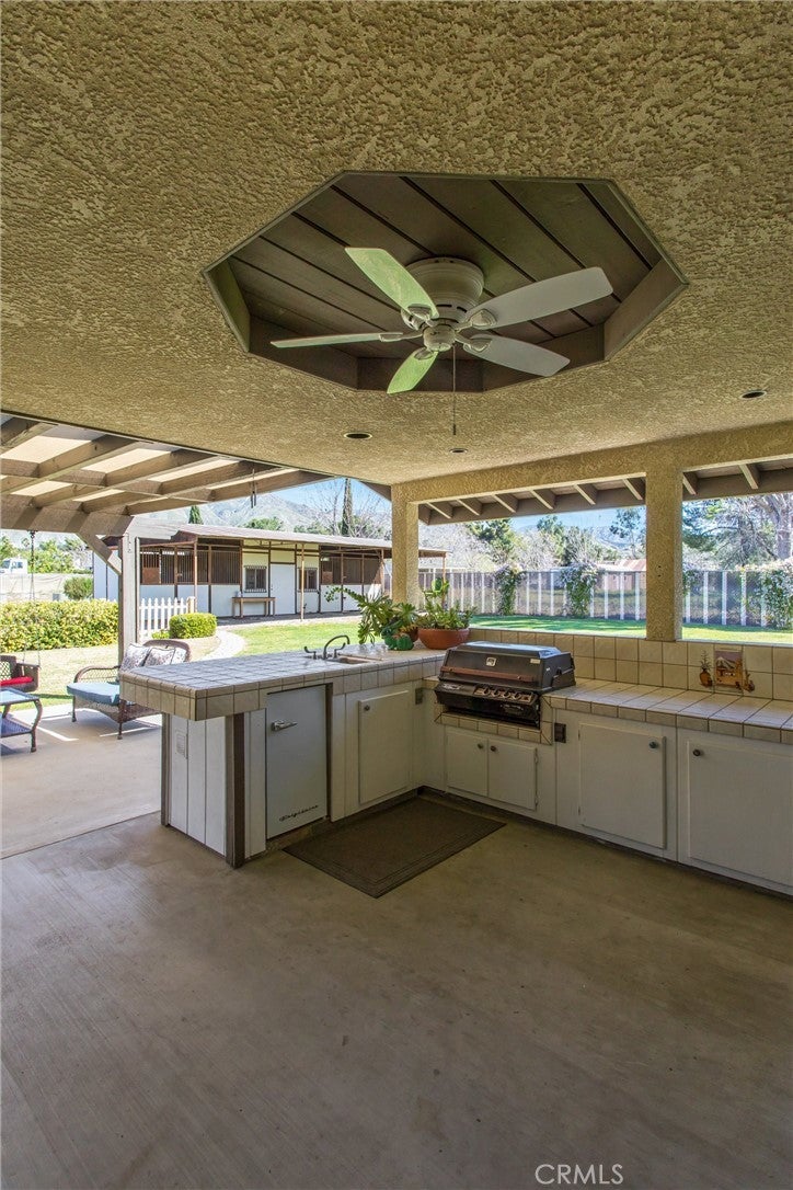 Horse lovers, car enthusiasts, and those craving space and versatility—welcome home. This nearly one-acre property offers rare multi-use potential with horse stables, a five-car drive-through garage, and a beautifully updated single-story home. Thoughtfully designed, this custom-built 3-bedroom, 3-bath, approximately 2,300 sq ft home features an updated kitchen, a spacious great room, and a flexible office or workshop space. Light-filled interiors and modern updates create a clean, comfortable, move-in ready environment ideal for both everyday living and entertaining. The primary suite is a private retreat, complete with his-and-hers closets, dual sinks, a walk-in shower, and a linen closet. Outdoors, the lifestyle truly comes to life with a beautifully landscaped yard, raised garden beds, and a covered patio with an outdoor kitchen—perfect for relaxing or hosting, all framed by lush greenery and mountain views. Equestrian amenities include three horse stalls and ample space for a corral or riding area, offering the rare ability to keep animals on your own property. The five-car drive-through garage provides exceptional flexibility for car collectors, RV storage, equipment, or even a home-based business. Properties that offer this combination of land, functionality, and lifestyle are hard to find, making this an ideal opportunity for those seeking a small homestead, space for hobbies, or simply room to live the way they want.
