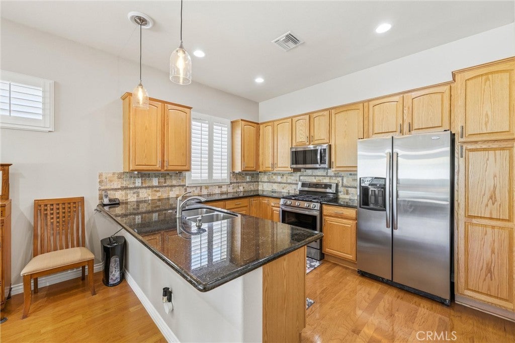 Lovely 2 Bedroom, 2 bath plus den Pave model situated in the highly desirable Sun Lakes Country Club, 55+ gated community with 24-hour guard gated. This home has a thoughtfully designed floor plan with exceptional resort-style living. The home features a 3rd room which can be used as a bonus room/den or hobby craft room, beautiful oak flooring and a new chandelier in the entryway. The exterior has been painted in 2025, using Sun Lake's approved Sherwin Williams colors. HVAC 3 ton replacement in 2022 using a Lennox model known for a superior high efficiency compressor and installed on a new concrete pad, in addition, a Lennox efficient 60,000 BTU two stage variable speed blower horizontal furnace installed in the attic and is extremely effective in cooling and heating quickly and quietly. The kitchen shines with stainless steel appliances, black granite counter tops, and a breakfast bar with new pendant lighting. Fireplace in living room area, features granite molding which matches and is complementary to granite in both bathrooms. Living room area looks out to neat and clean patio area, with easy maintenance. Sun Lakes Country Club boasts exceptional amenities such as: two 18-hole golf courses & driving range, 3 clubhouses with restaurants and a beautiful Grand Ballroom. Stay very active and enjoy both indoor and outdoor swimming pools, tennis, pickleball and bocce ball courts, as well as a fitness center, library and Pro Golf Shop. Enjoy connecting with others with dozens of clubs and engaging fun activities along with many social events. Conveniently located close to shopping, dining, medical facilities, banks and freeways. Schedule your private tour today!