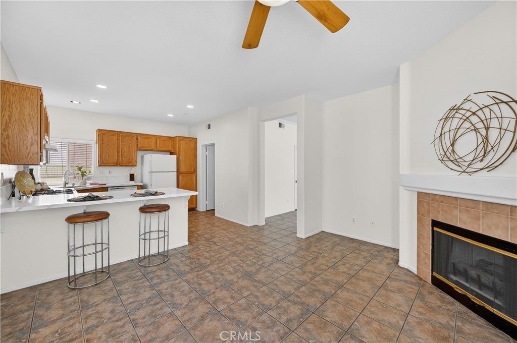 Welcome Home to 4 bedrooms and a spacious lot located in the highly desirable Sycamore Highlands in Canyon Crest! The great room features an eat-in kitchen with bar seating at the new quartz countertops. The kitchen has recessed lighting and a new sink and faucet. Entering through the front door brings you into a large room that can be used as a dining room for large gatherings or a second cozy living room, or both for the creative designer! Upstairs are four bedrooms offering ample space for a home office, craft room, guest bedroom or a special design all your own. The primary bedroom features an en suite bathroom with an oversized tub and a walk in closet. The generously sized back yard has ample room for pets, gardening, and possibly a pool or ADU. All of this is conveniently located near the great restaurants and stores at the Canyon Crest Towne Centre, just two blocks from hiking and biking trails at the Sycamore Canyon Wilderness Parks, gorgeous sunset views from Sycamore Highlands Park and is commuter friendly with easy freeway access to the 215, 60 and 91. See the Matterport Virtual Walkthrough.