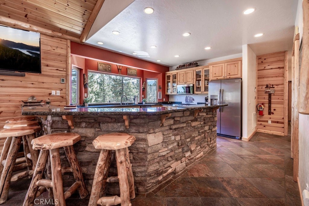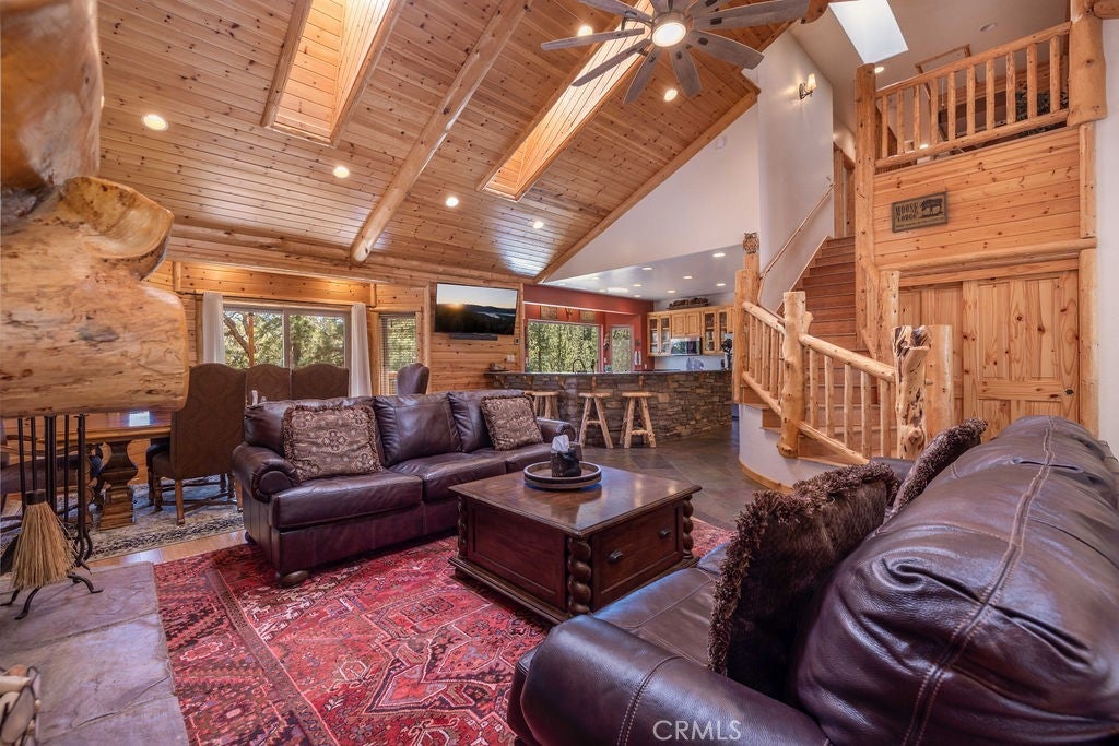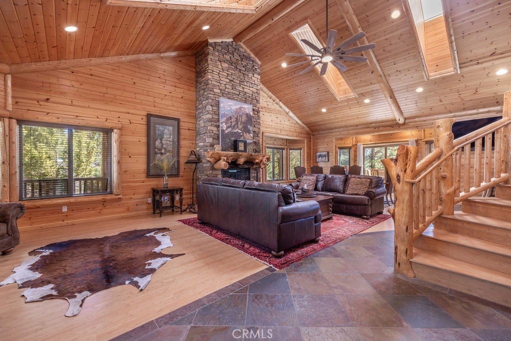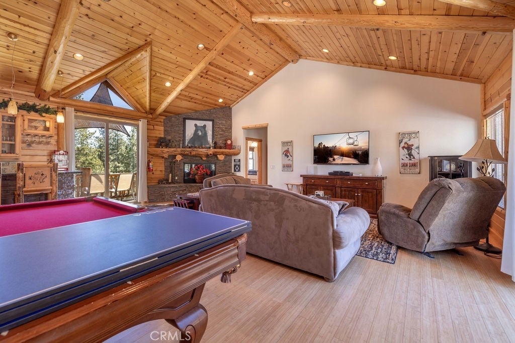 Pride of ownership shines throughout this well-maintained 5-bedroom home in Meadowbrook Estates, offering a spacious and light-filled floor plan. You’ll love the grand living room with vaulted ceilings, the highly functional and upgraded 3-car garage, and seamless indoor-outdoor living ideal for both relaxing and entertaining. Situated on an expansive 1.5-acre parcel, the property offers added privacy, space, and a true sense of mountain living. Another notable highlight is a large game room with a built-in bar, creating the perfect setup for hosting multiple families or gathering with friends after a day on the slopes. Set in one of Big Bear’s most sought-after neighborhoods, the property captures the true Meadowbrook lifestyle with a peaceful backyard enhanced by thoughtful landscaping, a newer deck with retractable shade, and a gas fire pit, perfect for enjoying evenings year-round. Recent quality upgrades include new appliances, updated bedroom flooring, a whole-house humidifier for added comfort, extensive improvements to the garage space, and real stone veneer on the exterior for timeless curb appeal. With its ideal setting, versatile layout for full-time or second-home living, and close proximity to the lake, trails, and town, this is a rare opportunity to own in one of Big Bear’s premier communities.