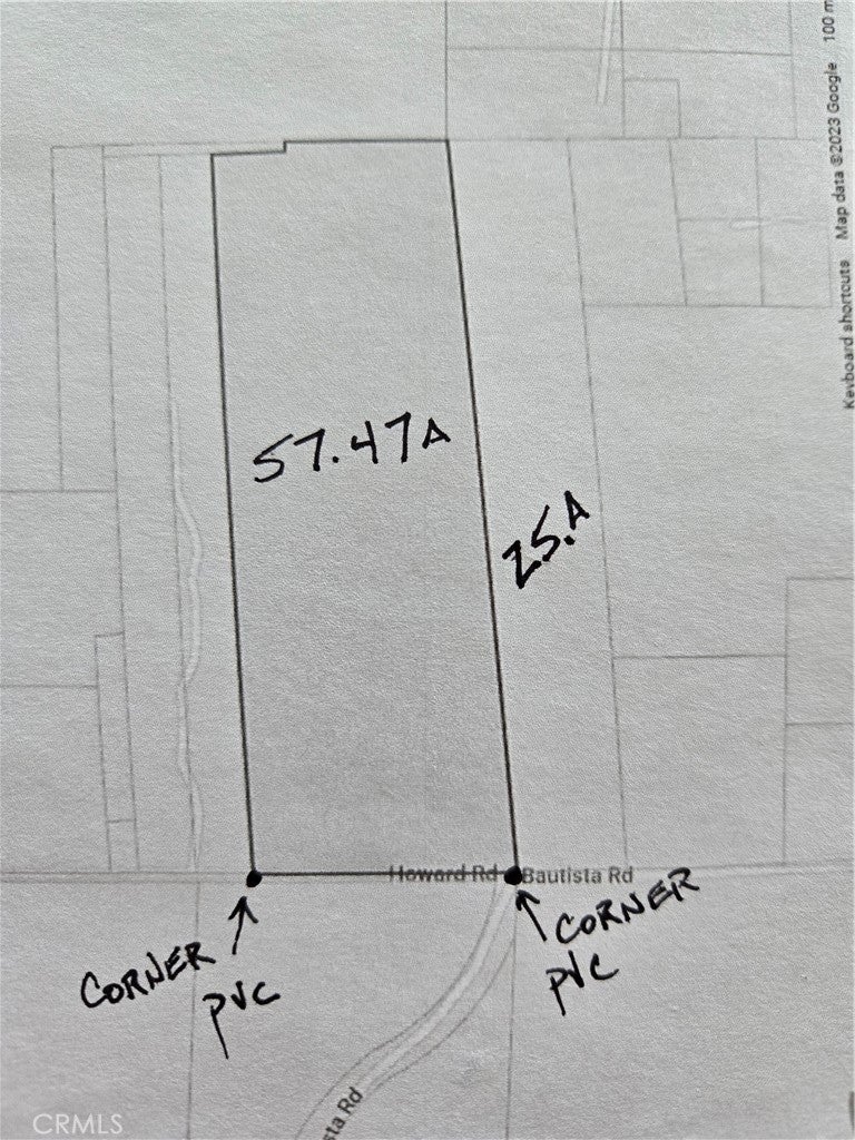 Rare 57.47-acre parcel in Anza, Riverside County for sale. Mostly flat and usable land with some cleared acreage, fencing and holding pens in place. Paved road (Bautista) nearly ends where parcel starts on Howard Road (dirt). Electricity at the road in front. This is a well and septic area. Horse and bike trails, ideal for horse ranch, farm, agriculture, vineyard, home development, zoned R-R. Check with County as to zoning and use. Close to the town of Anza, casino; near Temecula and Hemet, about an hour to Palm Desert! Hard-to-find acreage of this size at this price given location and usability; strong development potential.