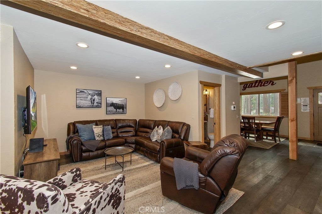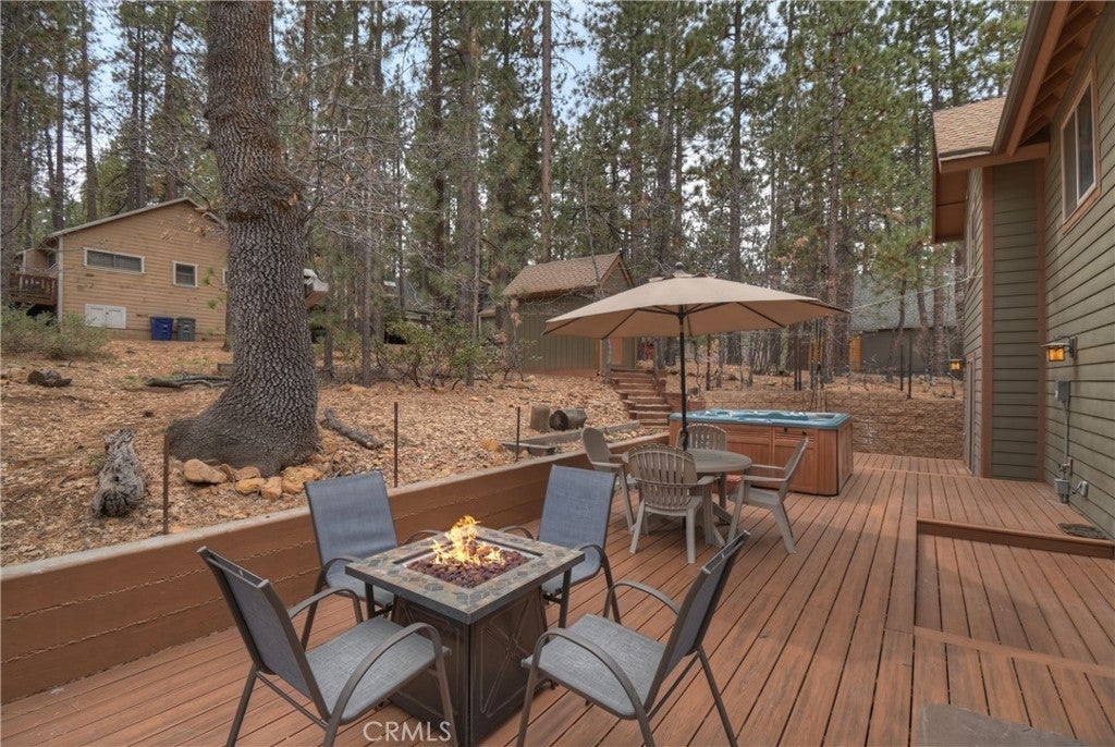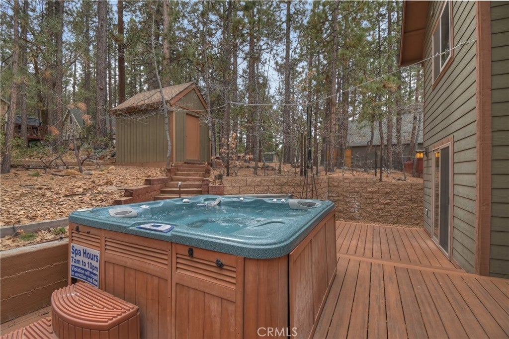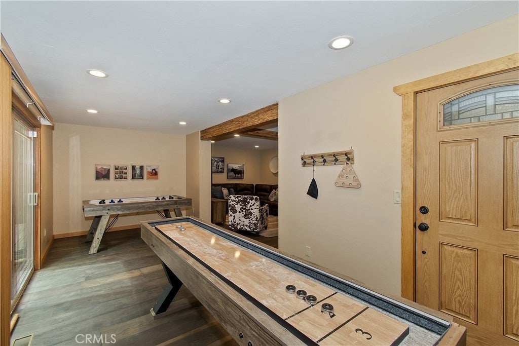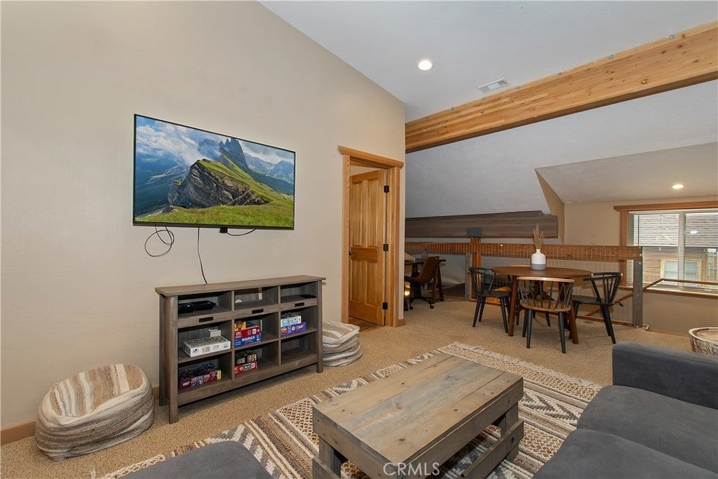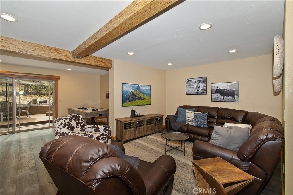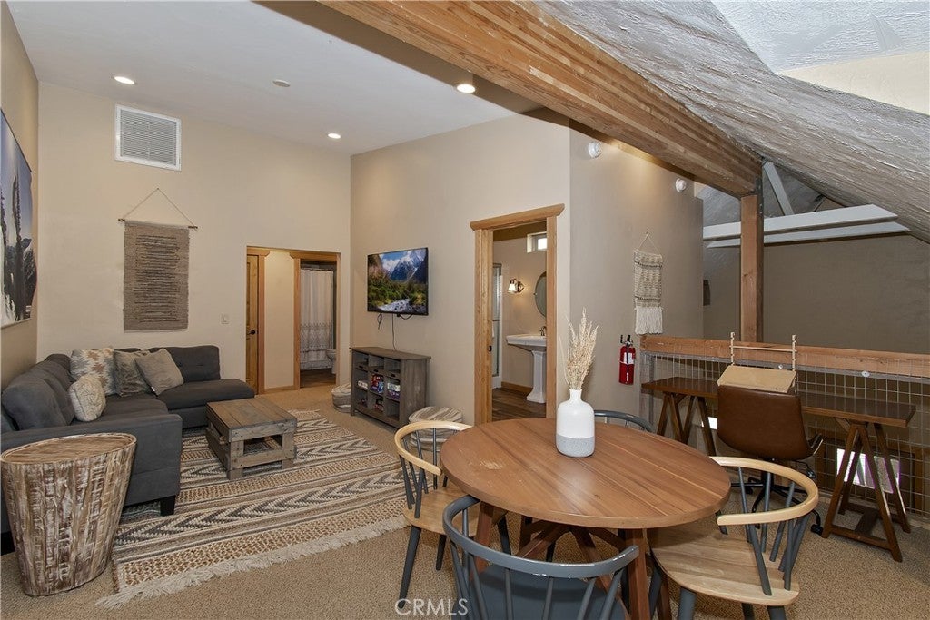 This home is for those that want a remodeled house with room to gather with all of their loved ones under one roof ~ As you enter you will love the high ceilings and native rock wood burning fireplace in the living room ~ To your right you have your large dining area for holiday meals with the family ~ The kitchen is absolutely gorgeous with it's, butcher block island, custom wood cabinets (with push to open drawers), granite countertops and stainless steel appliances ~ The main level also has your family room with wet bar, a game room, your master bedroom and bathroom and another 3/4 bathroom ~ On the upper level you have a large loft, 4 more bedrooms and 2 more bathrooms ~ In the backyard you have your large deck with hot tub and plenty of room for relaxing and entertaining ~ Walking distance to Snow Summit, Big Bear Lake and the Village ~ Centrally located while being on a quiet cul-de-sac with little to no traffic ~ This is the mountain escape you have been longing for!