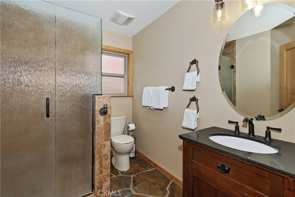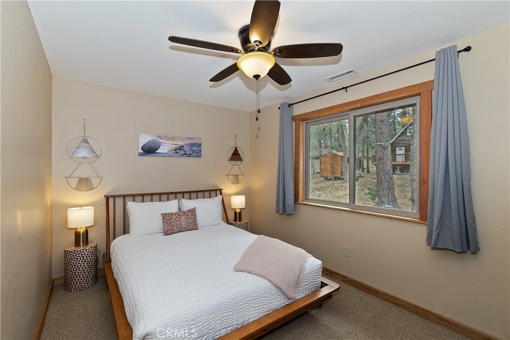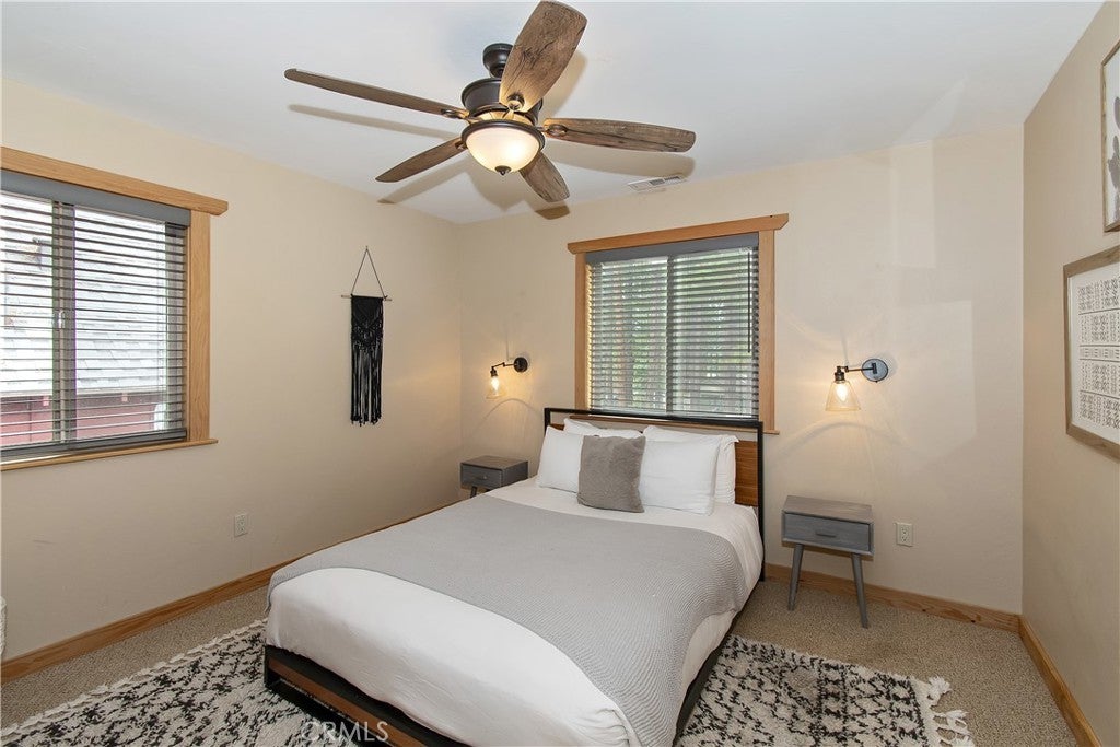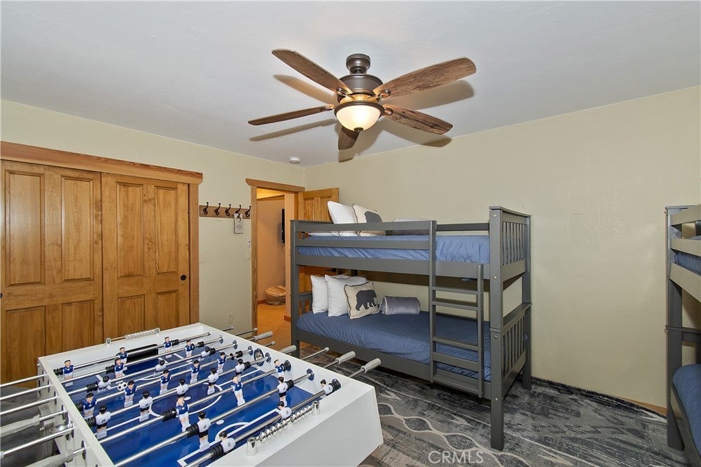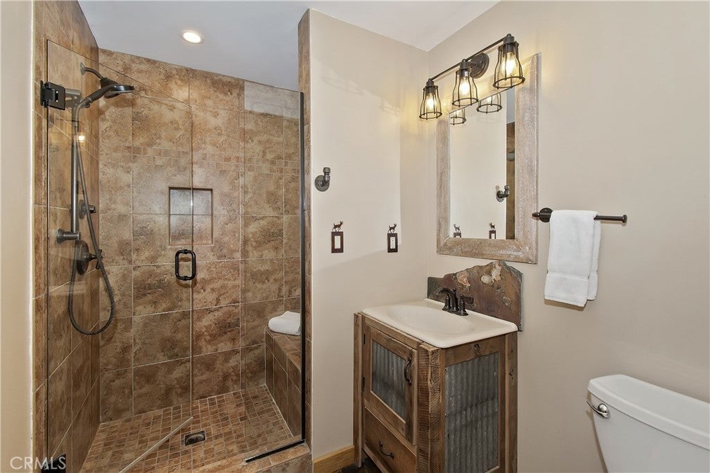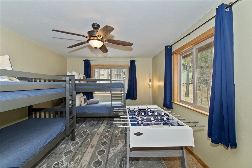 This home is for those that want a remodeled house with room to gather with all of their loved ones under one roof ~ As you enter you will love the high ceilings and native rock wood burning fireplace in the living room ~ To your right you have your large dining area for holiday meals with the family ~ The kitchen is absolutely gorgeous with it's, butcher block island, custom wood cabinets (with push to open drawers), granite countertops and stainless steel appliances ~ The main level also has your family room with wet bar, a game room, your master bedroom and bathroom and another 3/4 bathroom ~ On the upper level you have a large loft, 4 more bedrooms and 2 more bathrooms ~ In the backyard you have your large deck with hot tub and plenty of room for relaxing and entertaining ~ Walking distance to Snow Summit, Big Bear Lake and the Village ~ Centrally located while being on a quiet cul-de-sac with little to no traffic ~ This is the mountain escape you have been longing for!