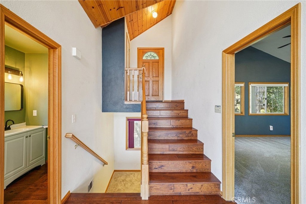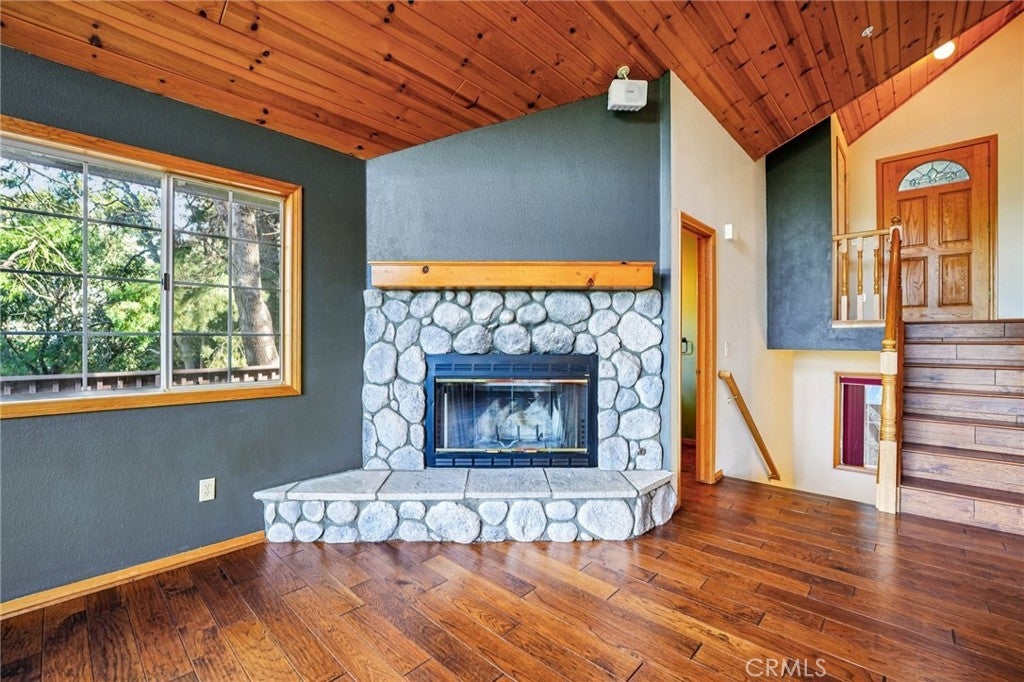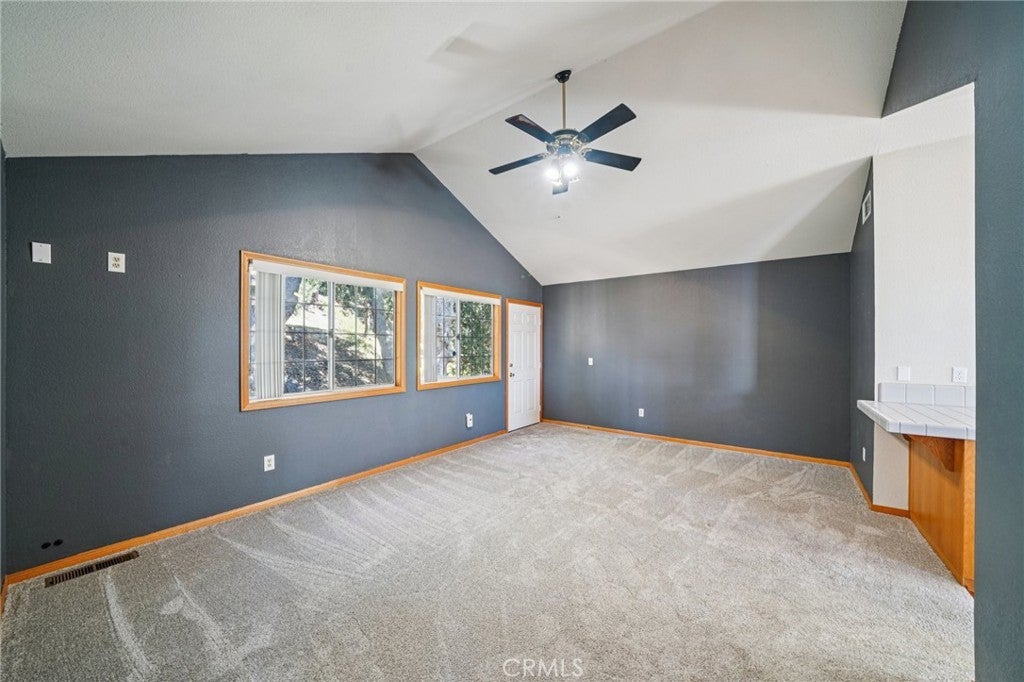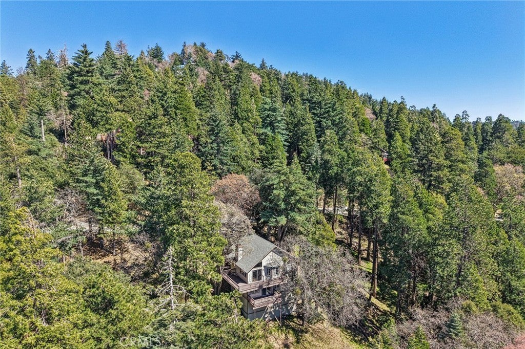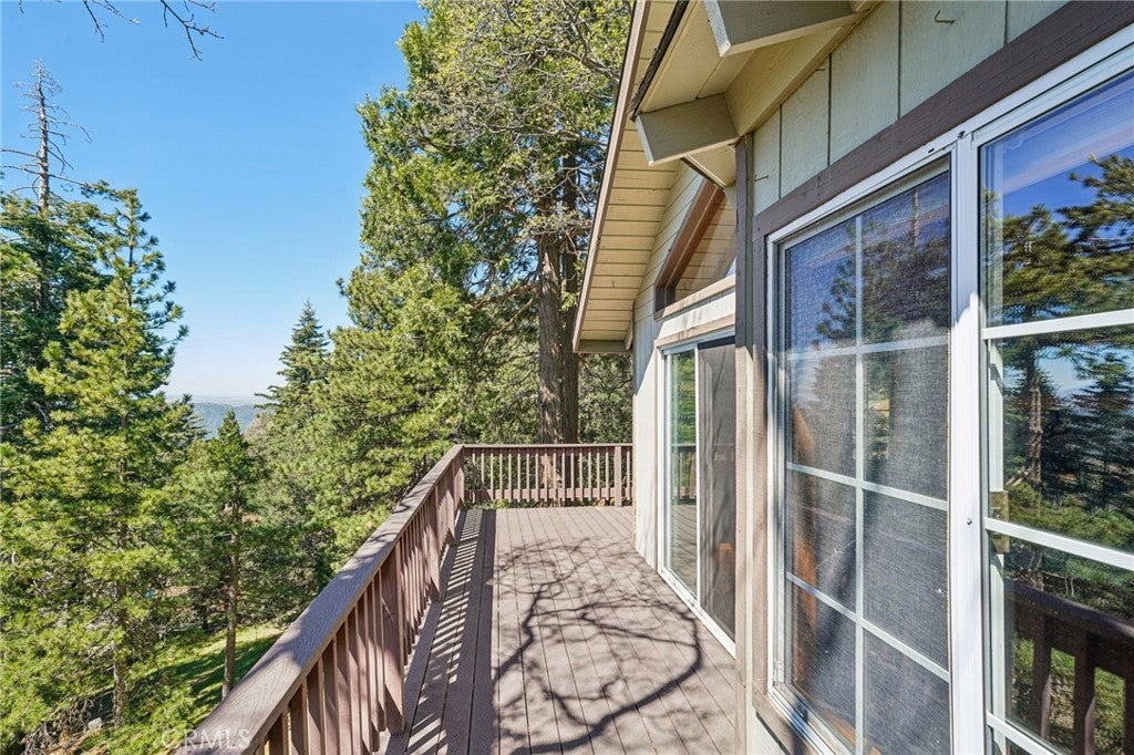 Perched to capture sweeping mountain-to-desert vistas, this Twin Peaks retreat pairs architectural character with everyday livability—offering a wide wrap-around deck, no HOA, and a county paved and maintained road for easy year-round access. Inside, the living experience unfolds beneath soaring vaulted ceilings with rich tongue-and-groove detail and wood flooring that grounds the space in warmth, while a built-in with mini fridge adds a subtle layer of entertaining convenience. The living room flows effortlessly to the expansive deck, already equipped with a gas line for outdoor grilling, creating a seamless indoor-outdoor rhythm framed by mature trees for privacy. At the heart of the home, the kitchen is both functional and inviting, opening to the living room and bonus room and centered around a large arched window that draws in natural light and distant views, complemented by a deep pantry with built-ins and dual breakfast bars designed for connection and flexibility. The primary suite offers a more private retreat, complete with a spa tub, a generously sized closet with built-ins, and its own secluded deck. Beneath it all, a substantial unfinished build-up area presents a rare opportunity for expansion, creative use, or additional storage—an adaptable canvas that adds long-term value to an already compelling mountain property.