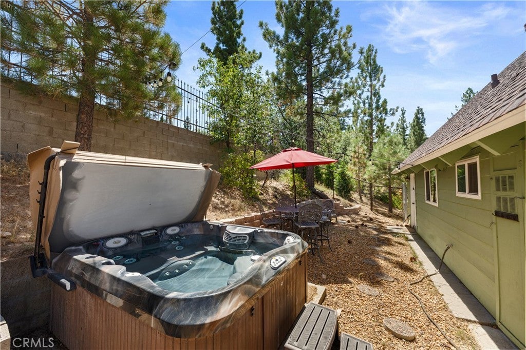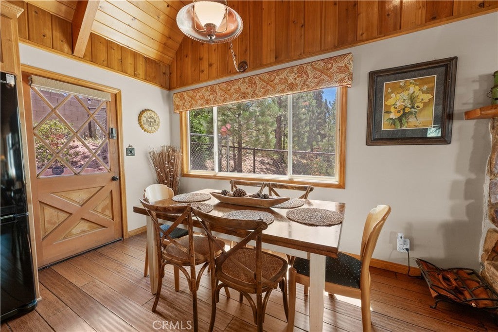 Charming Cabin in a Prime Location! Located near dining, shopping, and year-round activities, this inviting cabin blends rustic charm with thoughtful updates. Inside, you’ll find a warm neutral color palette, dual-pane windows, wood trim, and blinds. The kitchen features beautiful hickory cabinets with self-closing drawers, black appliances, butcher block counters, mosaic tile backsplash, farmhouse sink, and a dining area. The living room boasts vaulted open-beam tongue-and-groove ceilings, a stone fireplace with efficient wood-burning insert, and durable bamboo flooring, which stands up to snowy boots well. The bathroom is beautifully updated with ceramic tile, a stone countertop, and set up for heated floors. Two main-level bedrooms showcase tongue-and-groove ceilings, mirrored closets, individual wall heaters, and carpet. The loft-style third bedroom offers built-in storage, large windows, and a ceiling fan. The separate garage includes a washer & dryer area and plenty of storage. Outside, the large lot provides ample parking, mature trees, a fenced backyard, and a spa for relaxing after a day of mountain adventures. This cabin is the perfect blend of mountain character and modern comfort—ready for your weekend getaway or full-time retreat!
