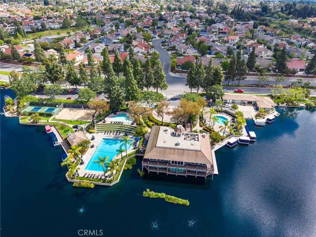 Welcome to 5370 Via Morena, a rare and distinguished waterfront sanctuary located in the heart of Yorba Linda’s prestigious East Lake Village. This 3-bedroom, 3-bathroom residence offers a unique level of privacy as one of the very few homes on the lake that is entirely stand-alone, featuring a downstairs bedroom and no common walls with any neighbors. The interior is defined by an elegant, light-filled floor plan. The layout includes a large living room, a bright kitchen with dining area, and a versatile downstairs bedroom currently utilized as a home office. Upstairs, the primary suite serves as a true retreat, complete with a cozy fireplace, walk-in closet, and direct access to a private balcony overlooking the lake. The exterior of the home is a true entertainer’s dream, designed to maximize the resort lifestyle of East Lake. Step outside to an expansive backyard featuring high-end hardscaping, professional landscaping, and a built-in BBQ. The centerpiece of the outdoor space is a custom in-ground jacuzzi with a tranquil waterfall feature, perfect for unwinding under the stars. The property includes its own private dock, granting you direct access to the lake right from your backyard for fishing or peaceful sunset boat cruises. Living at this address provides more than just a beautiful home; it offers access to the world-class amenities of the East Lake Village Community Association. Residents enjoy multiple swimming pools; including a Junior Olympic-sized pool, a 10,000-square-foot clubhouse, a state-of-the-art fitness center, and courts for tennis, basketball, and sand volleyball. Between the private luxury of your standalone lakefront lot and the vibrant community activities like the famous annual holiday boat parade, this home represents the pinnacle of Yorba Linda living.