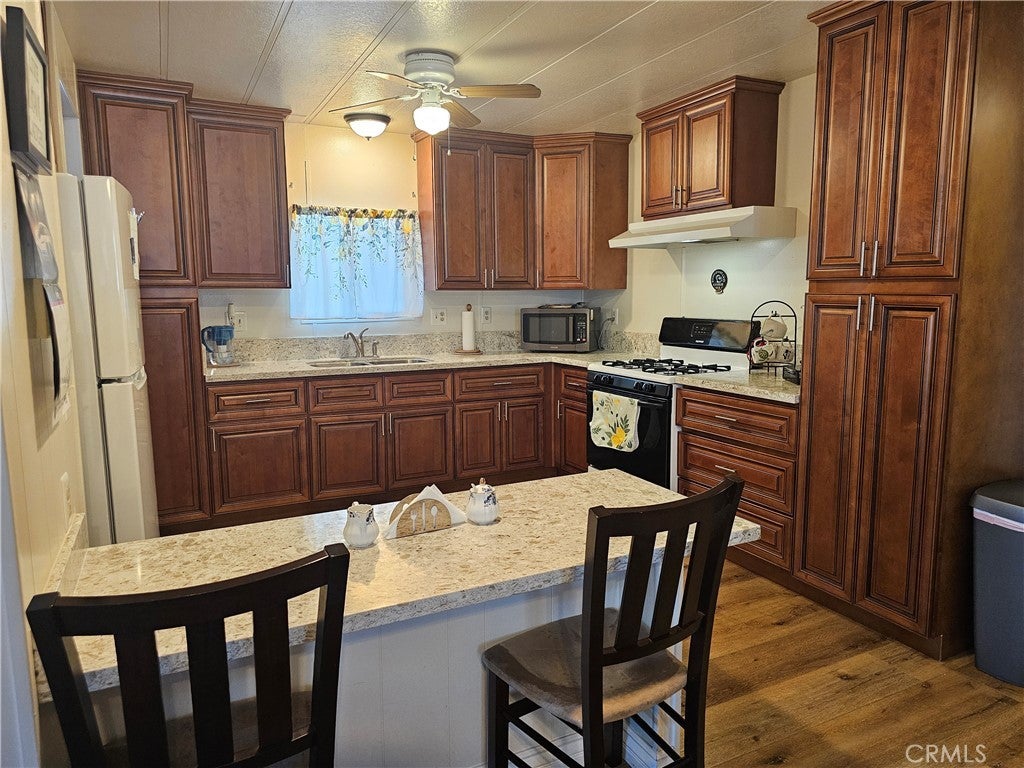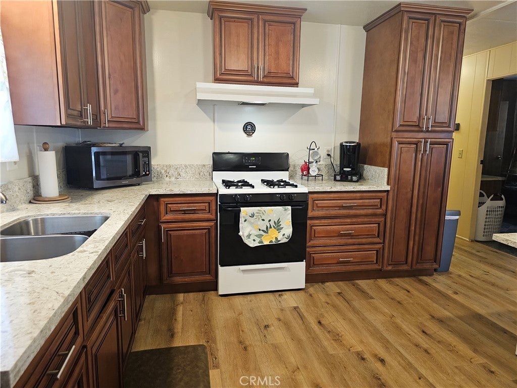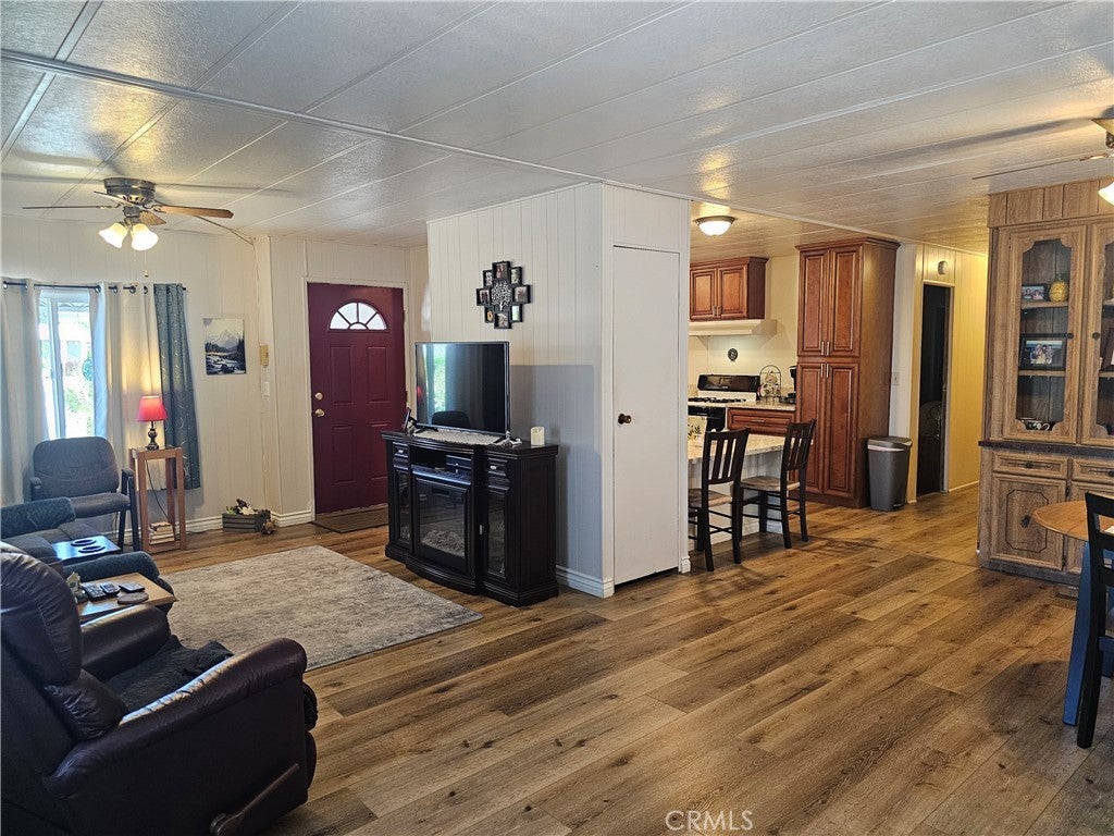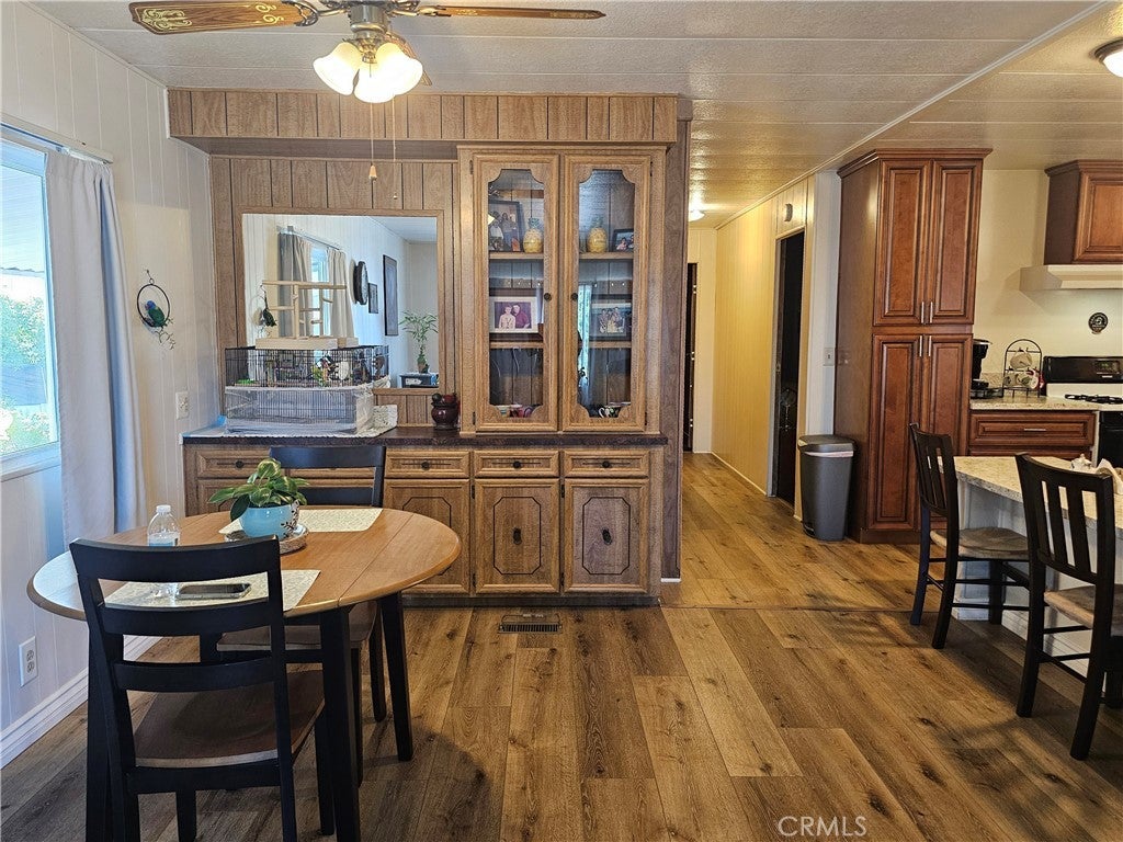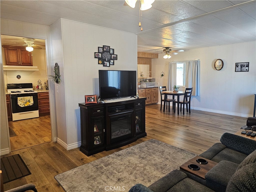 This is a lovely home that has many upgrades throughout in a family park for all ages. There is 2 bedrooms and 2 bathrooms and an open floor plan for your living room, dining room and kitchen with over 1100 square feet. The kitchen has upgraded cabinets and counters and the bathroom vanities are updated. There has been earthquake bracing upgrades as well. There is a good sized carport, a patio area, a shed and cute landscaped back yard and fenced area.