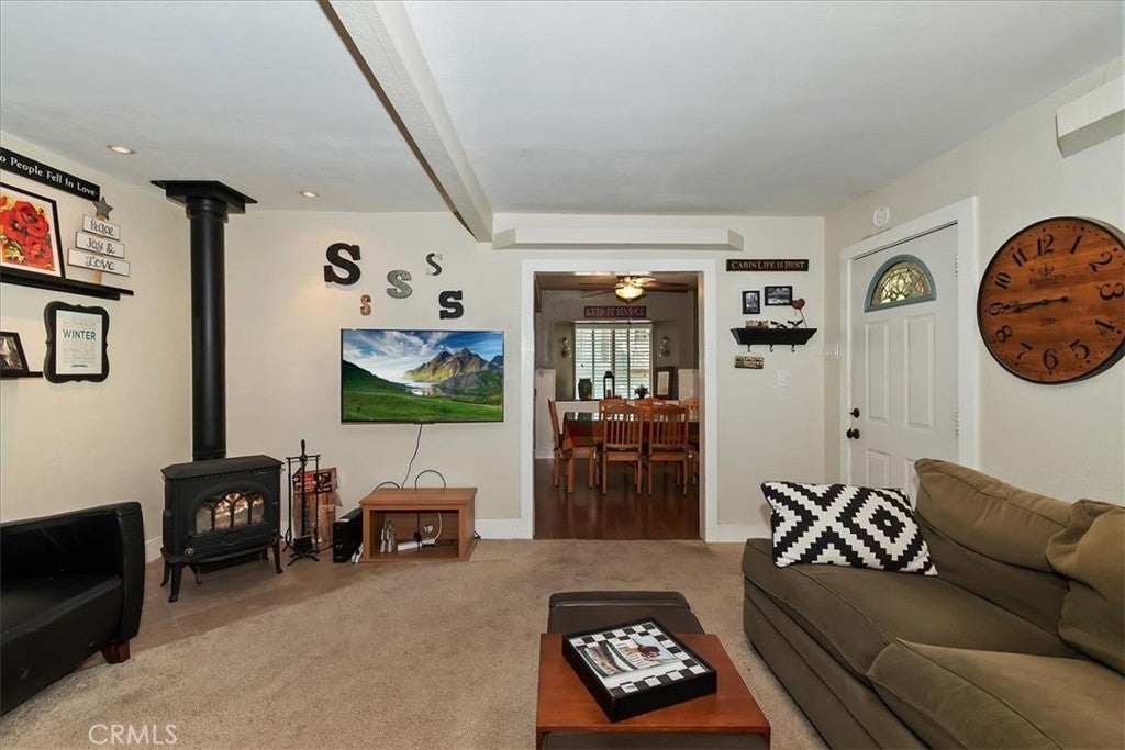 Welcome to Crestline! Situated on a large, fenced lot is this lovely 3-bedroom, 3 bath home. The first level has the living room, a good-sized kitchen and dining room, the laundry room, 2 bedrooms, a bonus room and 2 bathrooms. You could easily live on this main floor. The upper level has a spacious primary bedroom with ensuite bathroom. You will also find a walk-in closet and walk in storage area on this level. The lower level has a workshop, a small office area, utilities and lots of storage space. Easy near level parking and only about 10 steps to the front floor. Close to town but still feels private. The home and grounds have been well maintained. Some highlights include newer stainless-steel appliances, potential parking behind the fence, a shed, electricity on the deck and a wood burning stove in the living room. Crestline is a small-town community popular for Jamboree days on the Fourth of July, Corks and Hops during the summer and a lot of other local events. Also, a great commuter location. Enjoy mountain living while having everything you need close by. Lots of hiking, water sports on Lake Gregory, fishing and just relaxing and enjoying the fresh air. Make your appointment today!