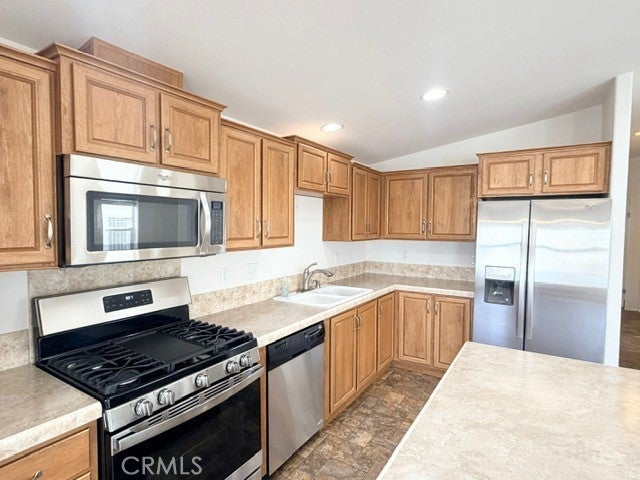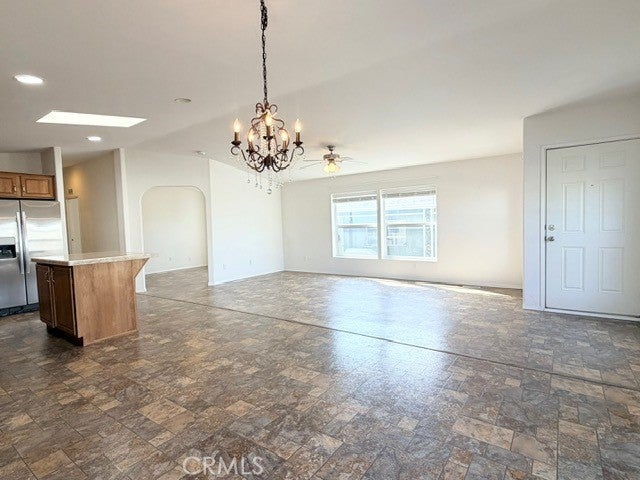 Open Floorplan!!! Welcome to Valencia Lea, Highland's premier 55+ senior community. 2014 Fleetwood Crown Pointe Extreme home, with approx. 1428 SF, 2 bedrooms, 2 bath, plus bonus room and attached 2 car garage. Talk about curb appeal, with low maintenance landscaping and brick steps up to the front porch on a large corner lot. This well-maintained home features vaulted ceilings, low-maintenance solid-surface floors, dual pane windows with blinds and ceiling fans. Enter the HUGE great room, perfect for modern living and comfortable enough to entertain. The open concept kitchen has ample storage, skylight, a pull up island with bar and includes the stainless-steel fridge, microwave and stove. Through an archway you’ll find a large office/bonus room. The spacious primary bedroom has a oversized walk-in closet and a generously sized ensuite bath with glass enclosed walk-in shower and linen closet. The guest room, bath and dedicated laundry room with included washer and dryer, round out this lovely home. Call or come in to schedule a showing, this house ready for you to call it home!