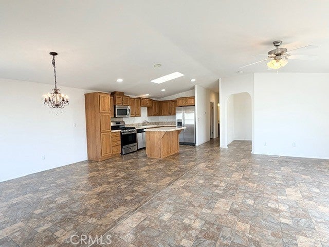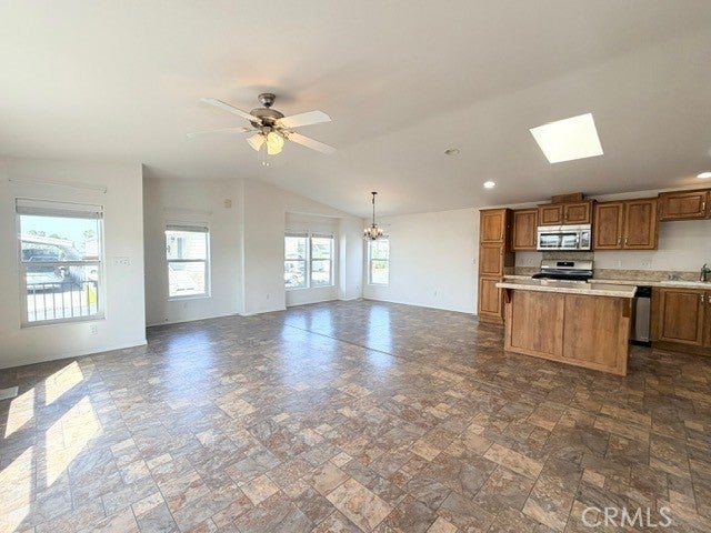 Ceiling Fan(s), Cathedral Ceiling(s), High Ceilings, Laminate Counters, Open Floorplan, Pantry, Recessed Lighting, Storage, Unfurnished, Utility Room, Walk-In Closet(s), Brick Walls