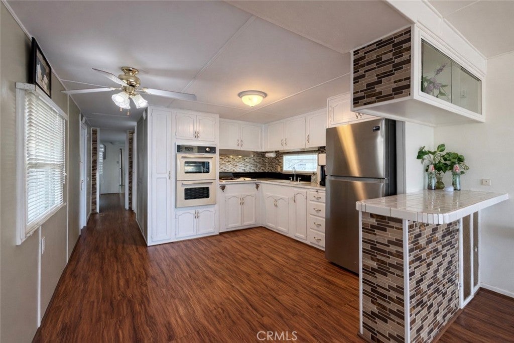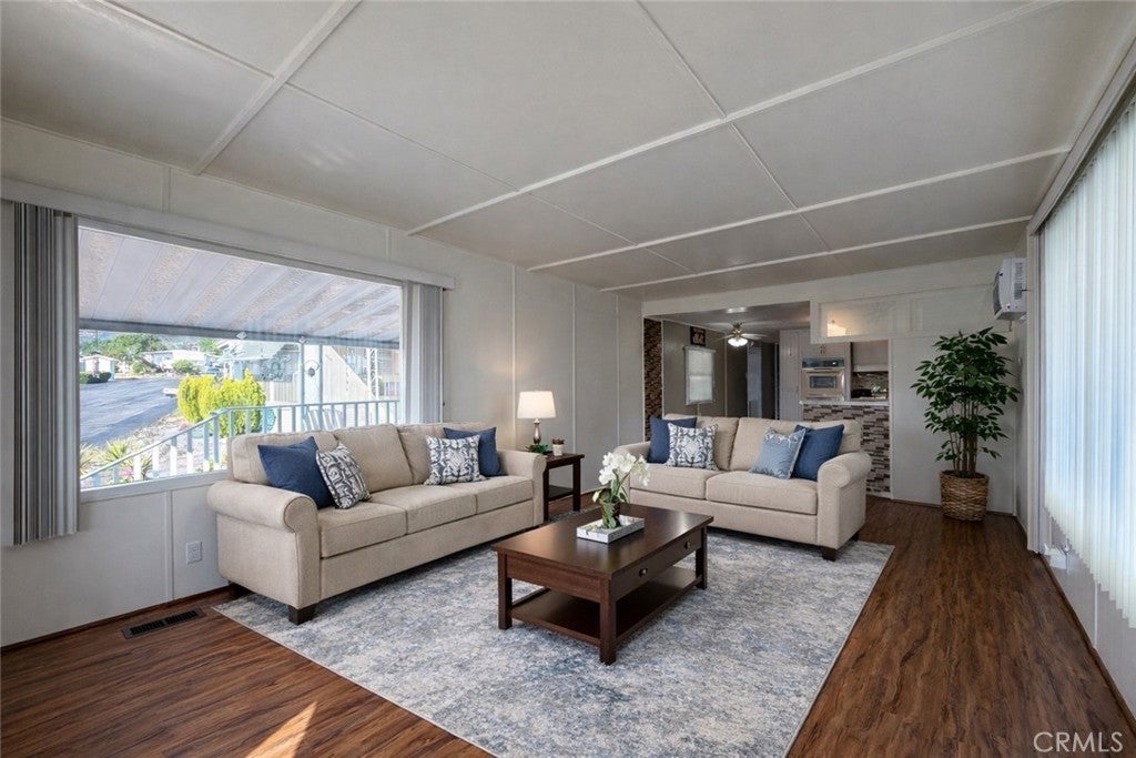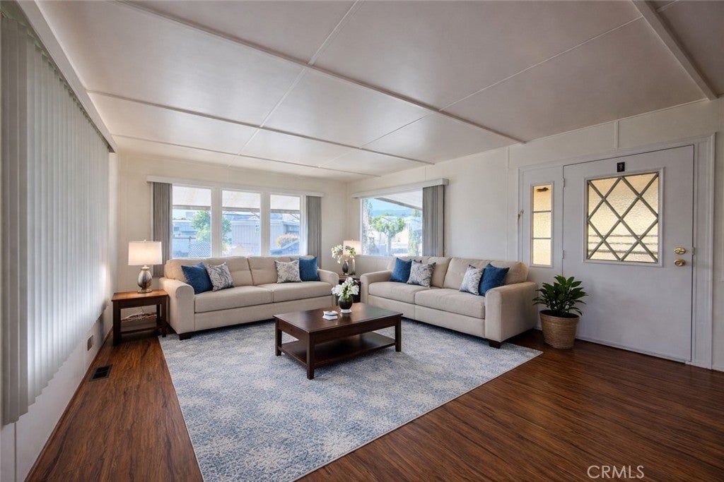 Welcome to Carriage Trade Manor, a desirable 55+ community in upper Yucaipa! This beautifully maintained mobile home offers approximately 800 sq. ft. of comfortable living space, featuring 1 bedroom and 1 bathroom with an open and inviting floor plan. Step inside to a spacious living room that seamlessly flows into the kitchen, creating a bright and functional layout perfect for everyday living. The home is equipped with central heat and two ductless A/C units to keep you comfortable year-round. Additional upgrades include dual-pane windows, laminate wood flooring, shutters in the bedroom, and an upgraded shower with sliding glass doors. There is a bonus room off the East side of the home featuring extra storage cabinetry and washer/dryer hookups, adding convenience and functionality. Outside also features a covered carport and two storage sheds, providing ample space for parking and storage. Pride of ownership truly shines throughout—this home is immaculate and move-in ready. Carriage Trade Manor offers a peaceful lifestyle with community amenities that include a swimming pool. Park approval requires a minimum 650 credit score and income equal to three times the space rent. Space rent is affordably priced at $410.26 per month. Don’t miss this opportunity to own a well-cared-for home in one of Yucaipa’s most sought-after 55+ communities!